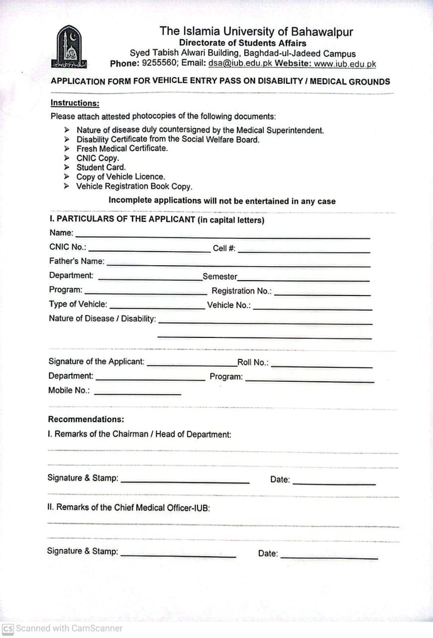 | Application Form For Vehicle Entry Pass on Disability/Medical Grounds | |