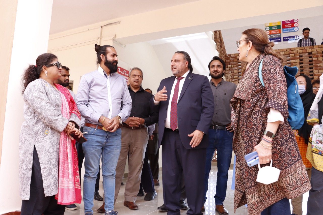 Participants of South Punjab Development Dialogue 2022 visited the Islamia University of Bahawalpur. They appreciated the increase in enrollments, hiring, infrastructure, development projects and scholarships and related educational facilities for students at the Islamia University of Bahawalpur. The Delegation visited IUB Solar Project and Hakra Art Gallery