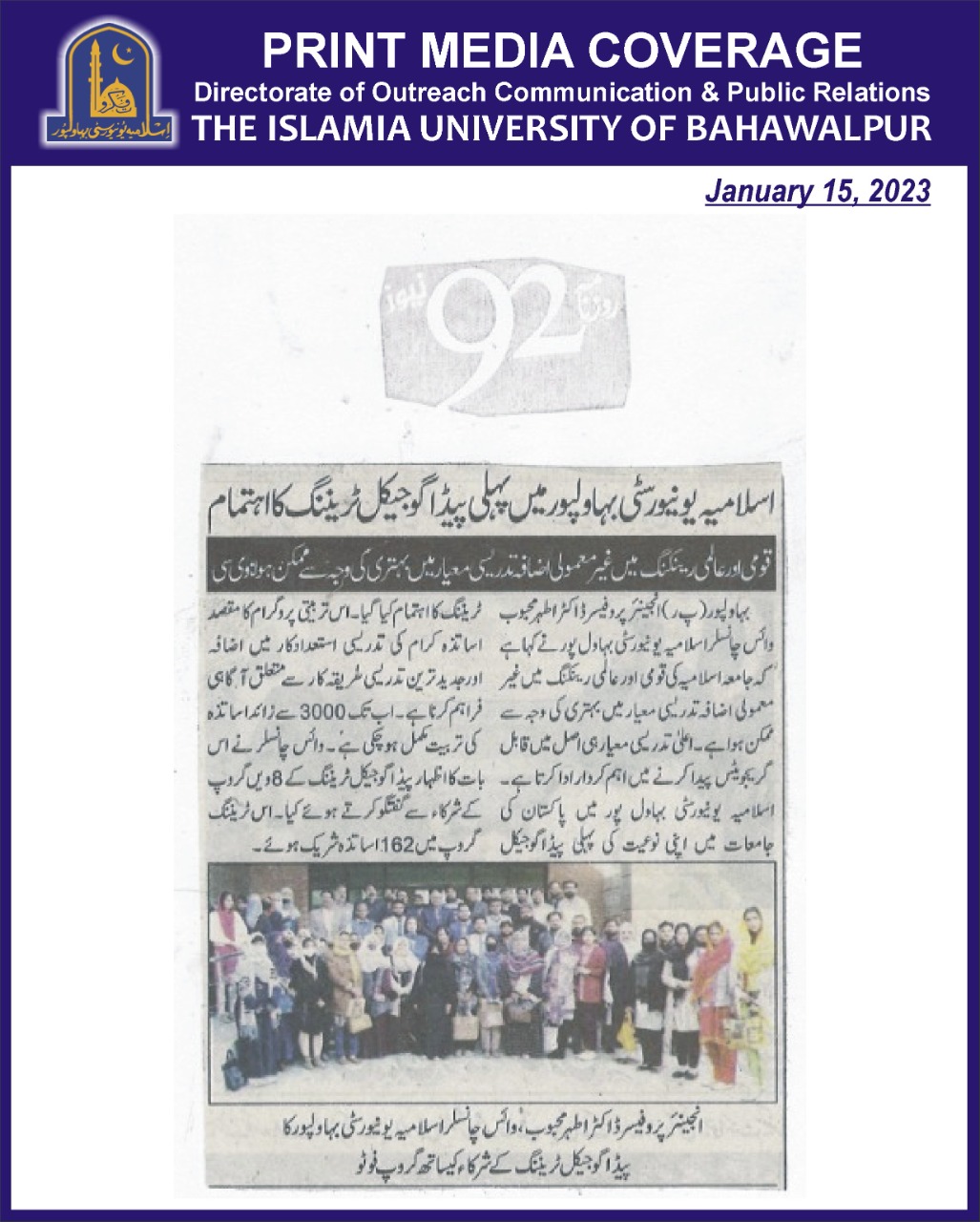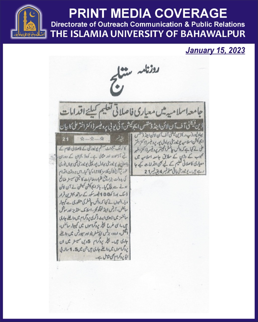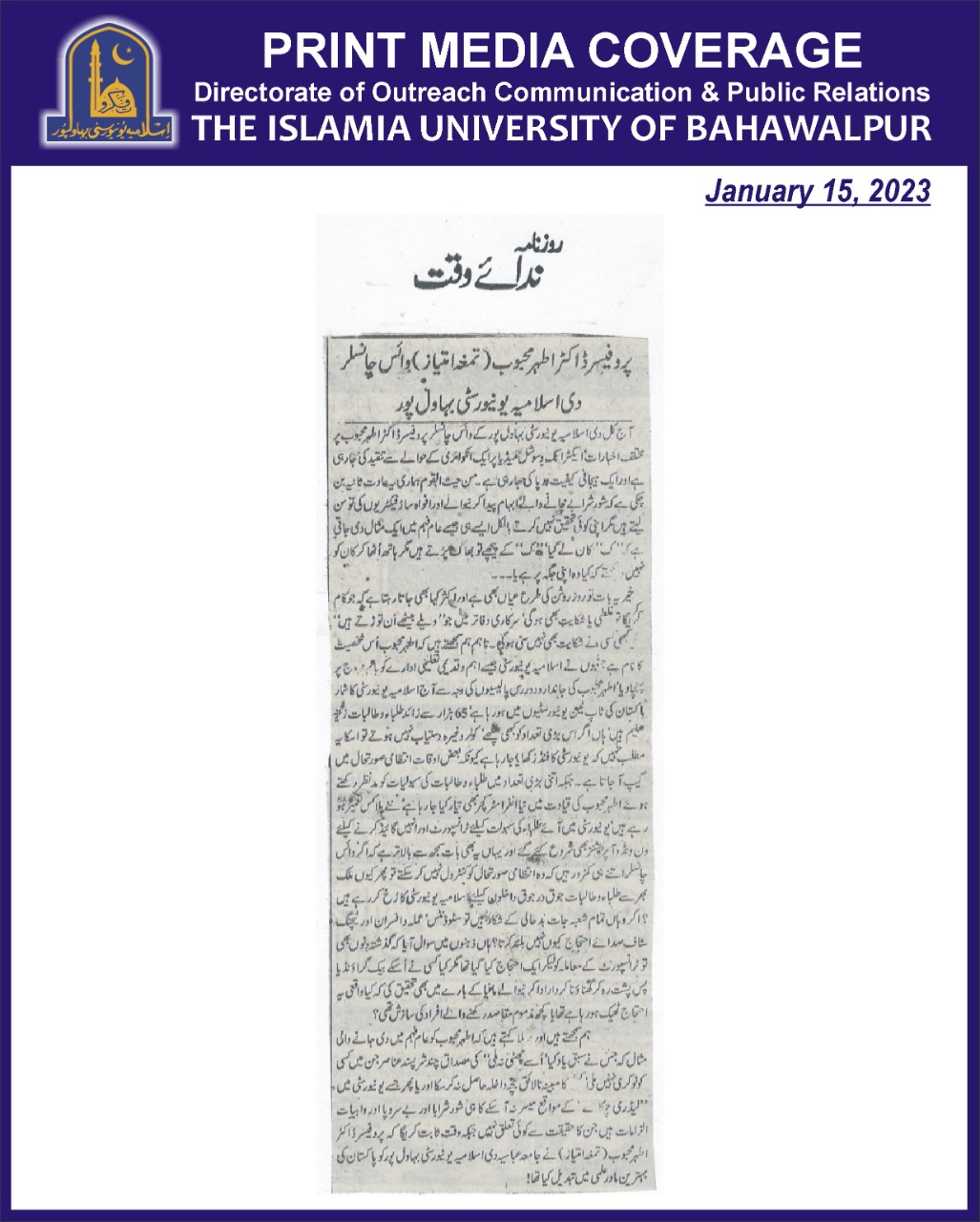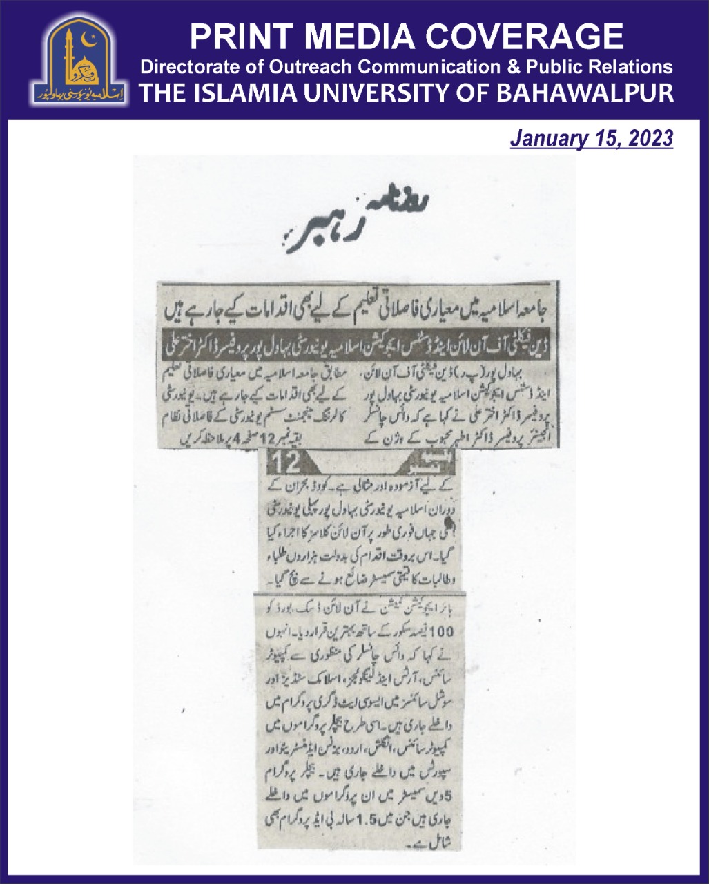 News Cutting 15 January 2023