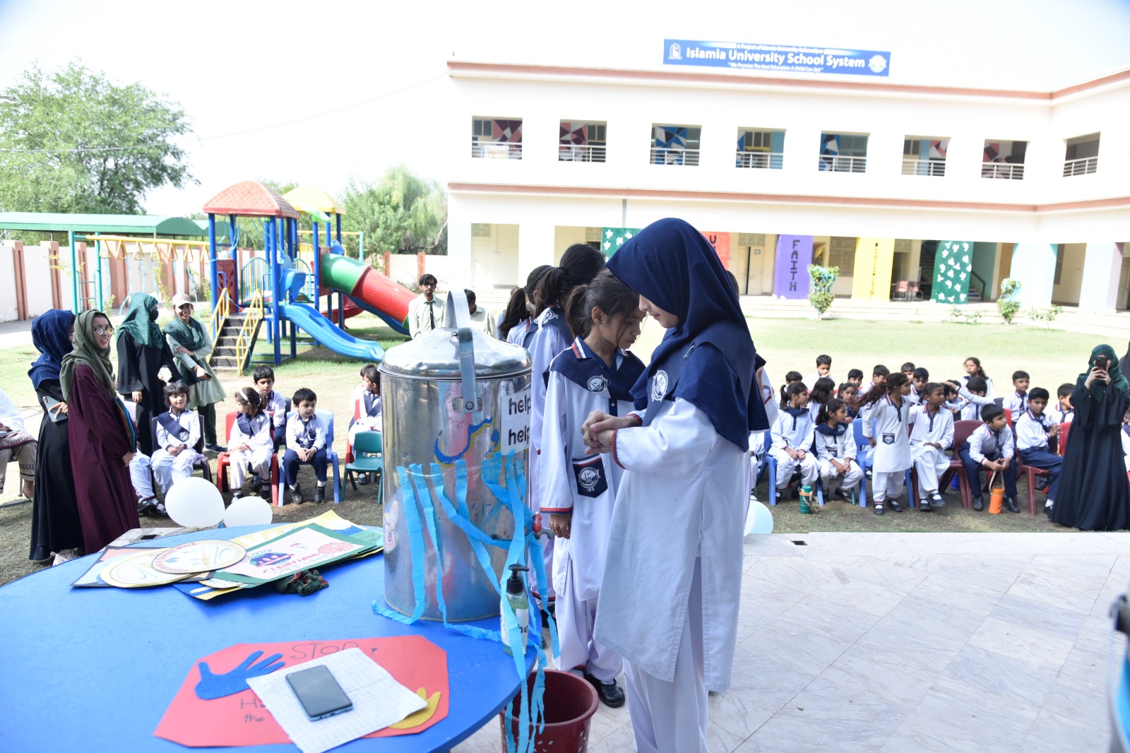 Directorate of Islamia University School System collaborated with Department of Social Work, IUB and Help in Need Organization to host a hand washing event at Islamia University School System on "Global Hand Wash Day 2023". Prof. Dr. Asif Naveed Ranjha emphasized the importance of hygiene in his opening speech.