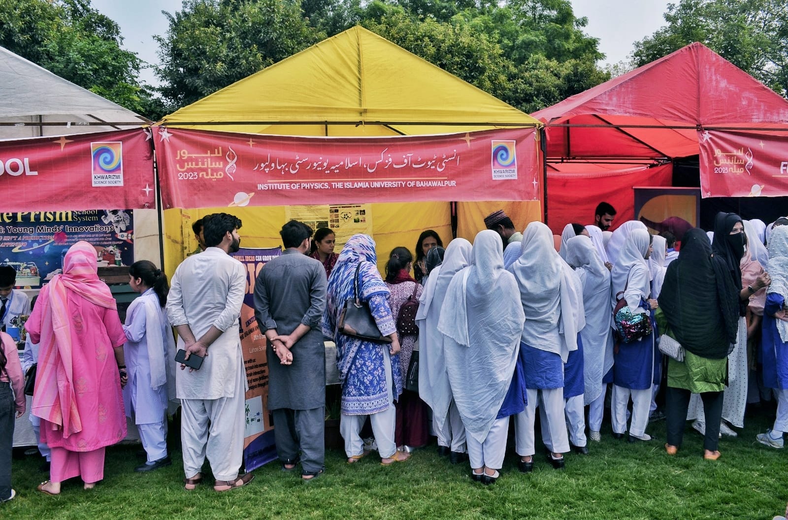 The Institute of Physics at The Islamia University of Bahawalpur participated in the Lahore Science Mela, a two-day event held on 28th and 29th of October 2023, organized by the Khwarizmi Science Society. Dr. Saba Saeed, Dr. Ayesha Ikhlaq, and Mr. Muhammad Usman Mustafa represented the institute and presented two notable projects