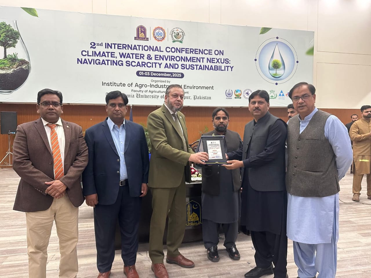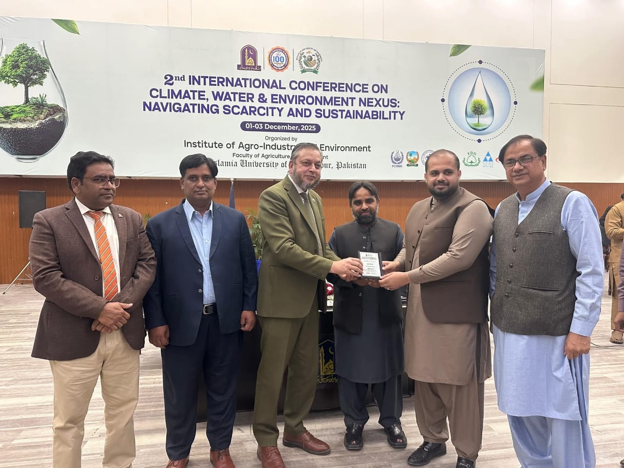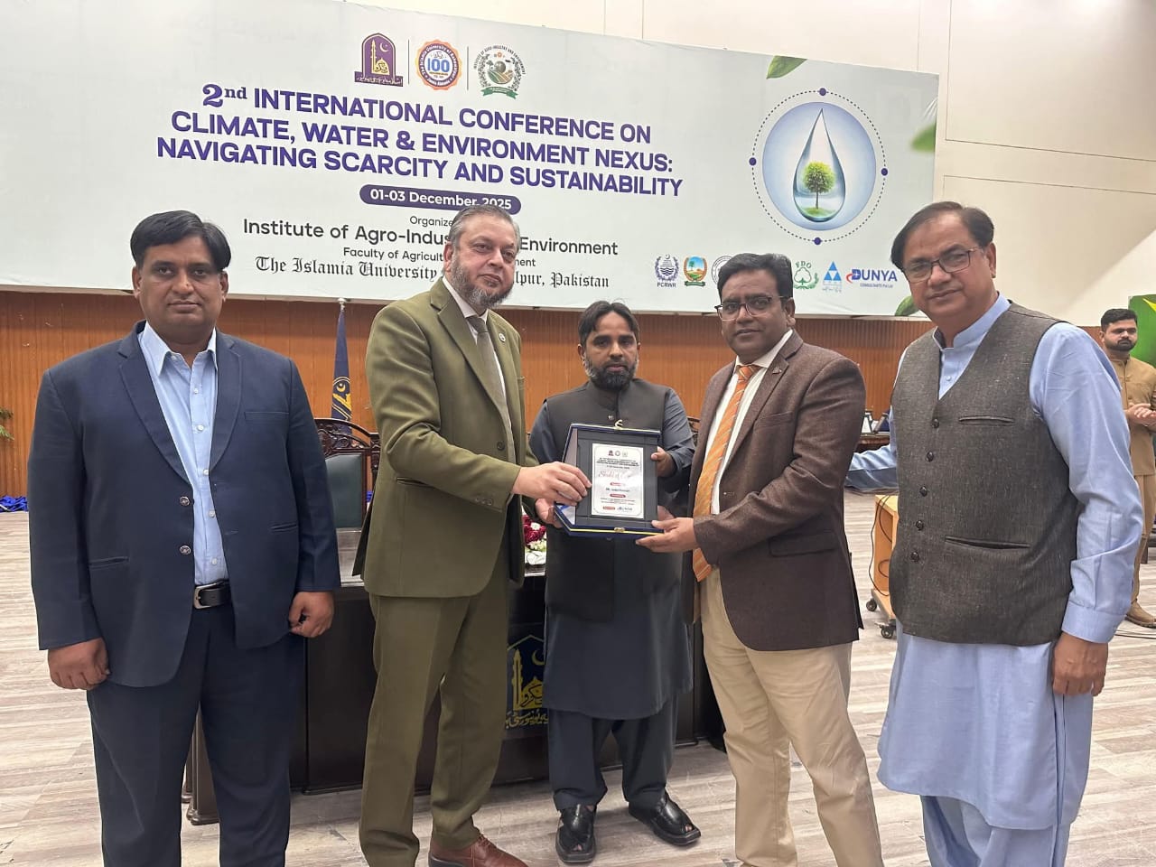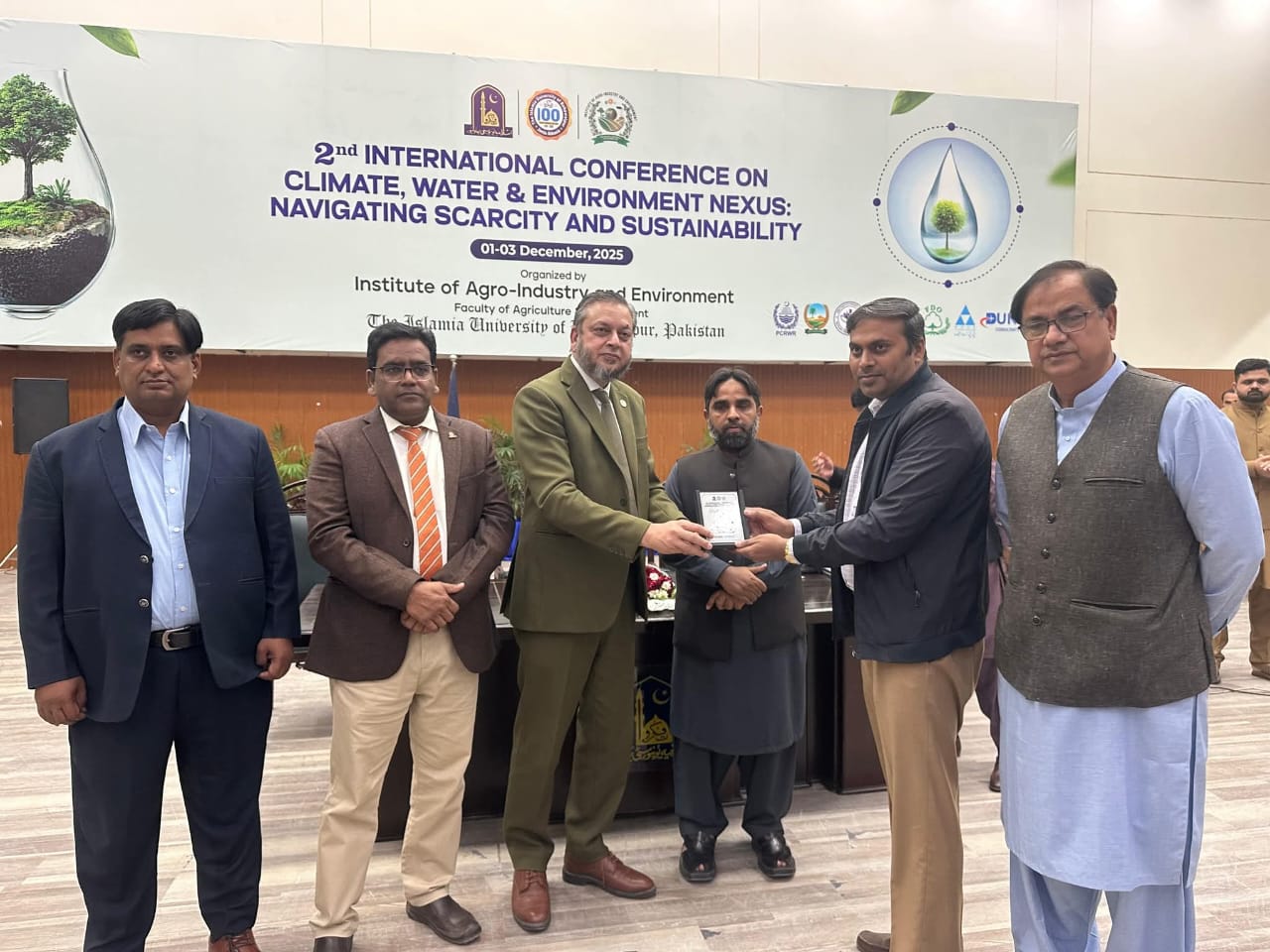 02 December 2025: The second international conference on the topic of Climate, Water and Environment NEXUS, Navigating Scarcity and Sustainability organized by the Institute of Agro-Industry, Faculty of Agriculture and Environment, the Islamia University of Bahawalpur has concluded.