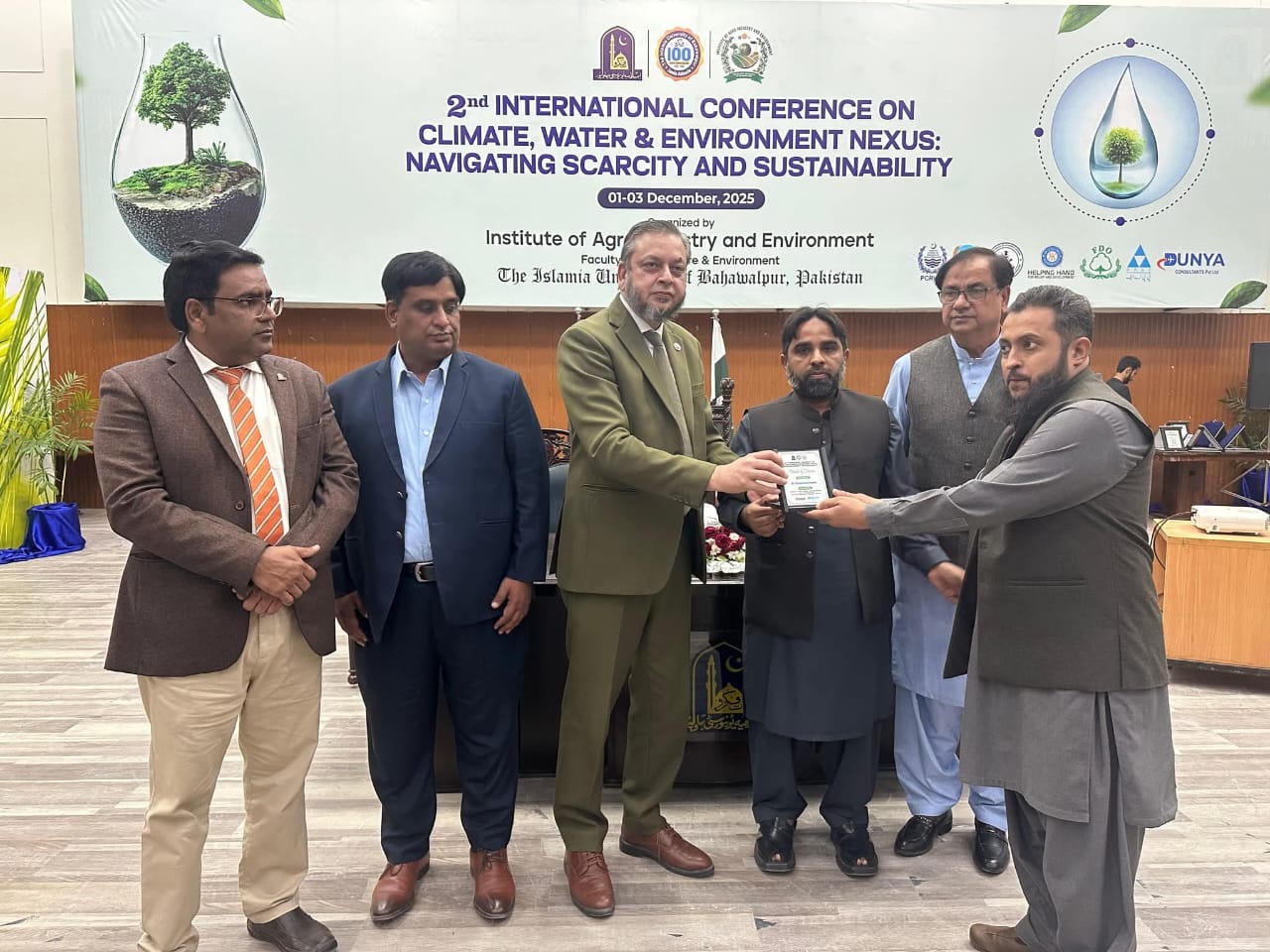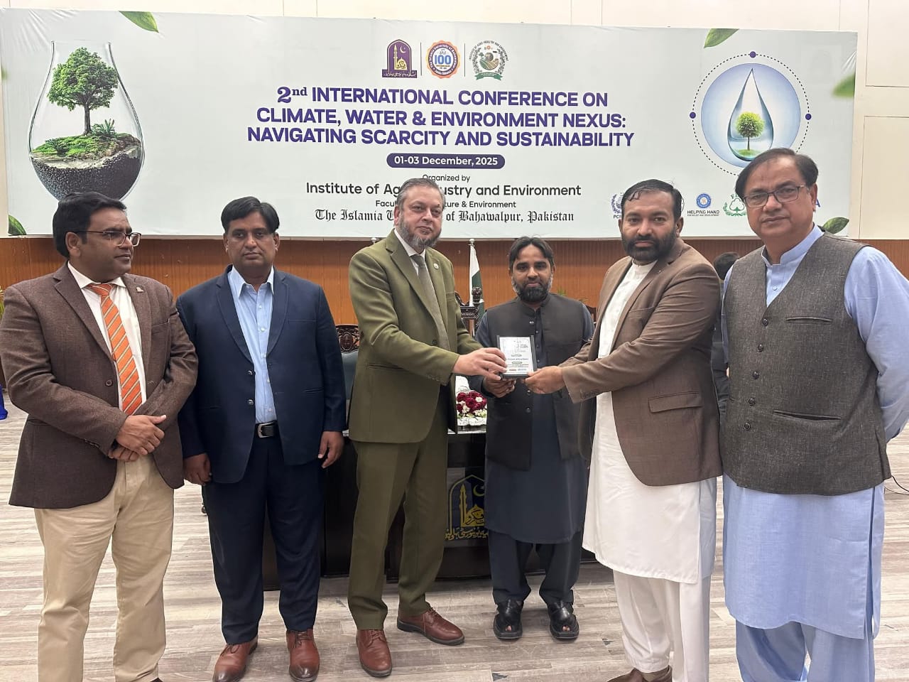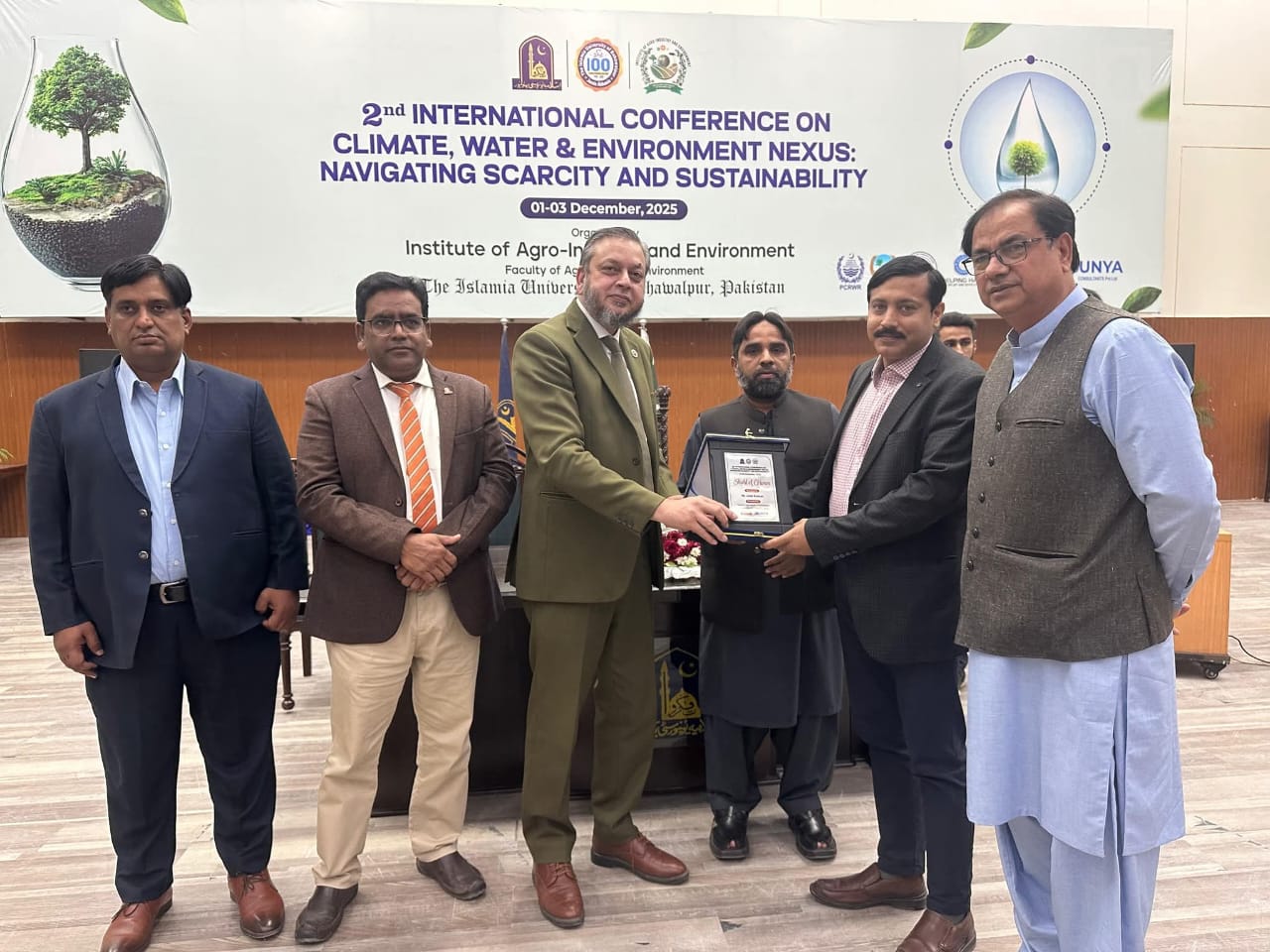 02 December 2025: The second international conference on the topic of Climate, Water and Environment NEXUS, Navigating Scarcity and Sustainability organized by the Institute of Agro-Industry, Faculty of Agriculture and Environment, the Islamia University of Bahawalpur has concluded.