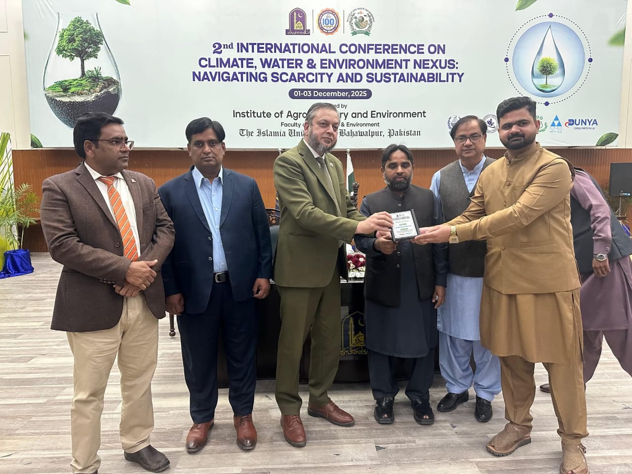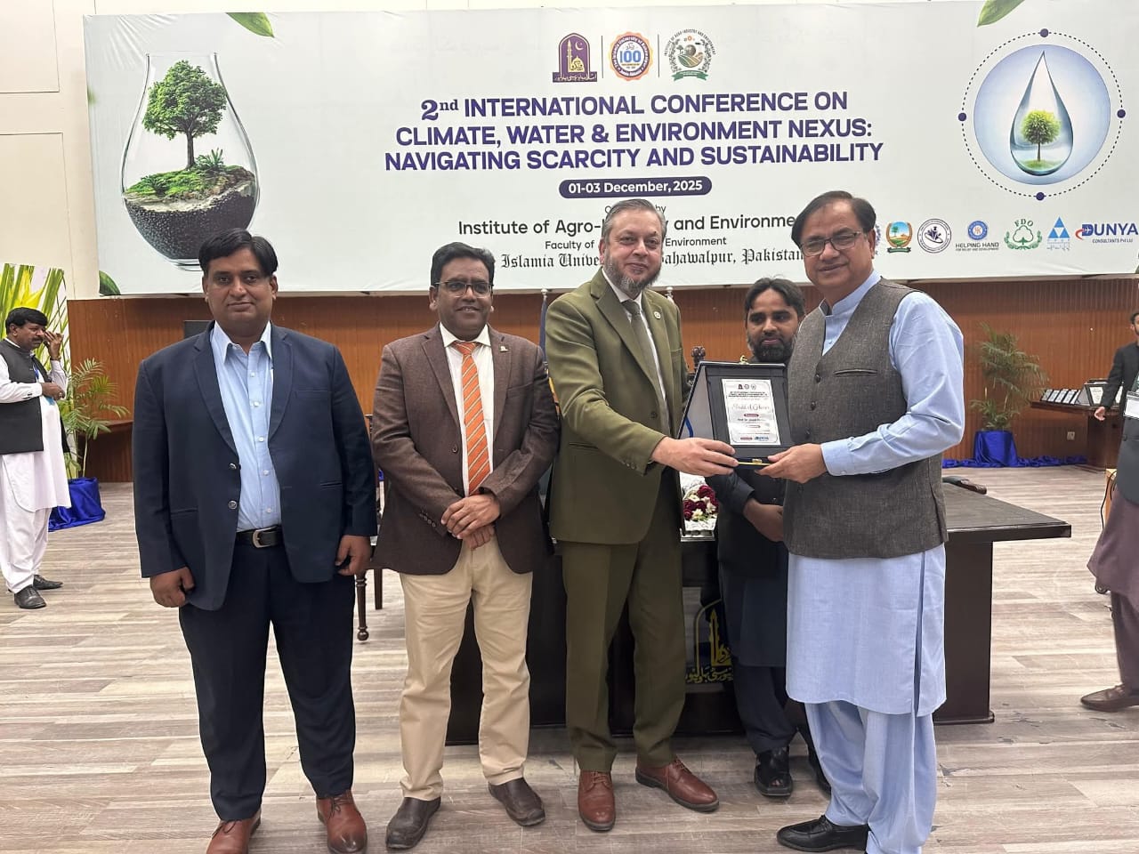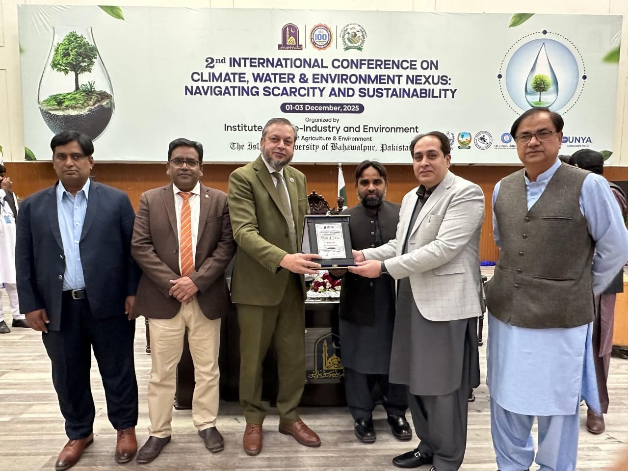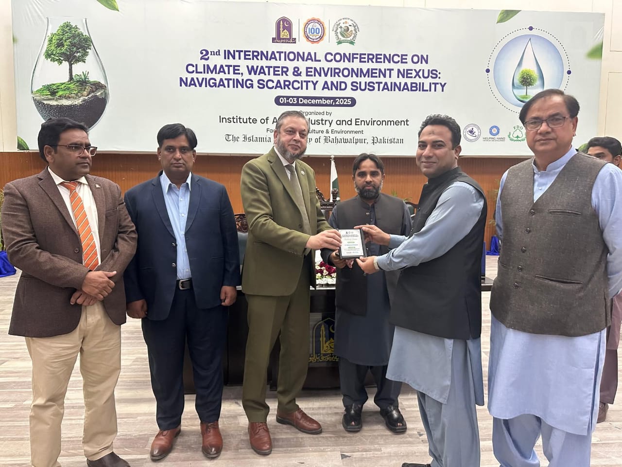 02 December 2025: The second international conference on the topic of Climate, Water and Environment NEXUS, Navigating Scarcity and Sustainability organized by the Institute of Agro-Industry, Faculty of Agriculture and Environment, the Islamia University of Bahawalpur has concluded.