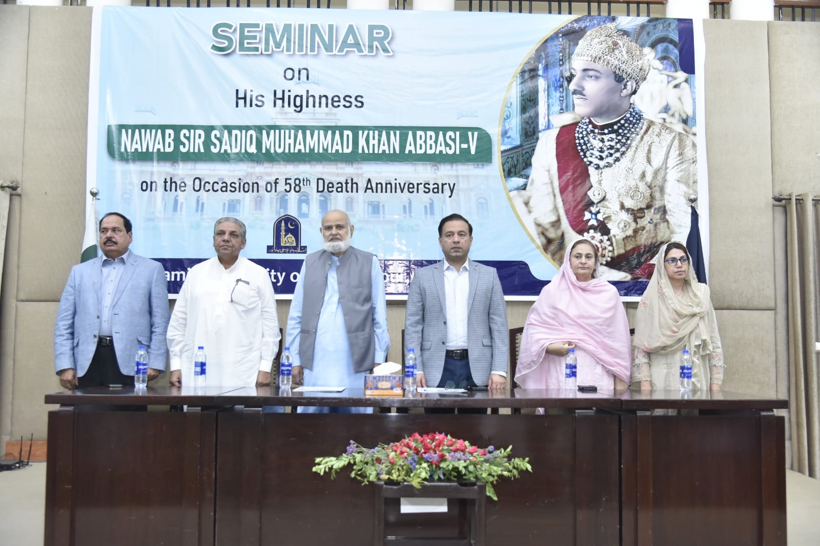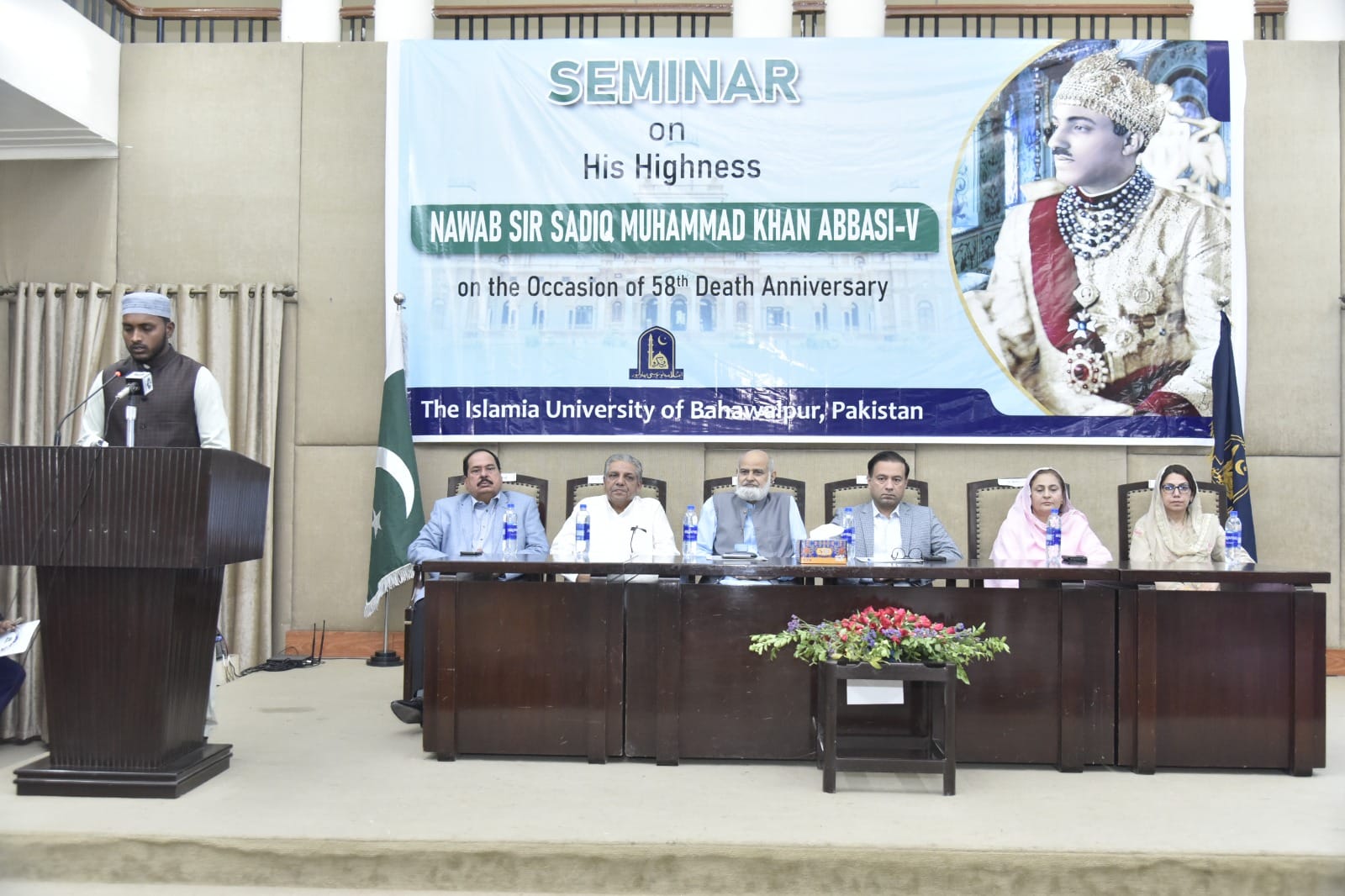 To pay tribute to the services of Mohsin Pakistan Nawab Sir Sadiq Muhammad Khan Abbasi V, the last ruler of Bahawalpur State, a ceremony was held at Ghulam Muhammad Ghotvi Hall, Abbasia Campus, the Islamia University, Bahawalpur, on the occasion of his 58th death anniversary.