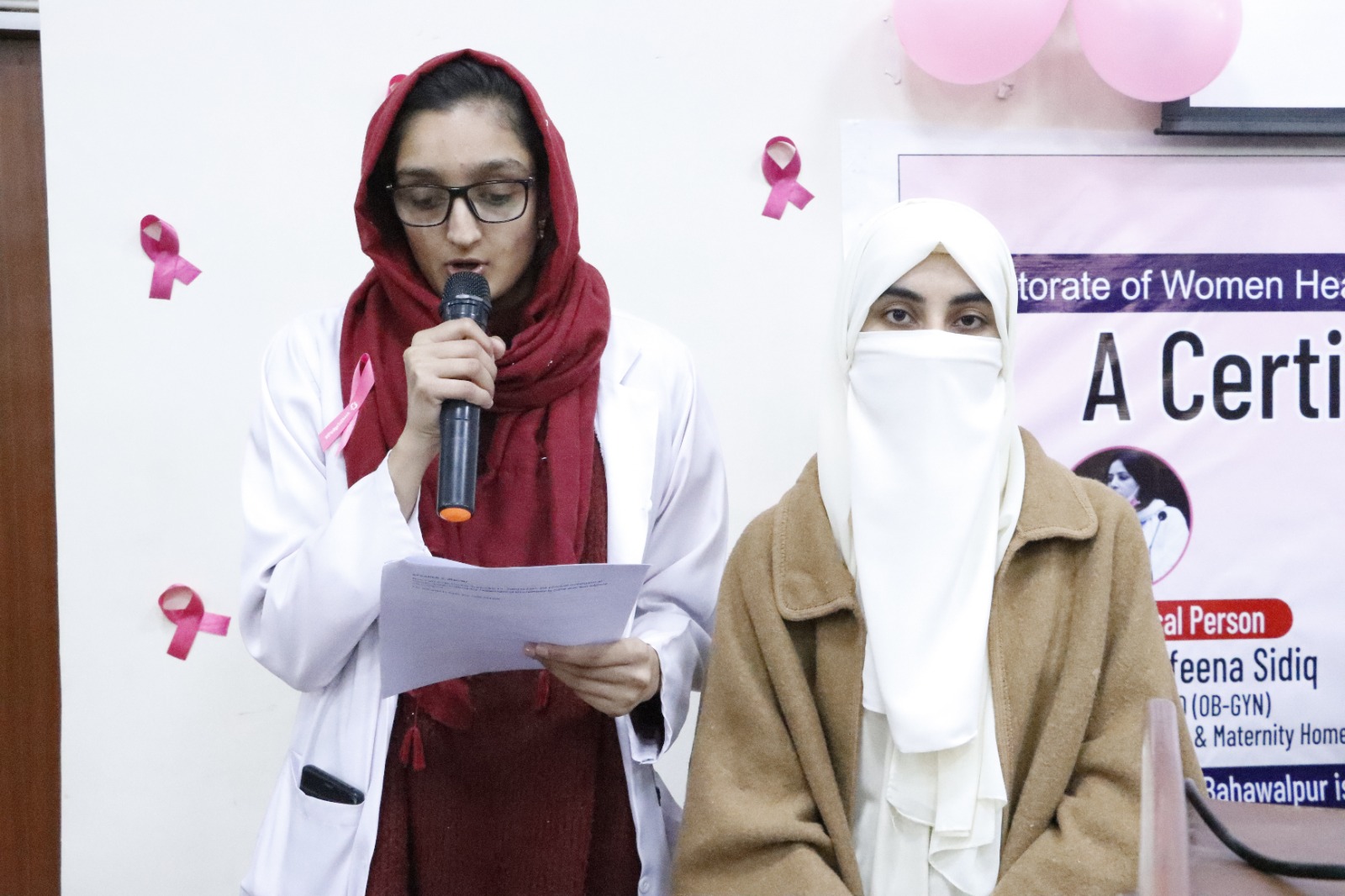 A certification on Self Breast Examination held at the Islamia University of Bahawalpur.