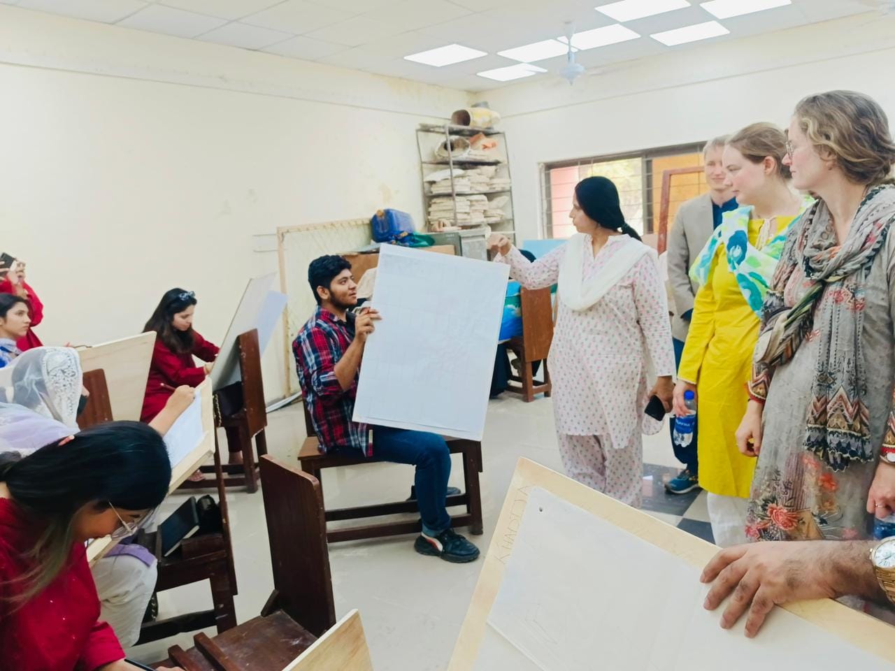 A Foreign delegation from Germany visited the University College of Art and Design, The Islamia University of Bahawalpur. Dr. Farhana Altaf Qurashi Principal, Faculty and Students welcomed the distinguished guests. The delegation highly appreciated the creative Art work of Faculty and Students of UCAD.