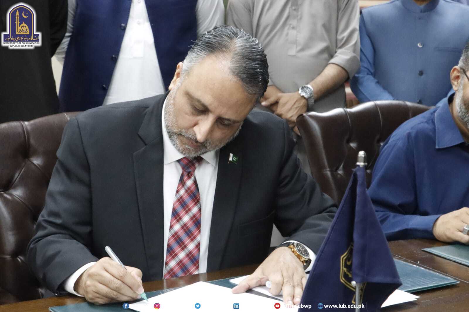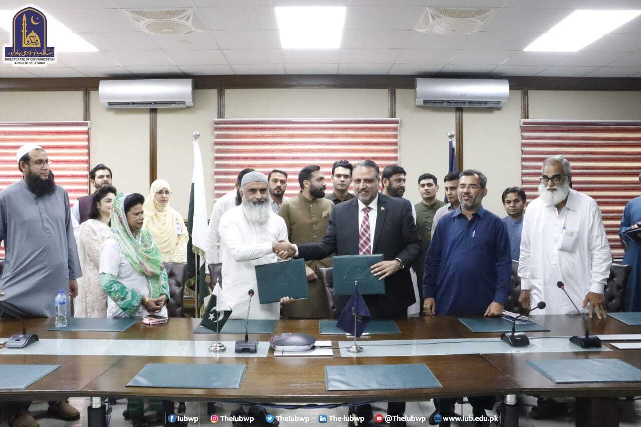 A MoU was signed between the IUB and District Headquarters Hospital Lodhran for practical training, teaching and research, and mutual cooperation to facilitate students of University College of Nursing. The agreement was signed by Engr. Prof. Dr. Athar Mahboob, WVC and Dr. Muhammad Aurangzaib MS District Headquarters Hospital Lodhran.