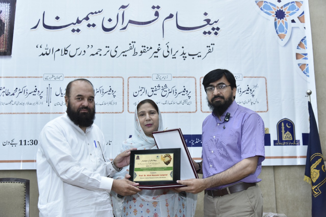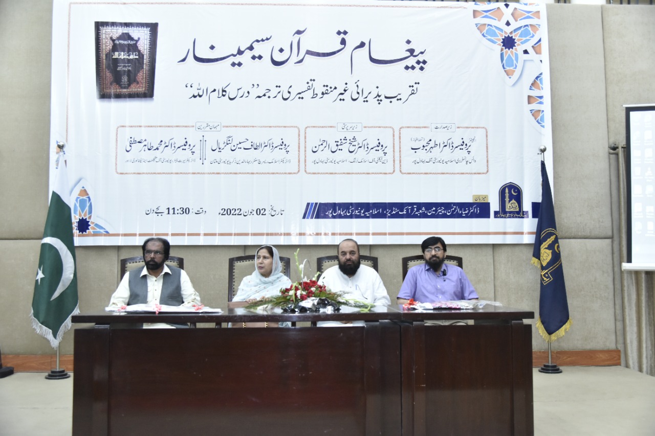 A seminar on Paigham-e-Quraan and Ceremony of Acceptance the without dots Translation of Qur'an held today at Ghulam Muhammad Ghotvi Hall, Abbasia Campus, the Islamia University of Bahawalpur