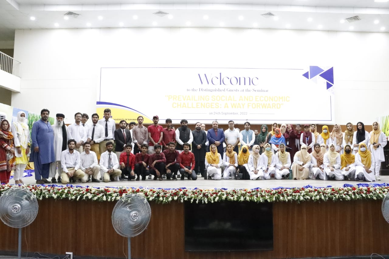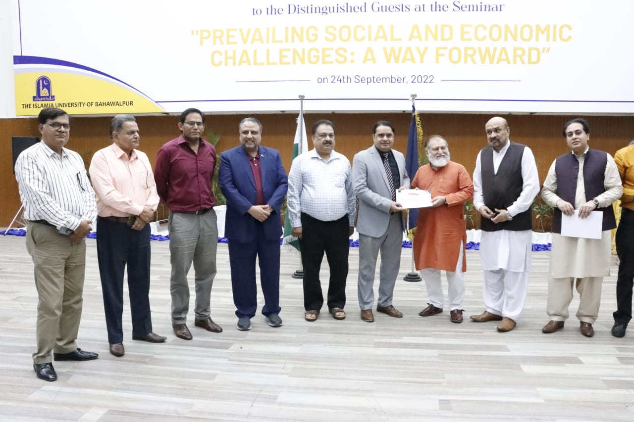 A seminar on "Prevailing Social & Economic Challenges: A way forward" held at the Islamia University of Bahawalpur.Worthy Vice Chancellor, Engr. Prof. Dr. Athar Mahboob presided the event while senior columnists, anchor persons and journalists from Lahore and Multan were were guest speakers.