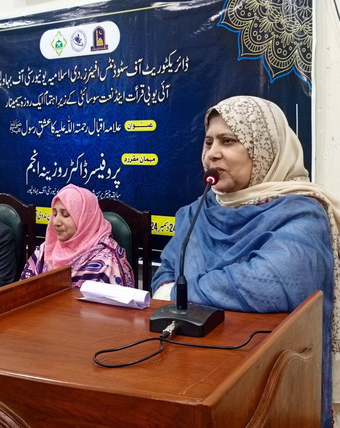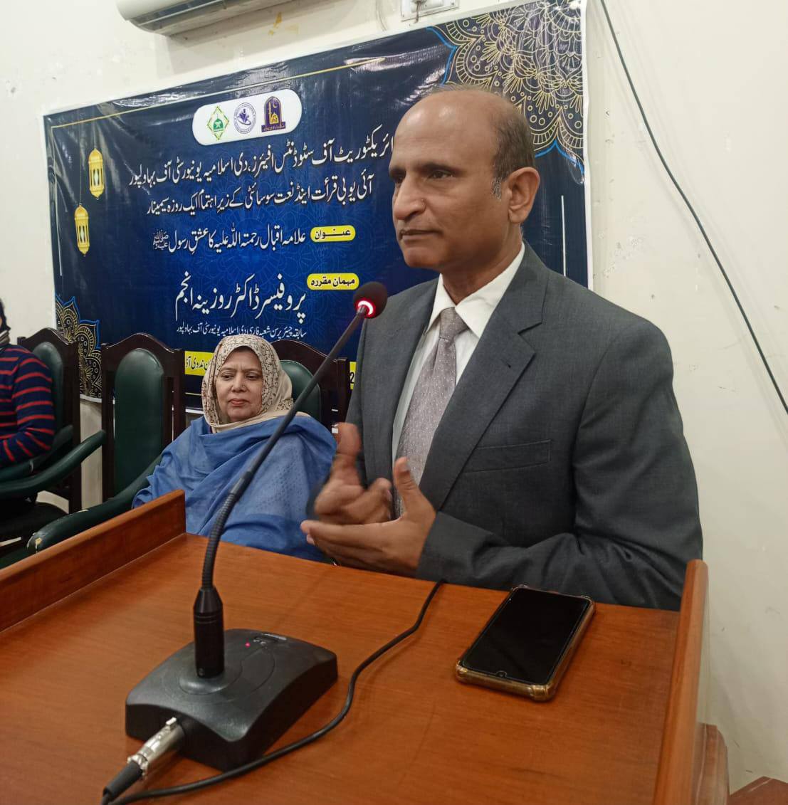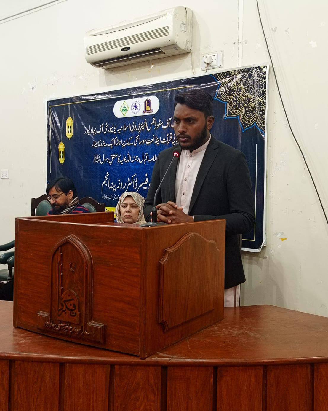 A seminar titled "علامہ اقبال رحمۃ اللہ علیہ کا عشق رسولﷺ" was organized by the IUB Qiraat and Naat Society Directorate of Student Affairs in the auditorium of the Faculty of Islamic Learning, Islamia University of Bahawalpur.