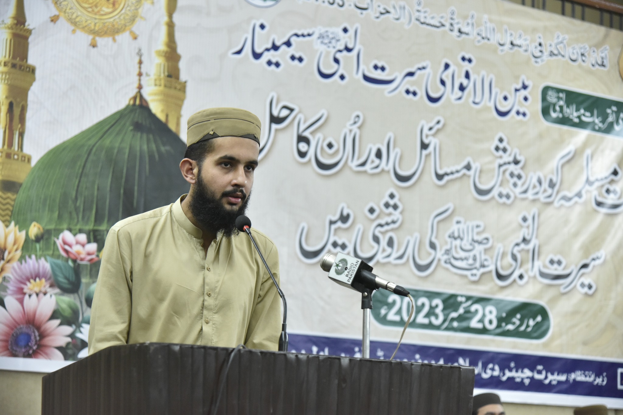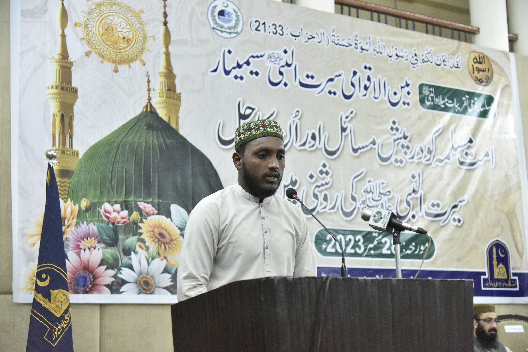 A seminar was held under the title of "امت مسلمہ کو درپیش مسائل اور ان کا حل سیرت النبی ﷺ کی روشنی میں" was held at Ghulam Muhammad Gothvi Hall