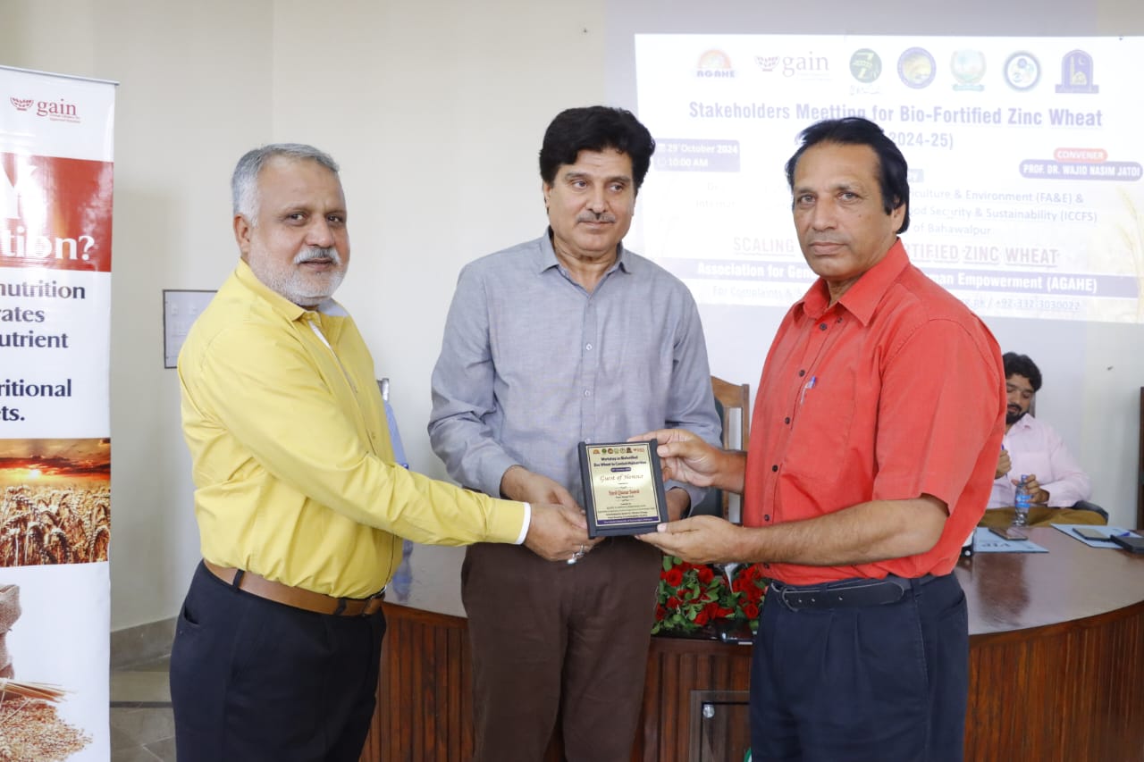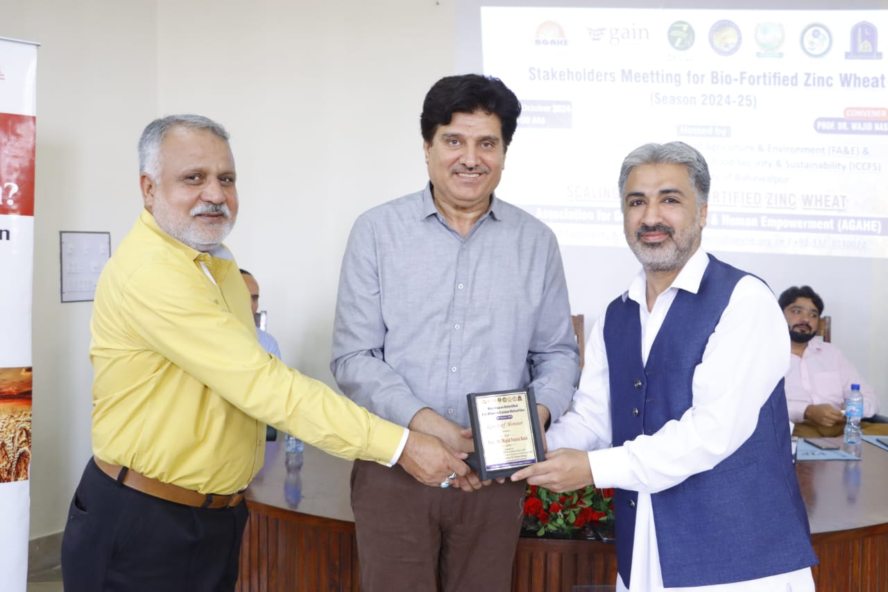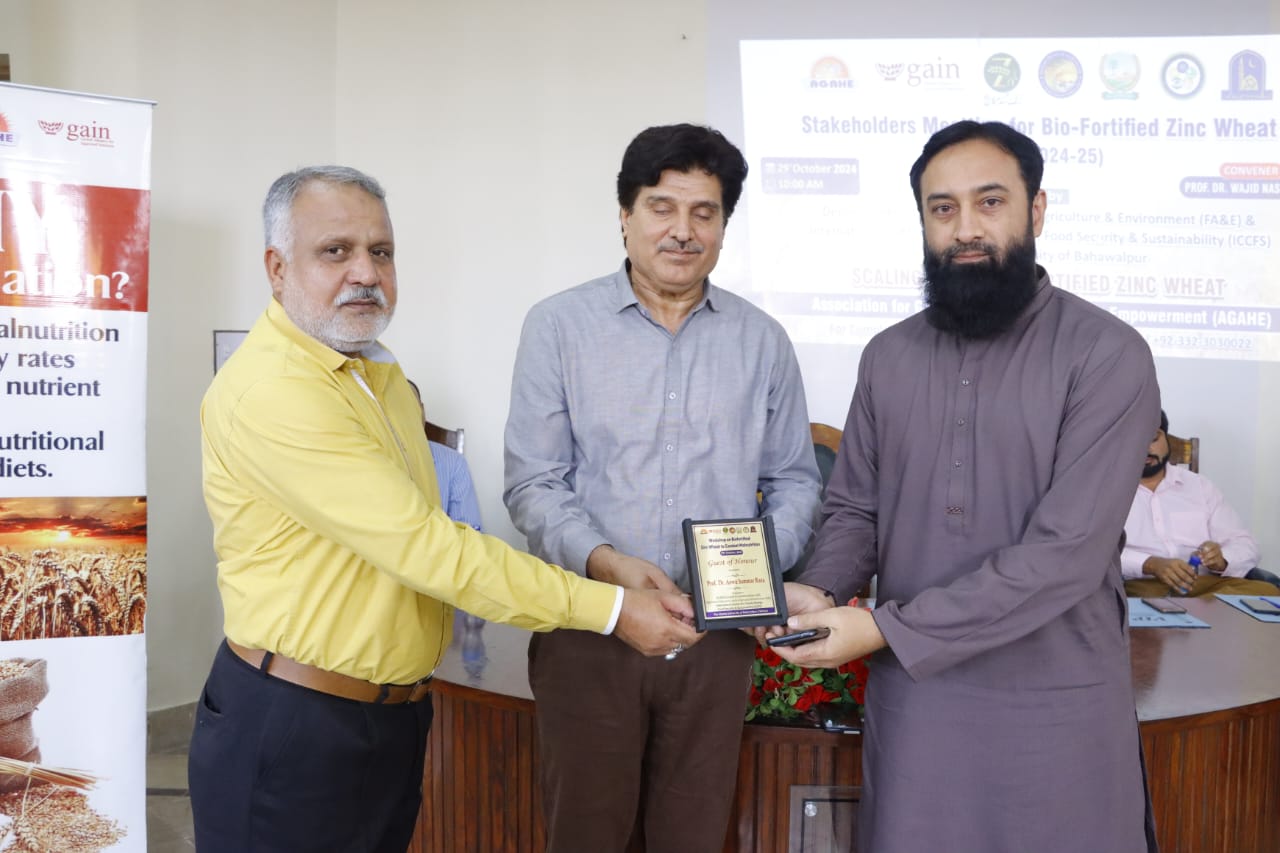 A Stakeholder Meeting and "Workshop on Biofortified Zinc Wheat to Combat Malnutrition" was held at Faculty of Agriculture and Environment (FA&E), The Islamia University of Bahawalpur (IUB), organized by AGAHE in collaboration with the Department of Agronomy, Faculty of Agriculture and Environment.