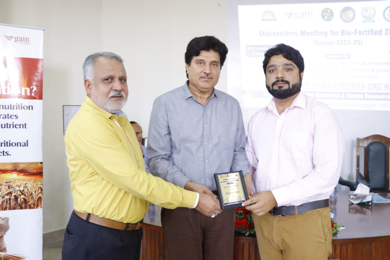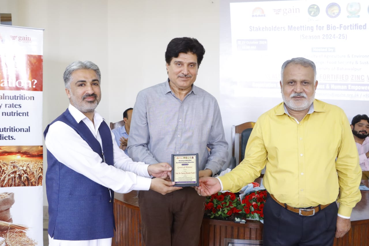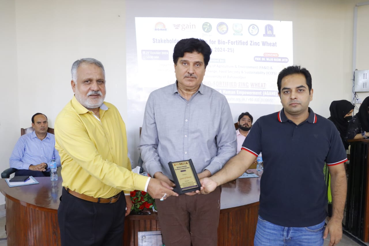 A Stakeholder Meeting and "Workshop on Biofortified Zinc Wheat to Combat Malnutrition" was held at Faculty of Agriculture and Environment (FA&E), The Islamia University of Bahawalpur (IUB), organized by AGAHE in collaboration with the Department of Agronomy, Faculty of Agriculture and Environment.