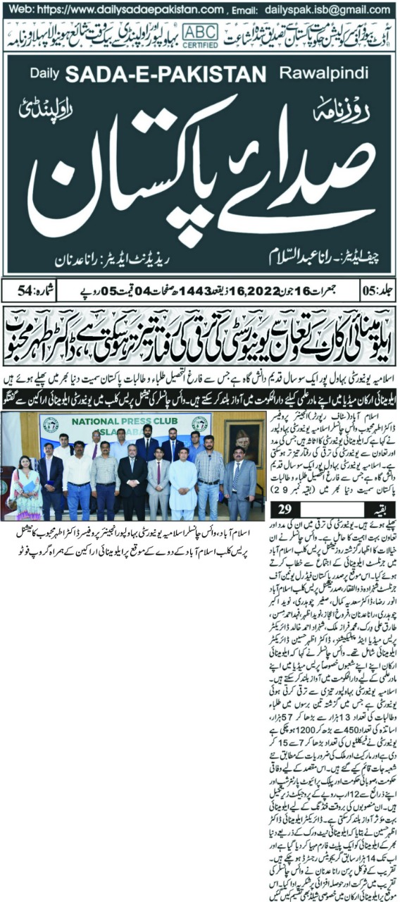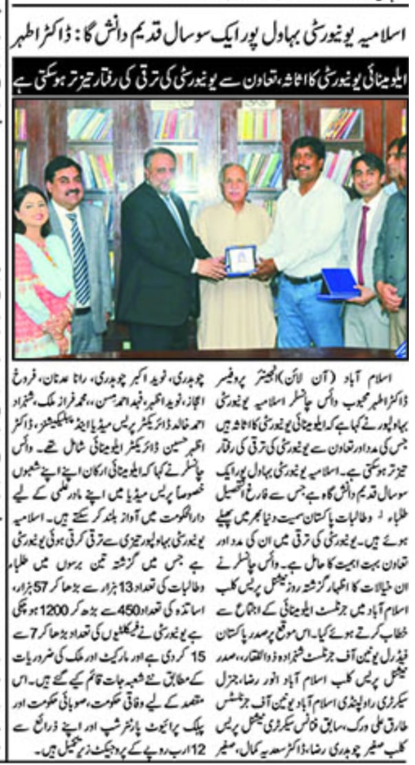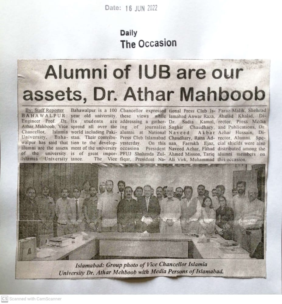 Engineer Dr. Athar Mehboob, Vice Chancellor, IUB said that alumni of IUB are our assets. He added that with the help of alumni, the pace of development of the university could be accelerated.
