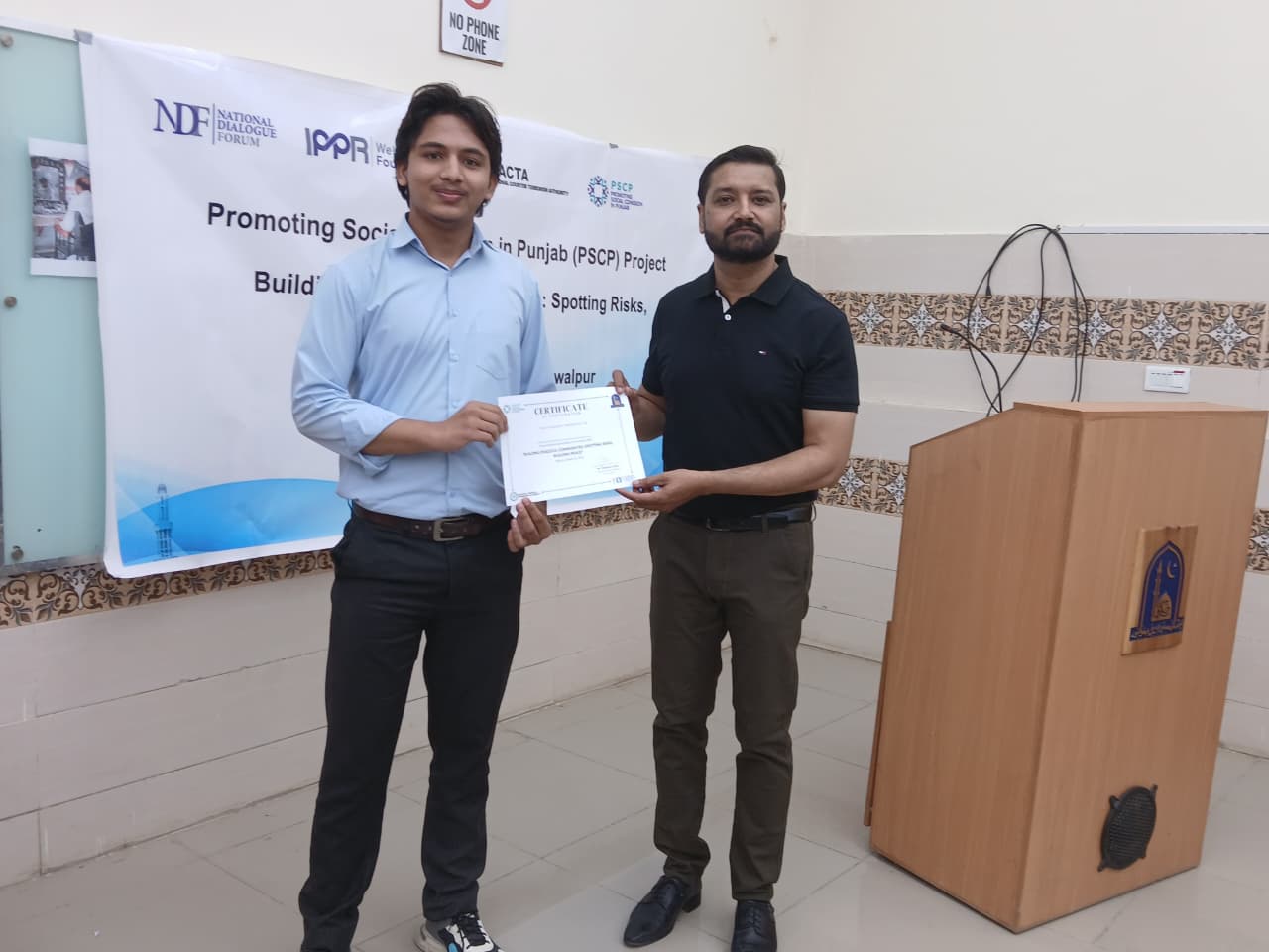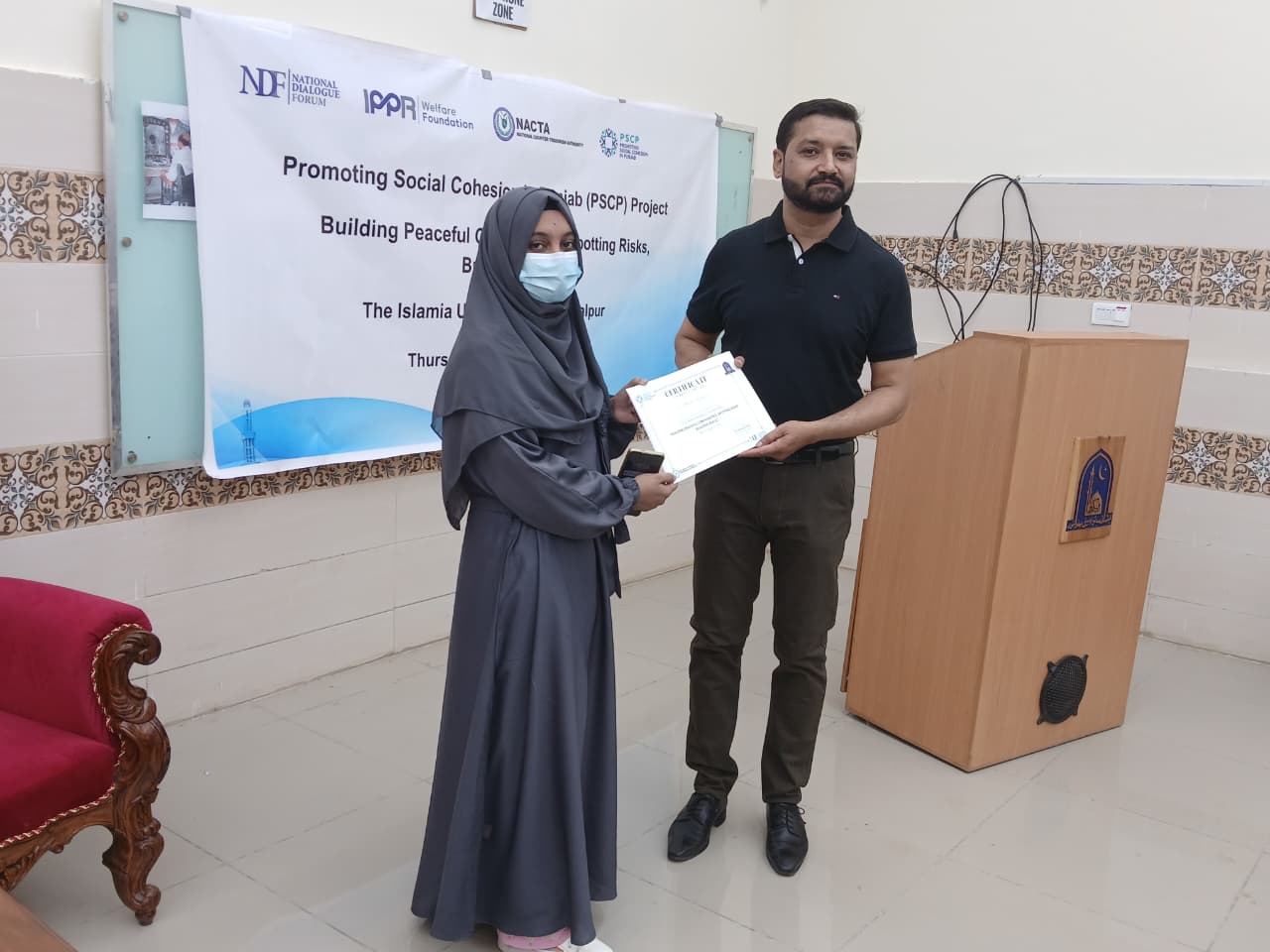 An Interactive session with university students on early warning signs of radicalization and extremism by NDF in coordination with NACTA held at Baghdad-ul-Jadeed Campus, the Islamia University of Bahawalpur.