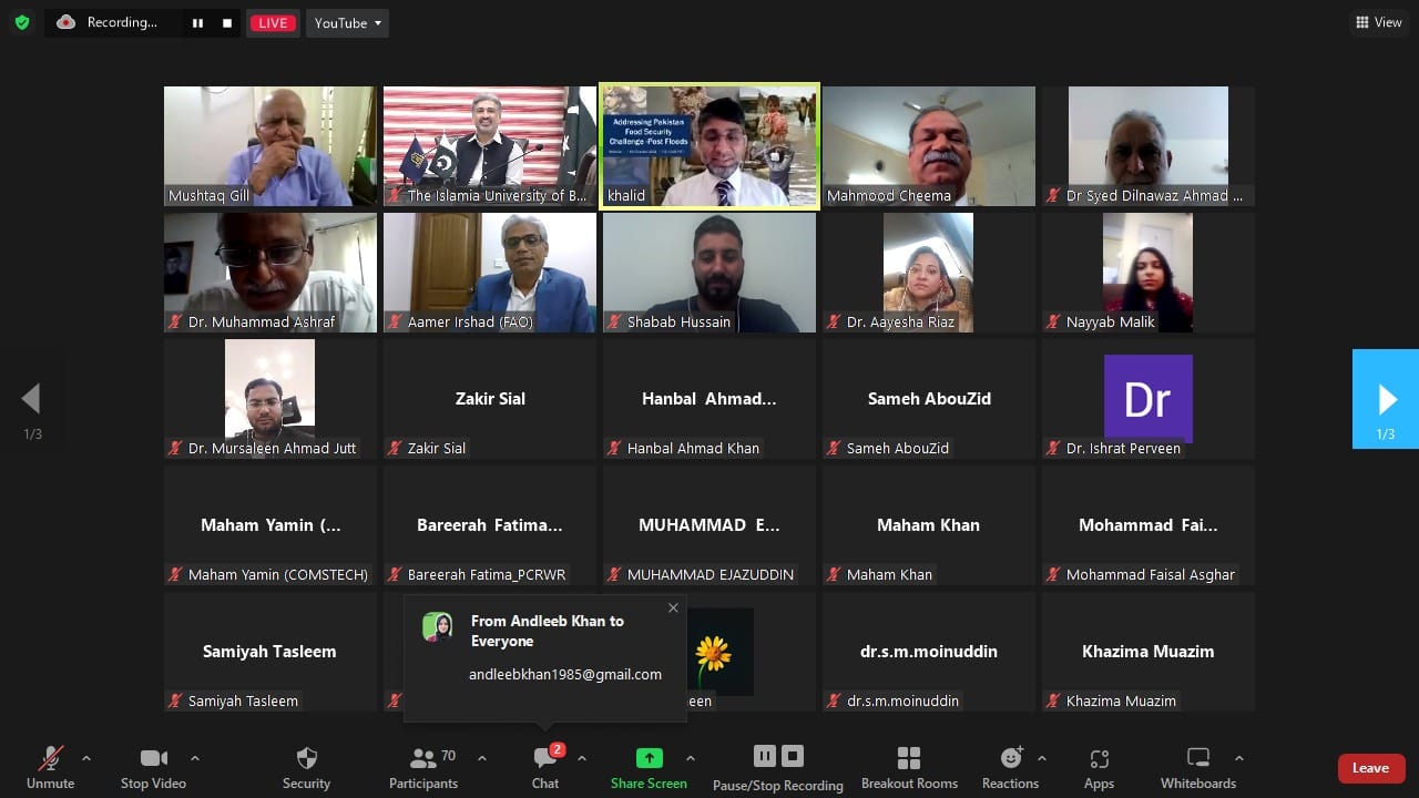 An International Webinar on "World Food Day 2022" organized by IUB and many National and International Organization.