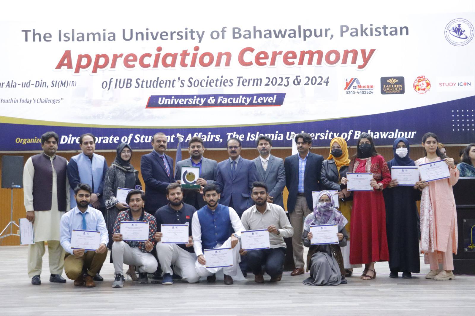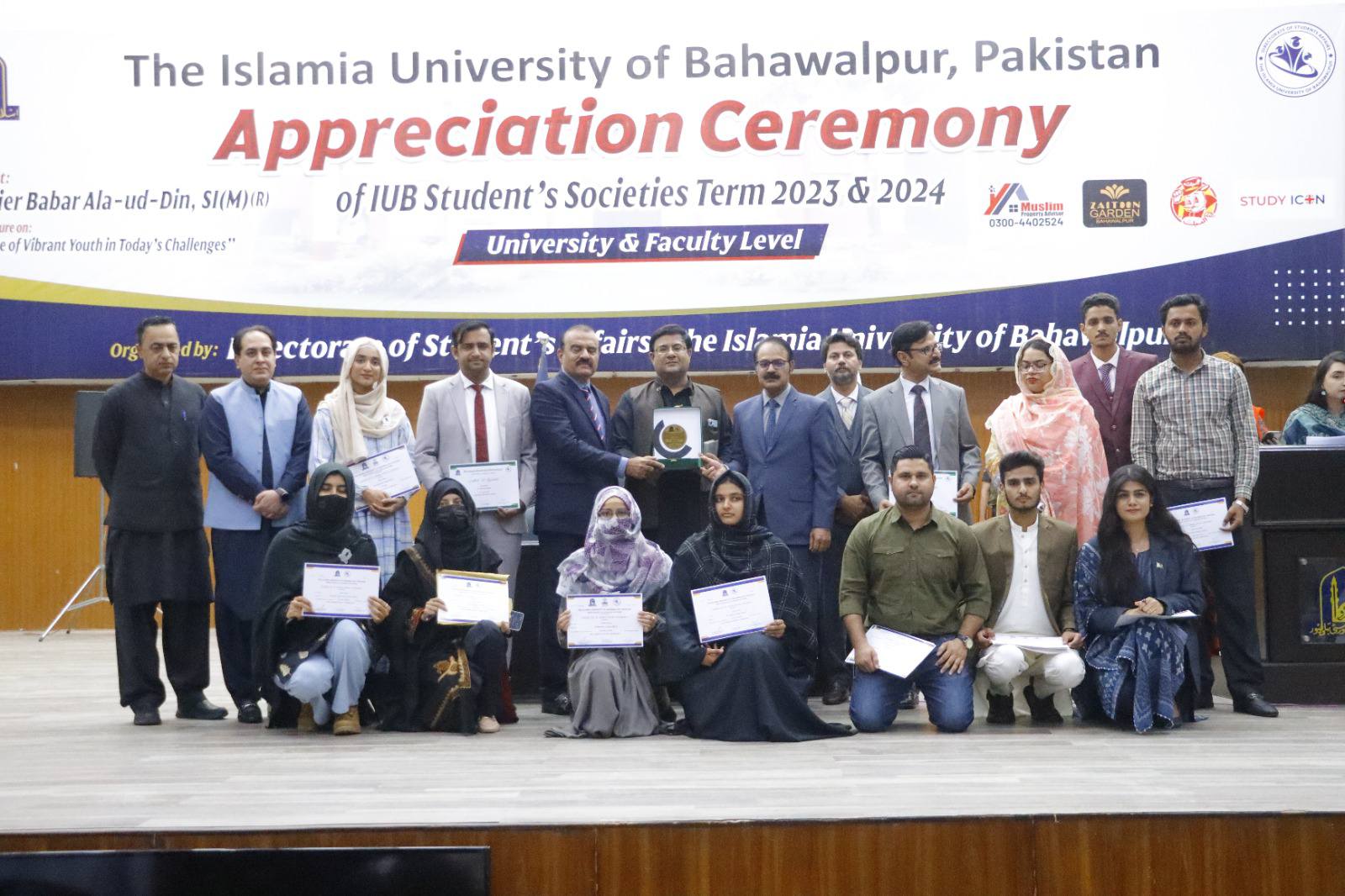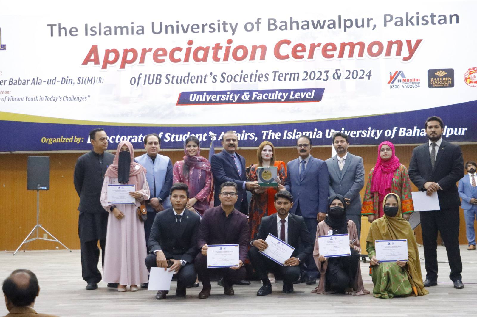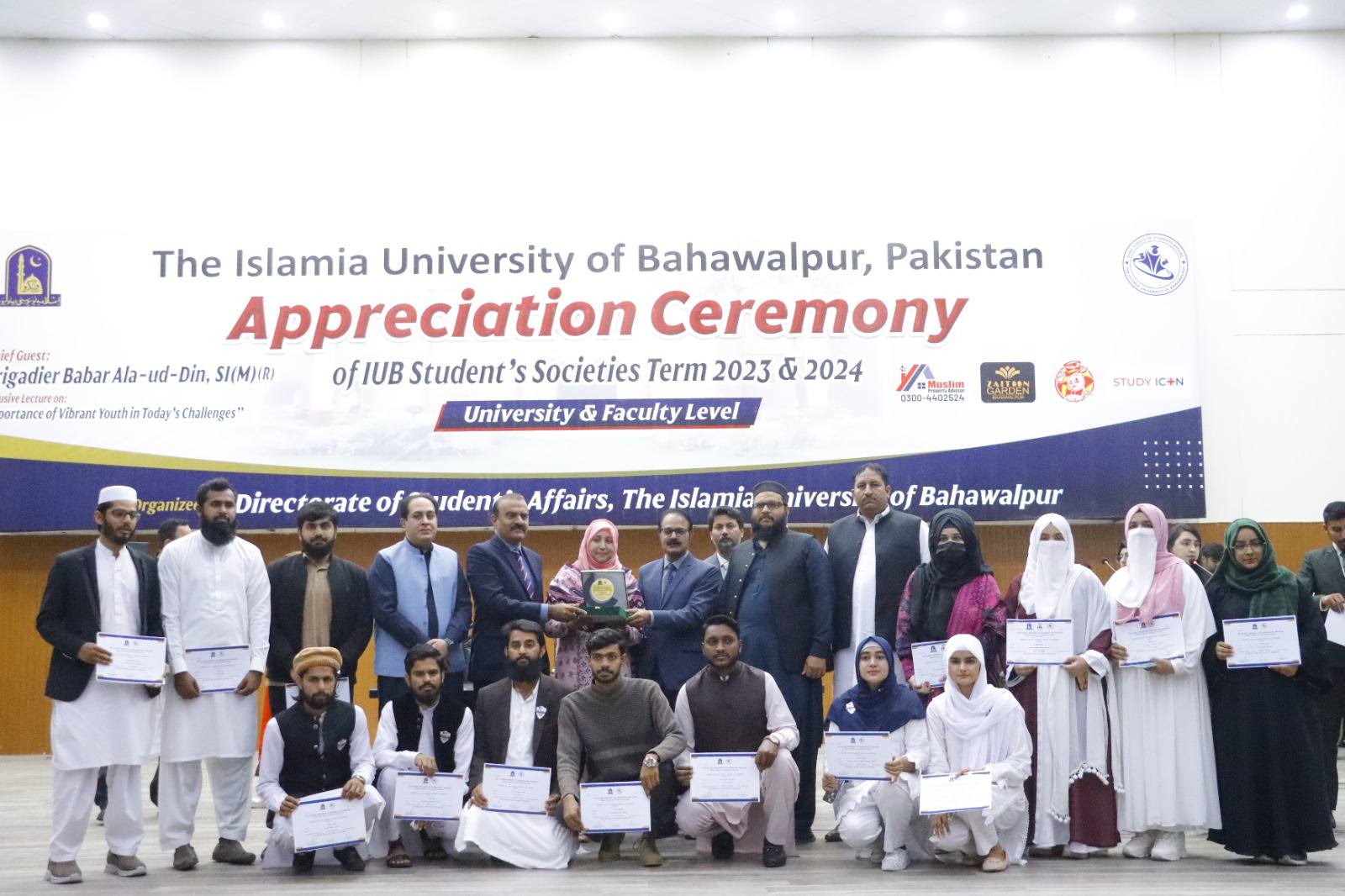27 February 2025: The Islamia University of Bahawalpur organized an appreciation ceremony for student societies 2023–24 at the Khawaja Ghulam Farid Auditorium, Baghdad ul Jadeed Campus. Chairperson Chief Minister Punjab Inspection, Surveillance, and Monitoring Directorate Brigadier Babar Alauddin Sitara-e-Imtiaz Military (R) was the chief guest on this occasion.