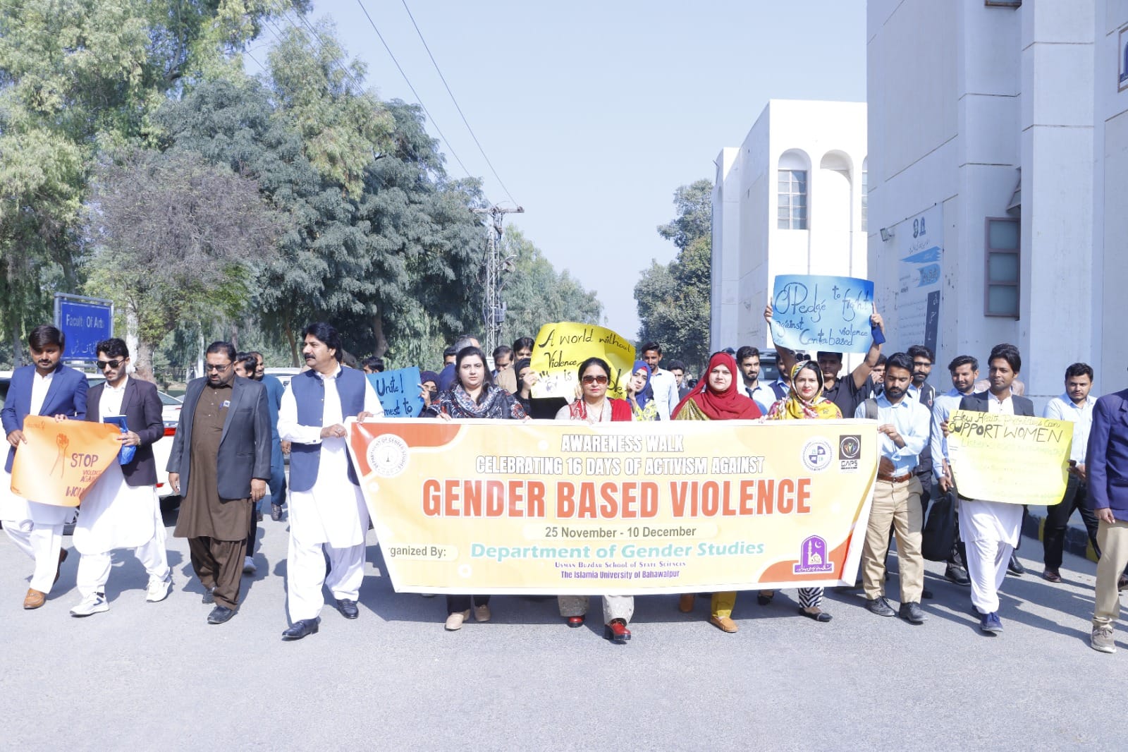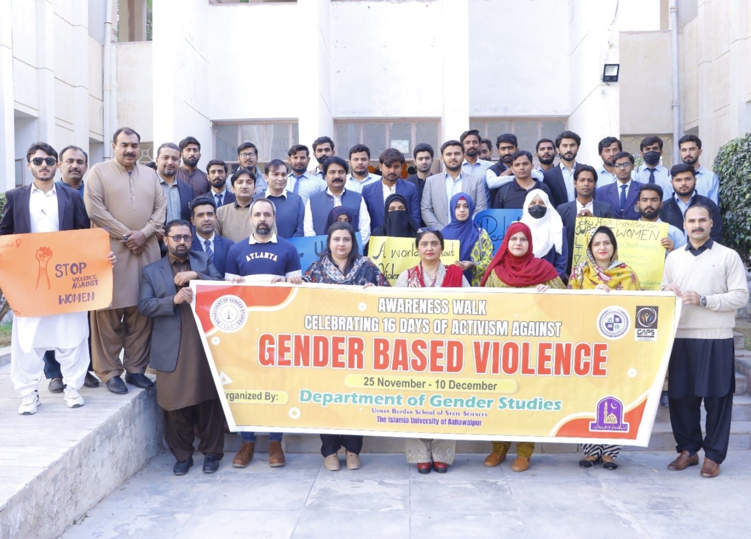 The 16 Days of Activism Against Gender-Based Violence is an annual UN Women campaign from 25 November to 10 December. The Department of Gender Studies at Usman Buzdar School of State Sciences held an inauguration at the Faculty of Arts Building, led by Prof. Dr. Rubina Bhatti.