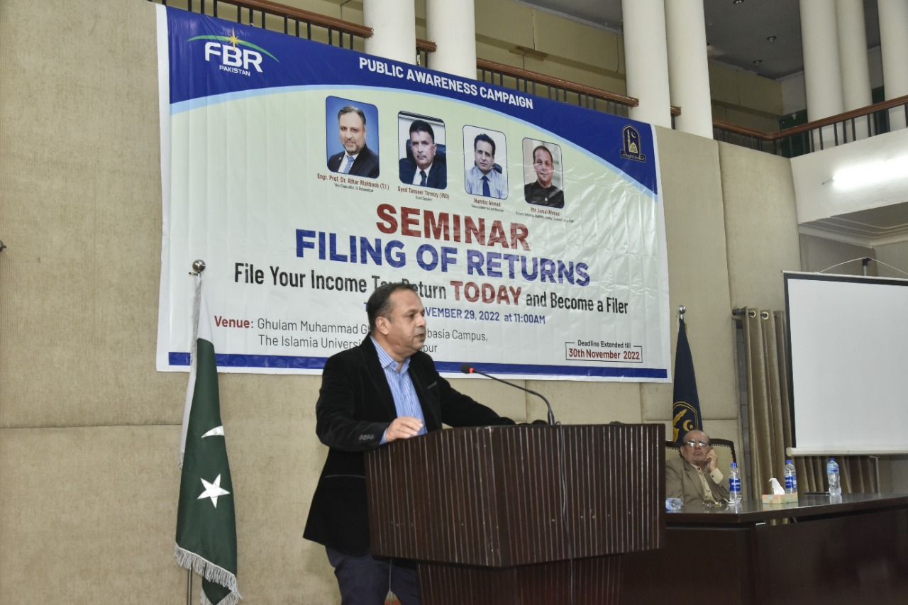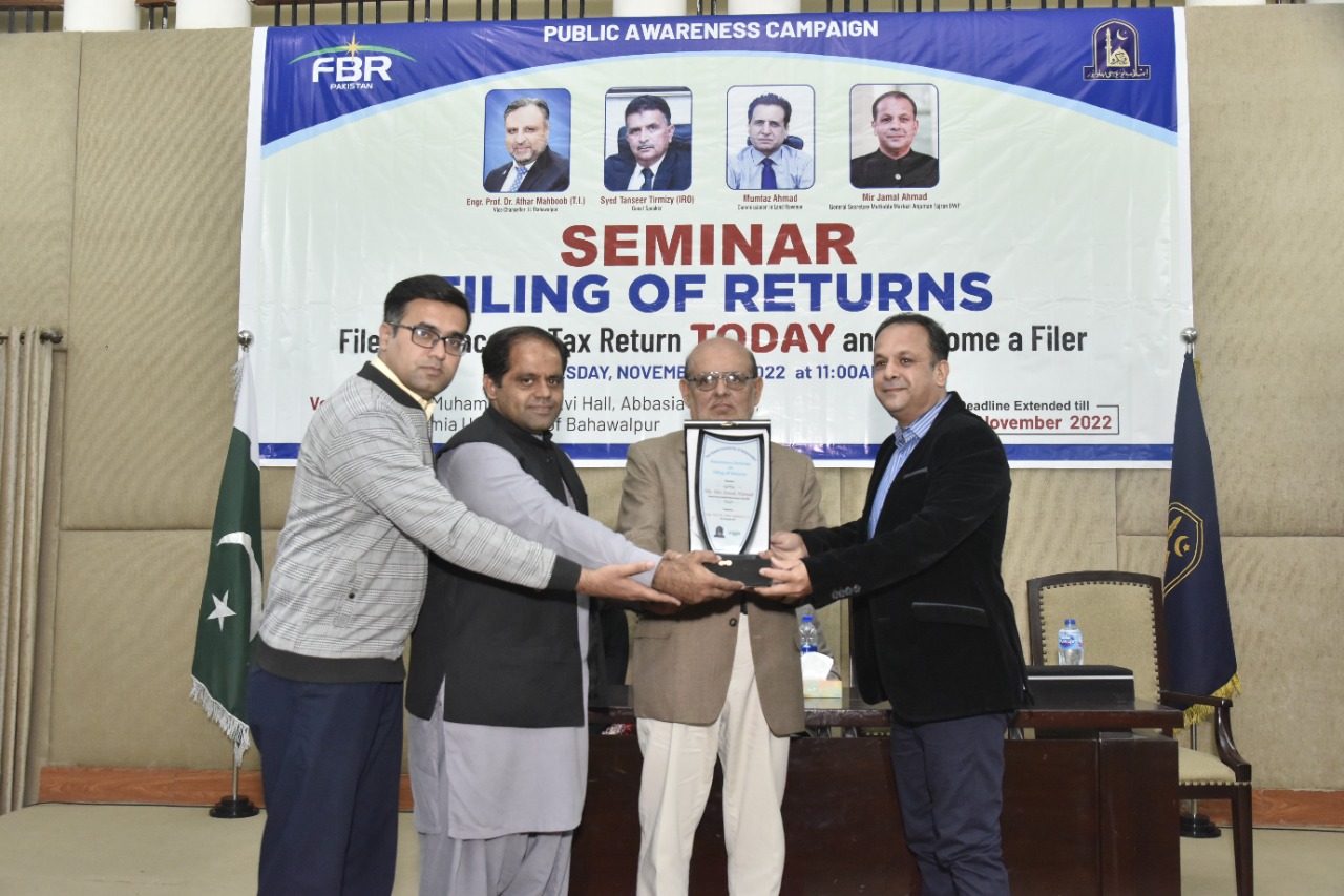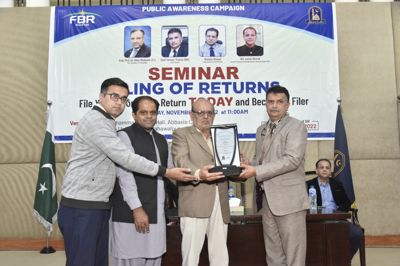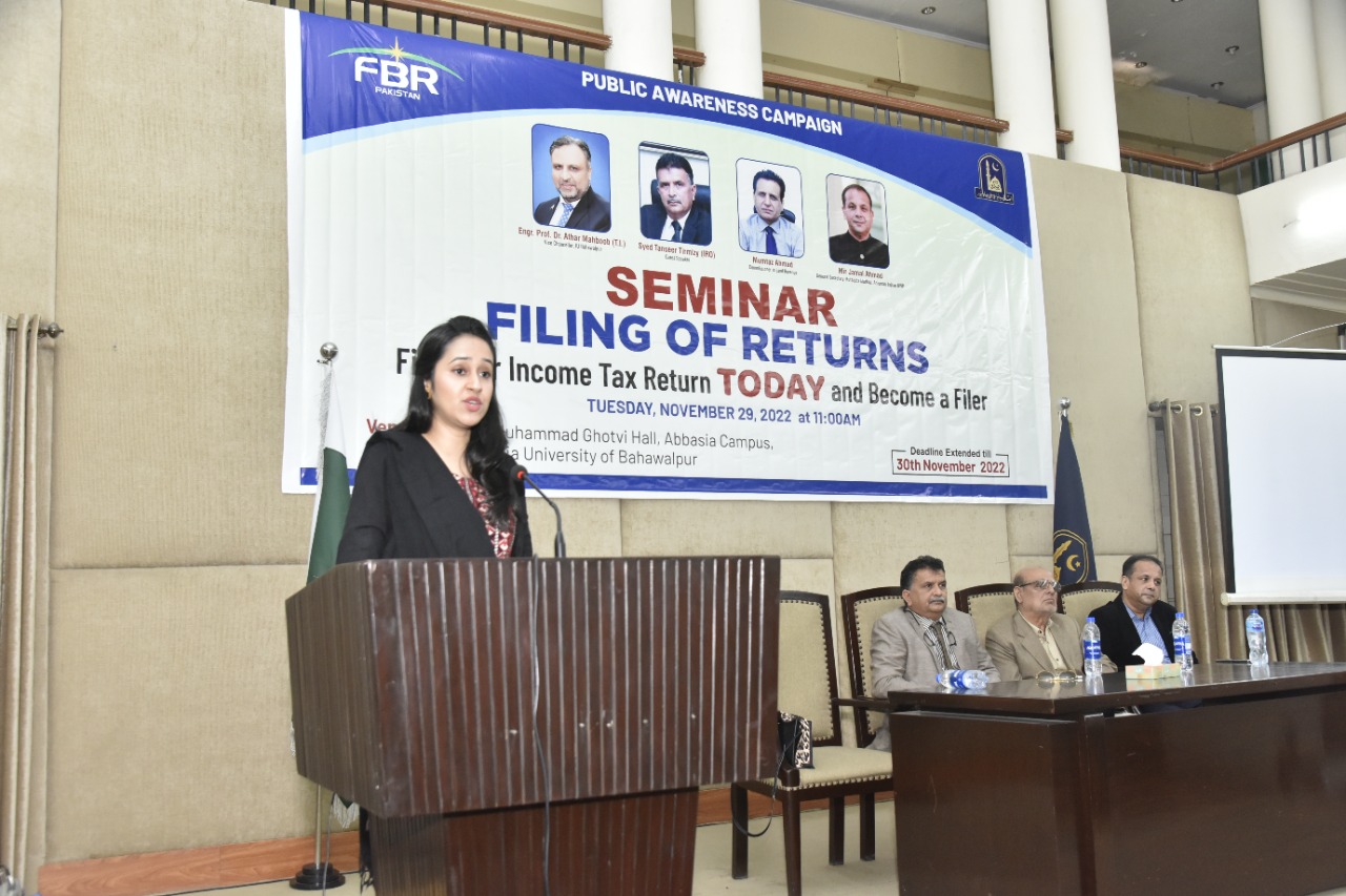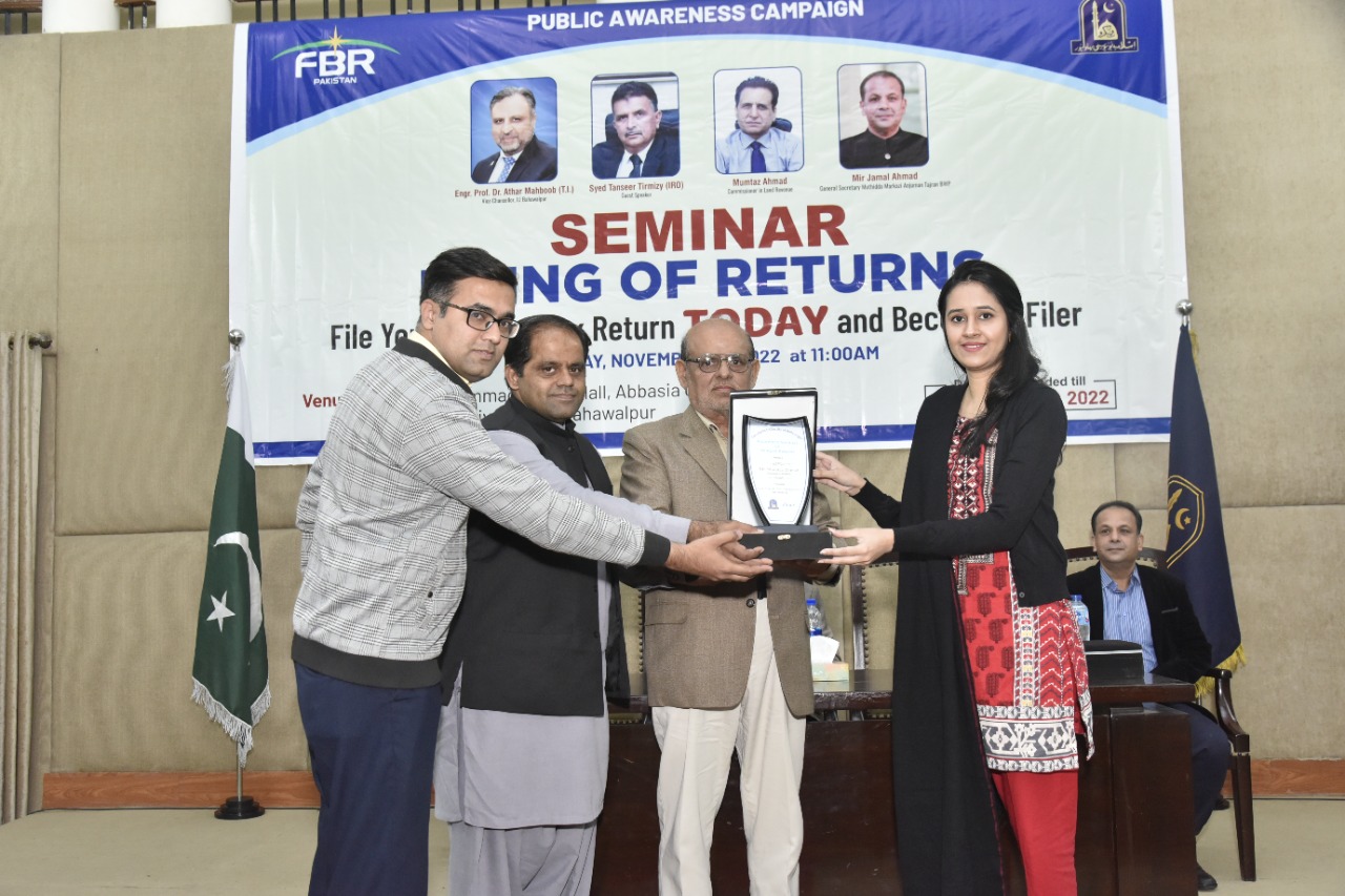 Awareness Seminar organized by the Faculty of Law, The Islamia University of Bahawalpur in collaboration with Federal Board of Revenue (FBR) on The topic of “Filling of Tax Returns”.