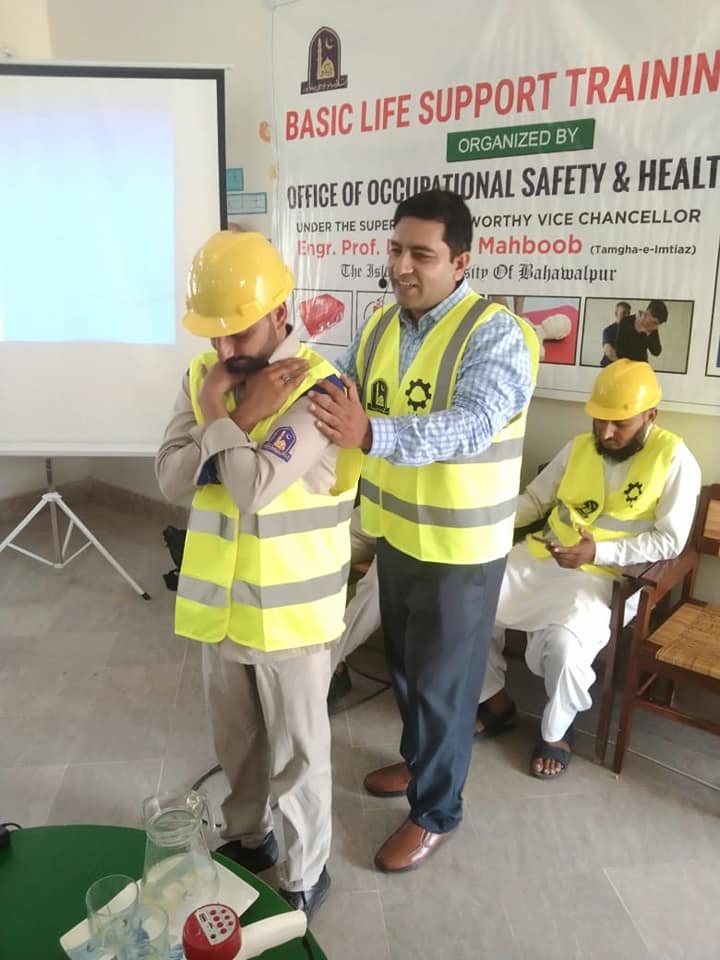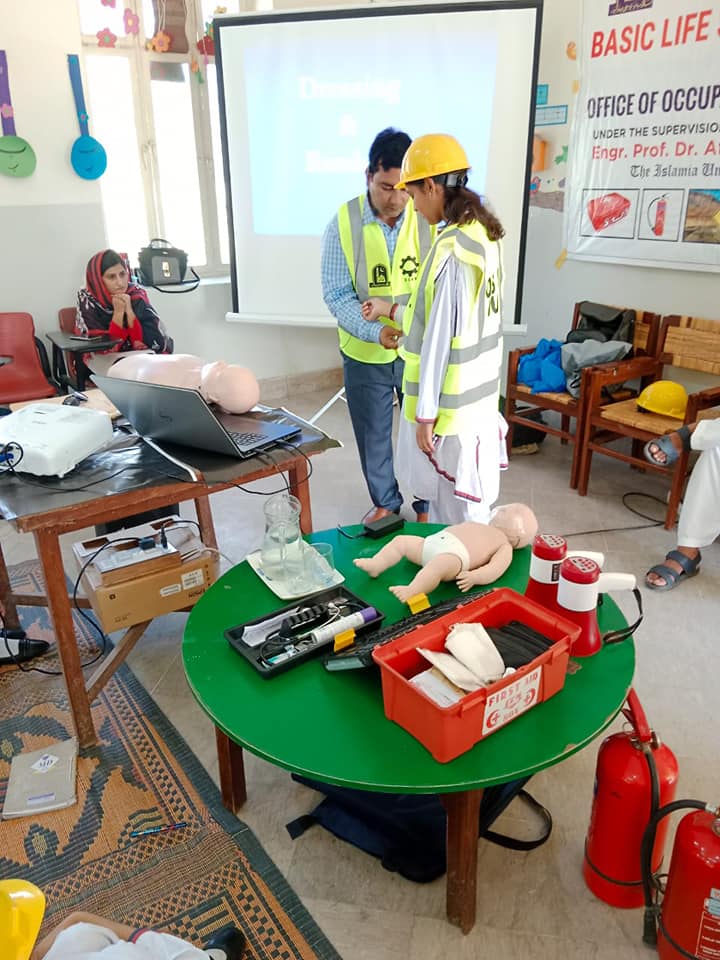 The Office of Occupational safety and Health(OSAH) has conducted Basic Life support (BLS) Training Session to the students and teachers of the islamia university School system (ISS) on 9 September Friday 2022. At ISS.in which OSAH has delivered the following training content.Basic Life Support, Major Emergencies, CPR, Choking, Injuries, Burn emergency, Fire Safety, Building Evacuation