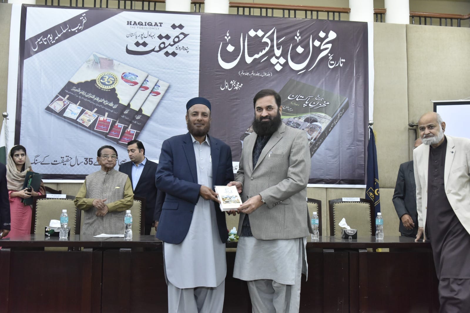 Book launch event organized by Haqiqat Magazine and IUB, Governor Punjab Muhammad Balighur Rehman as Chief Guest