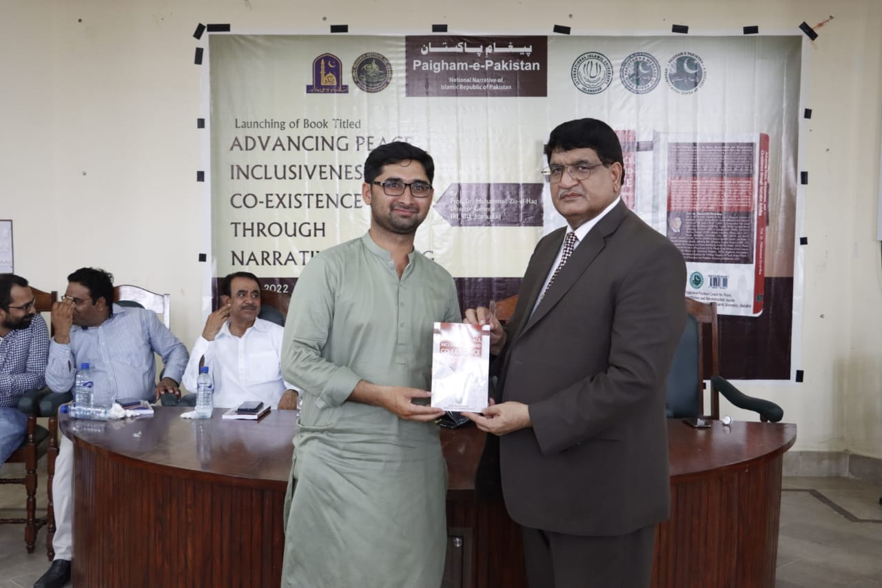 Book Launching Ceremony titled "Advancing Peace Inclusiveness Co-Existence Through Narrative" held at Faculty of Agriculture & Environment Auditorium organized by Paigham-e-Pakistan in collaboration with Department of Social Work and Department of Sociology, The Islamia University of Bahawalpur. The Book has been authored by Prof. Dr. Zia ul Haq, DG Islamic Research Institute Islamabad.
