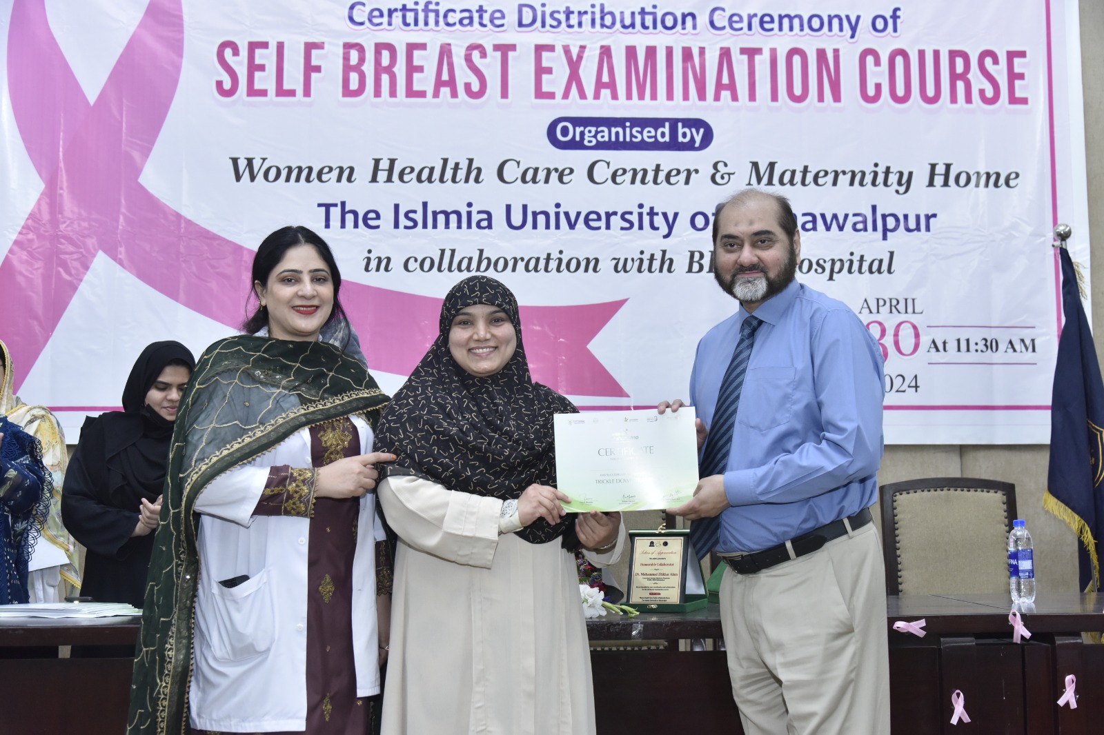 The certificate distribution ceremony for this session was conducted on April 30, 2024, in the Ghotvi Hall, Abbasia campus. Ms. Sumera Add. Deputy Commissioner Bahawalpur was the chief guest.