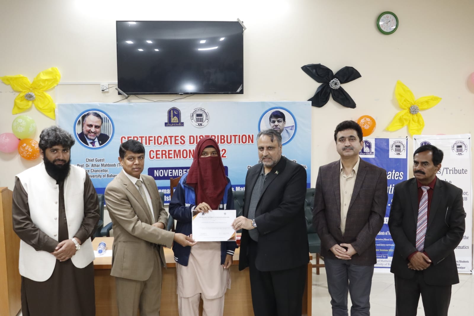 The Department of Mathematics, IUB organized the "Certificate Distribution Ceremony" to appreciate students of mathematics who participated in different "IUB Student Societies," other societies, the Blood Donation Club, Healthcare, Rescue-1122, curricular, and extra-curricular activities during the academic sessions of 2021–2022.