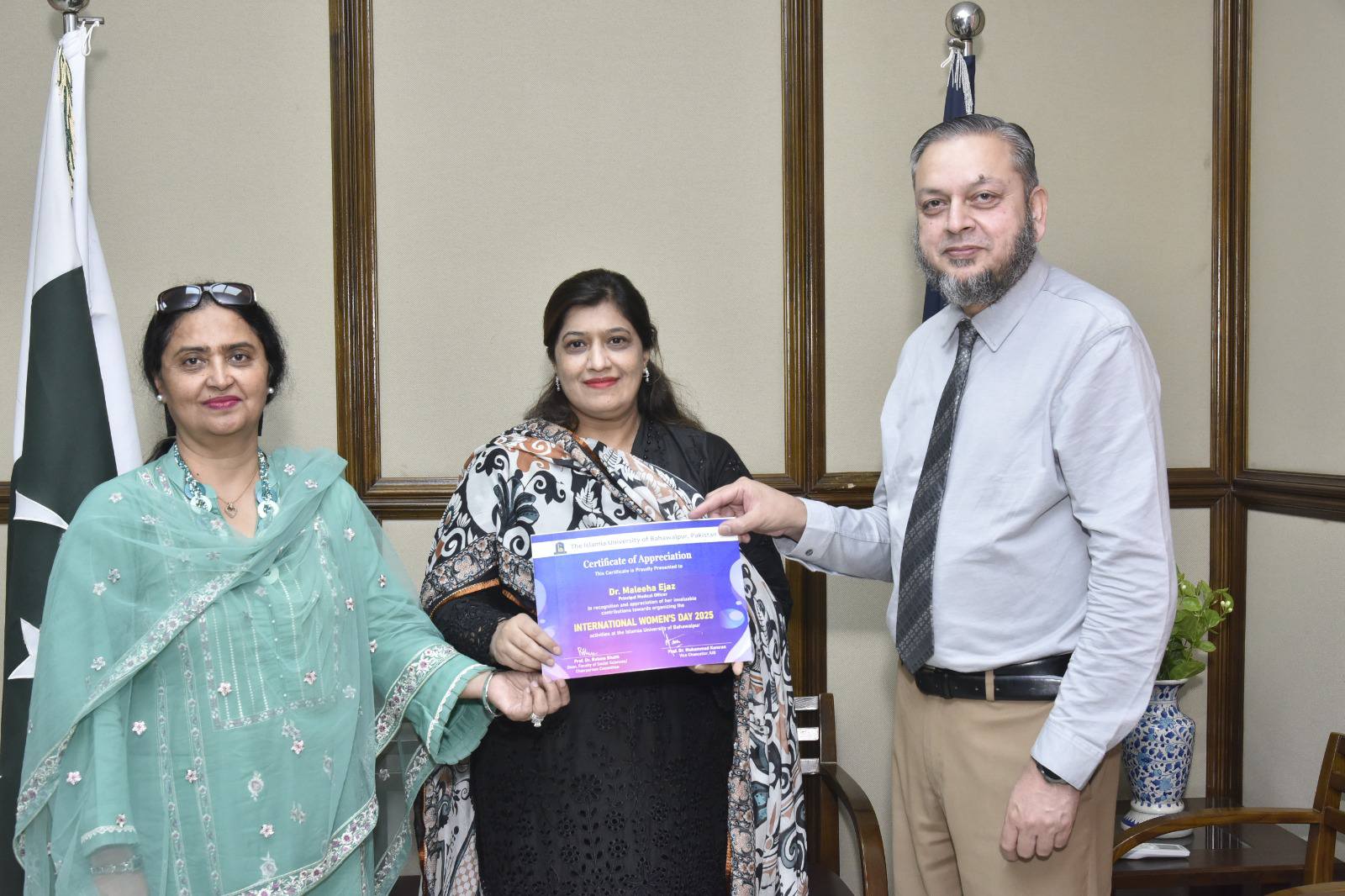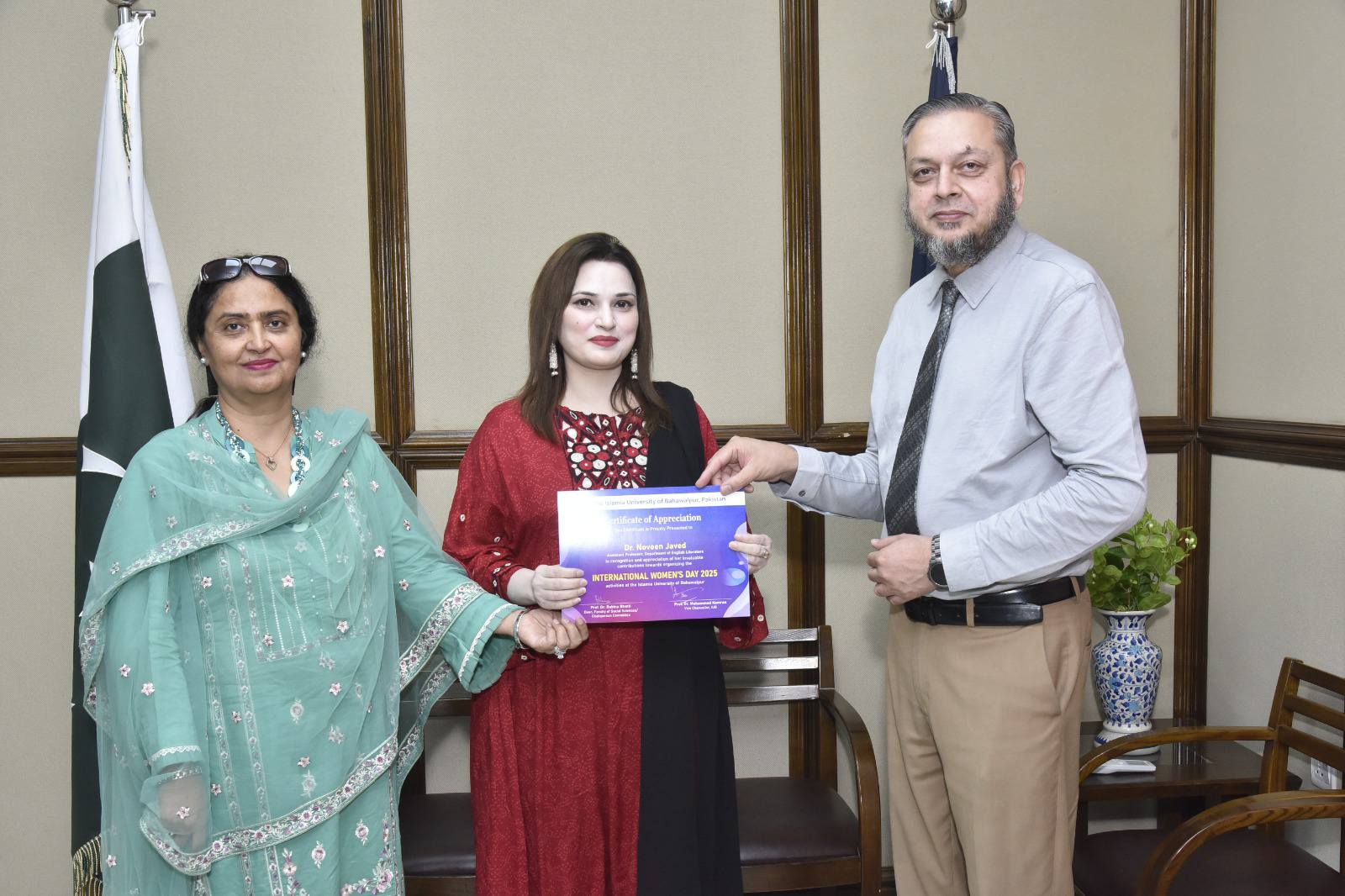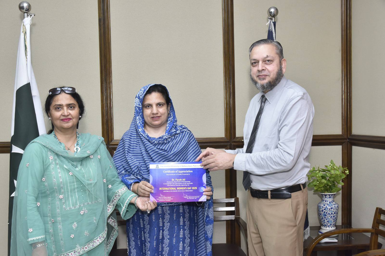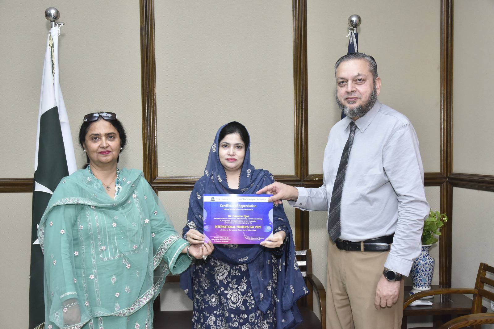 03 June 2025: Prof. Dr. Muhammad Kamran, Worthy Vice Chancellor of the Islamia University of Bahawalpur (IUB), awarded appreciation certificates to the organizing committee of International Women’s Day 2025 in a special ceremony held at the university.