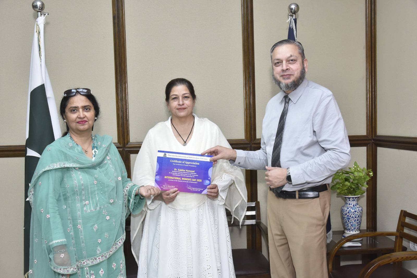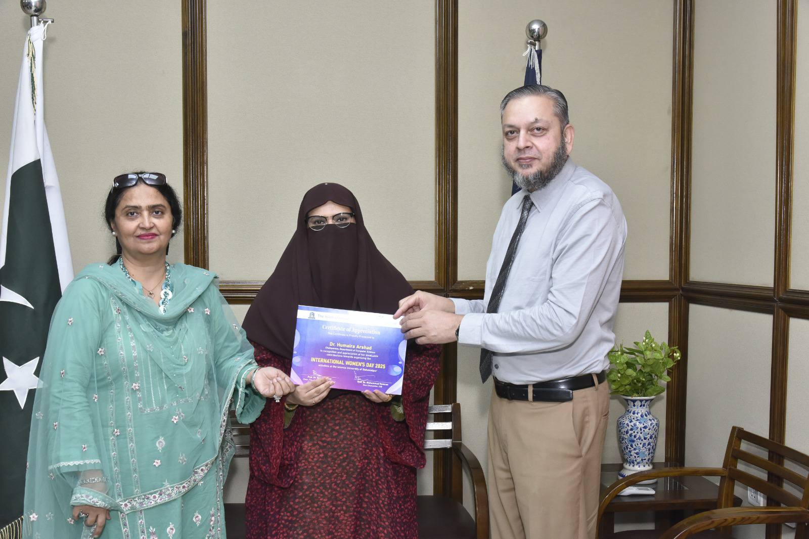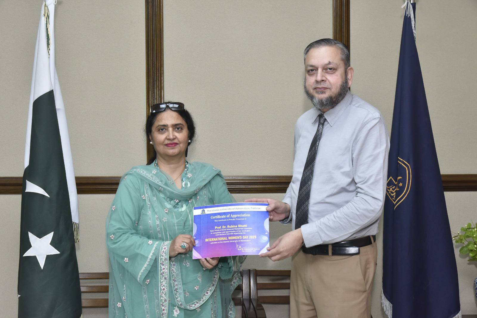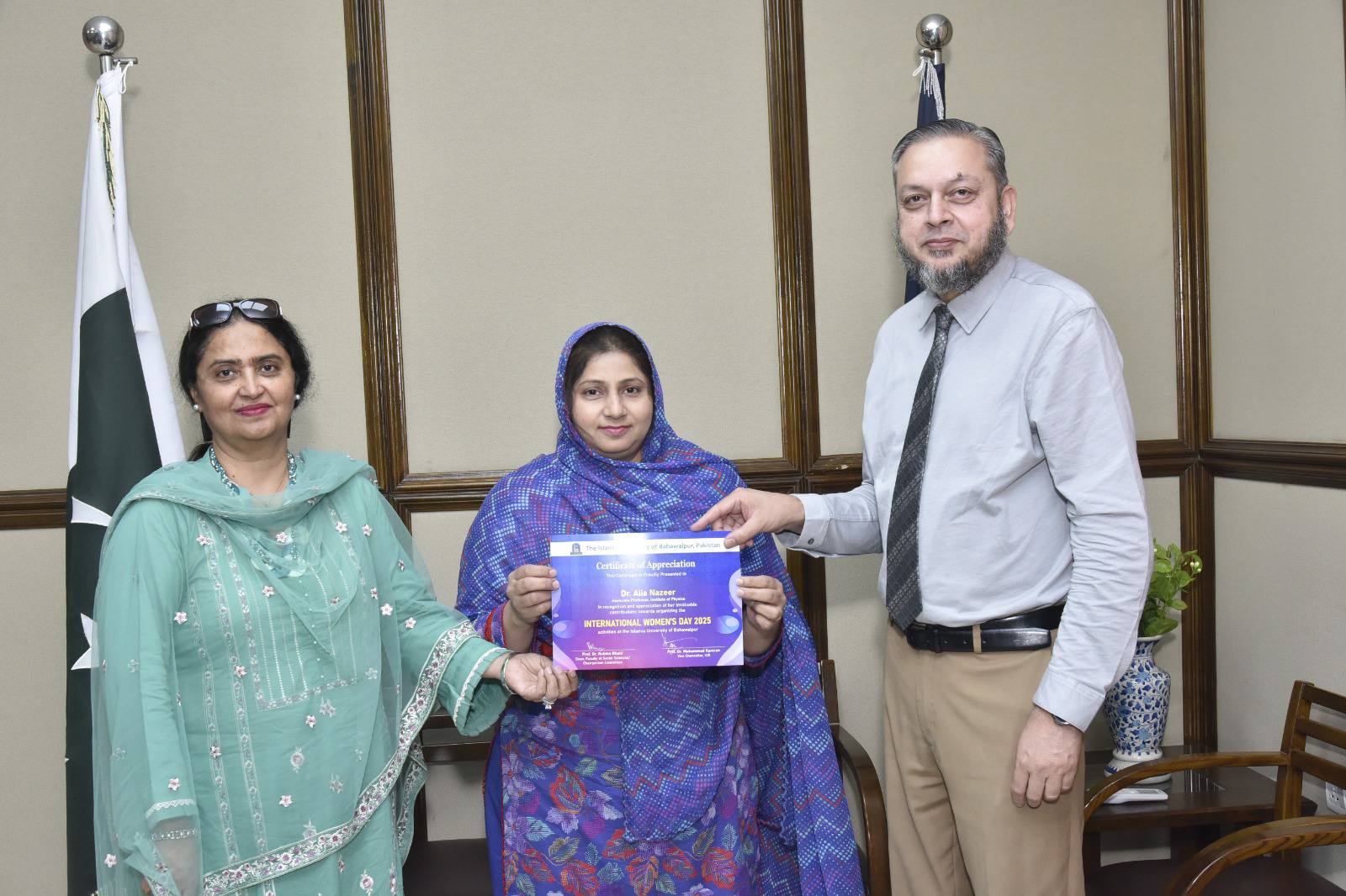 03 June 2025: Prof. Dr. Muhammad Kamran, Worthy Vice Chancellor of the Islamia University of Bahawalpur (IUB), awarded appreciation certificates to the organizing committee of International Women’s Day 2025 in a special ceremony held at the university.