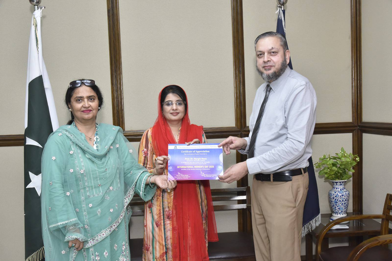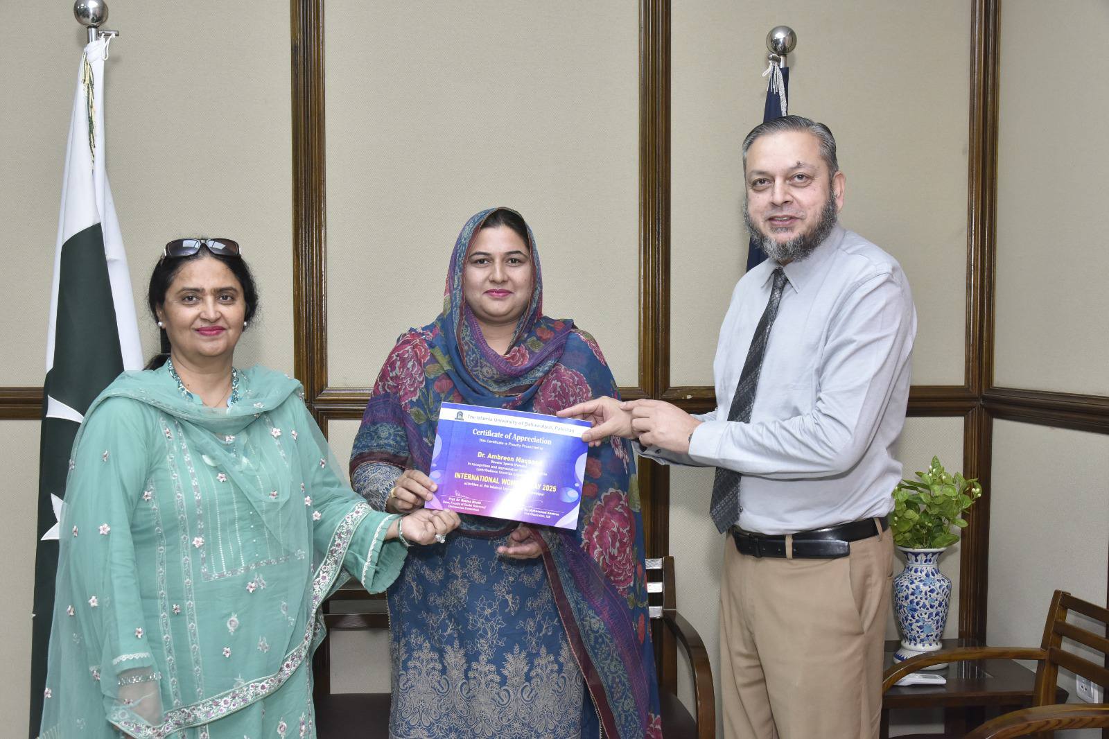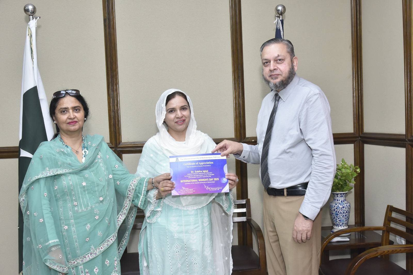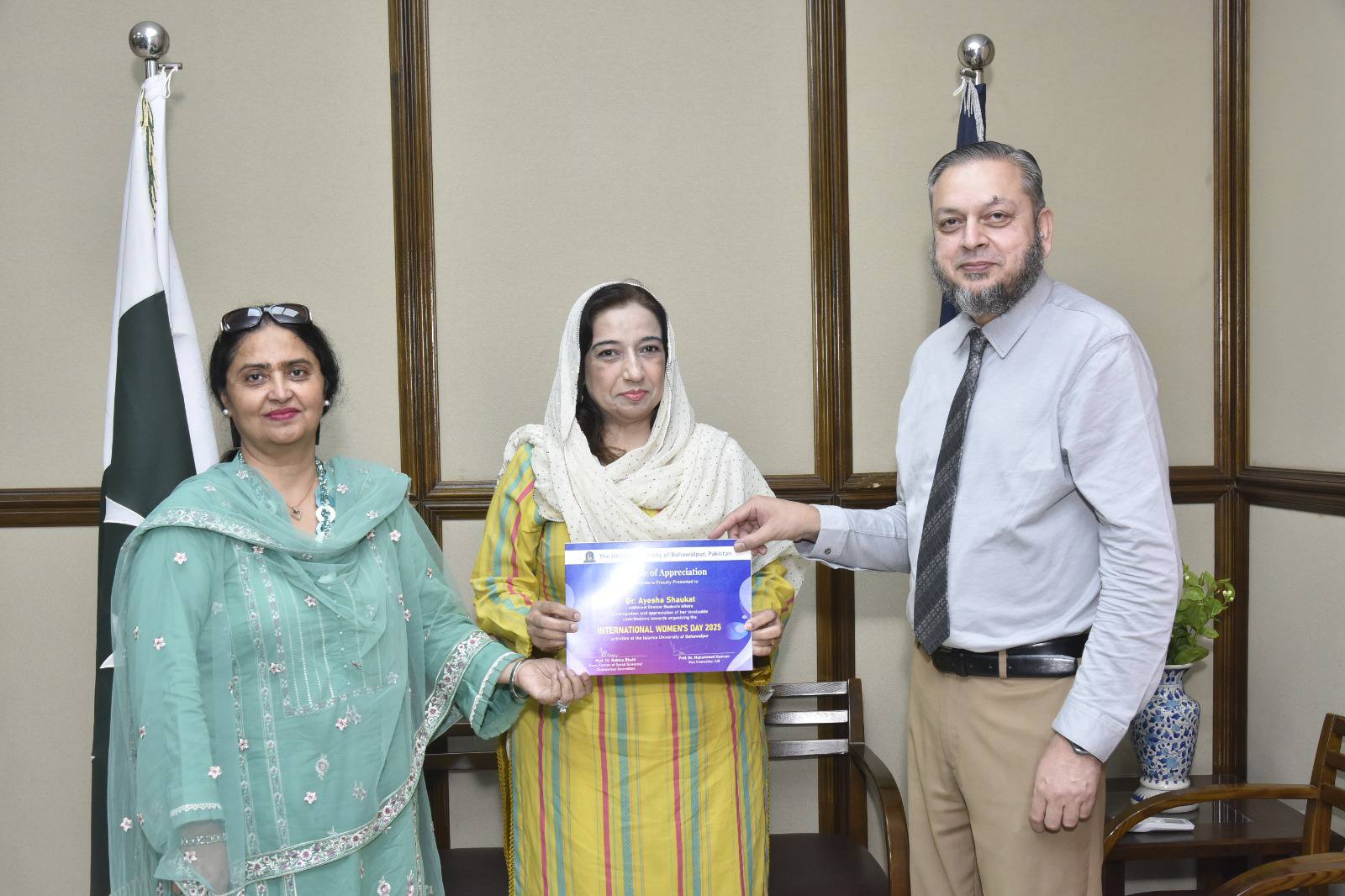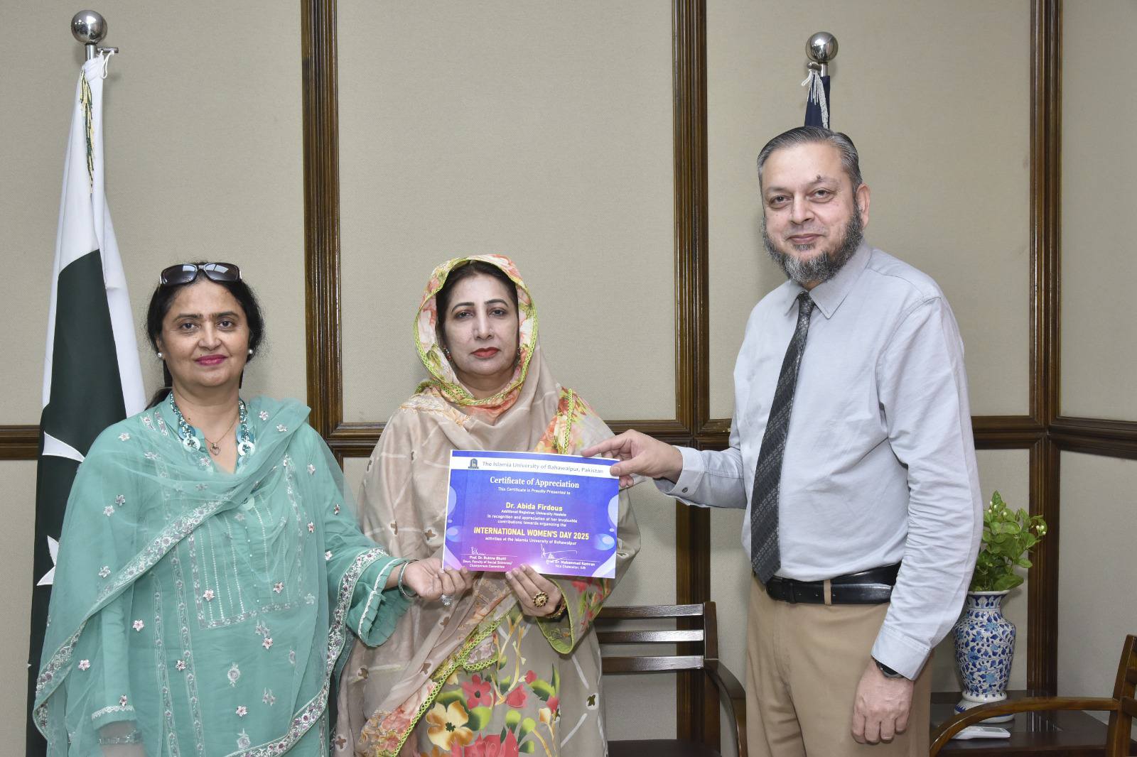 03 June 2025: Prof. Dr. Muhammad Kamran, Worthy Vice Chancellor of the Islamia University of Bahawalpur (IUB), awarded appreciation certificates to the organizing committee of International Women’s Day 2025 in a special ceremony held at the university.