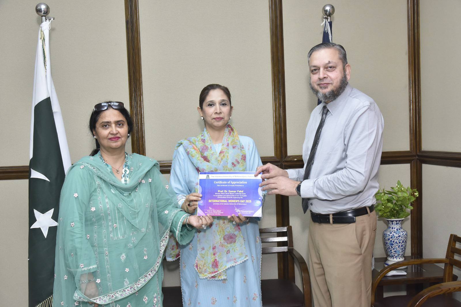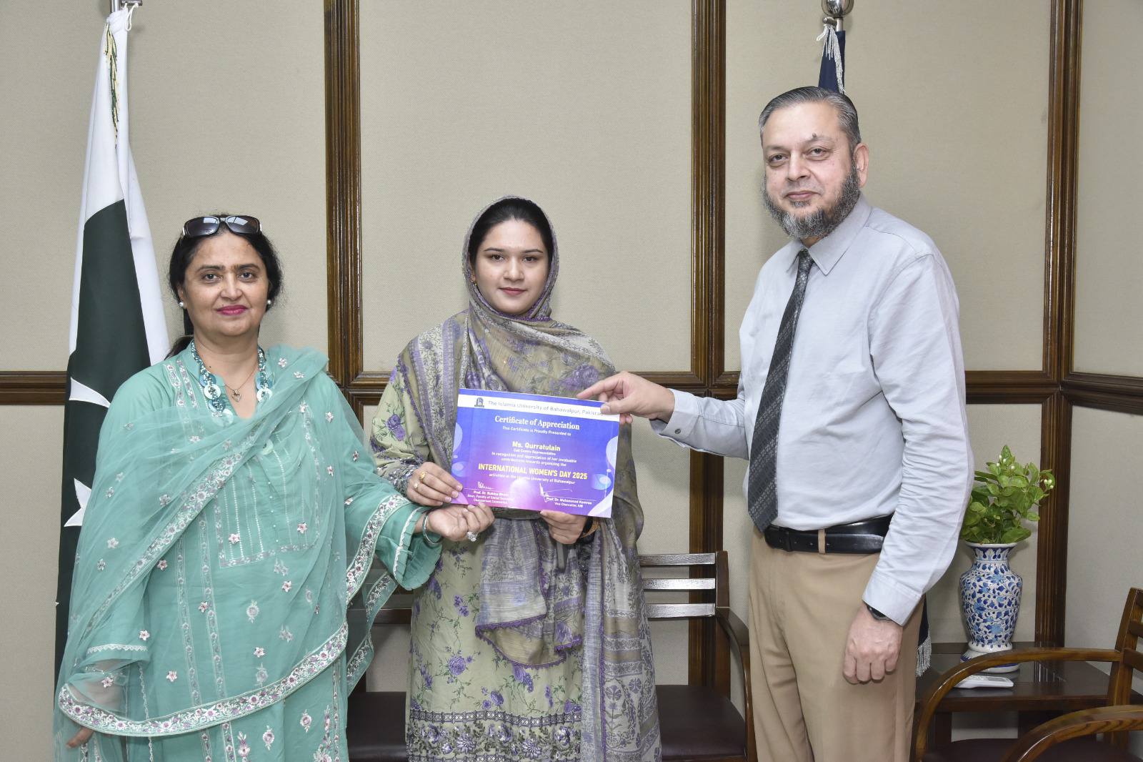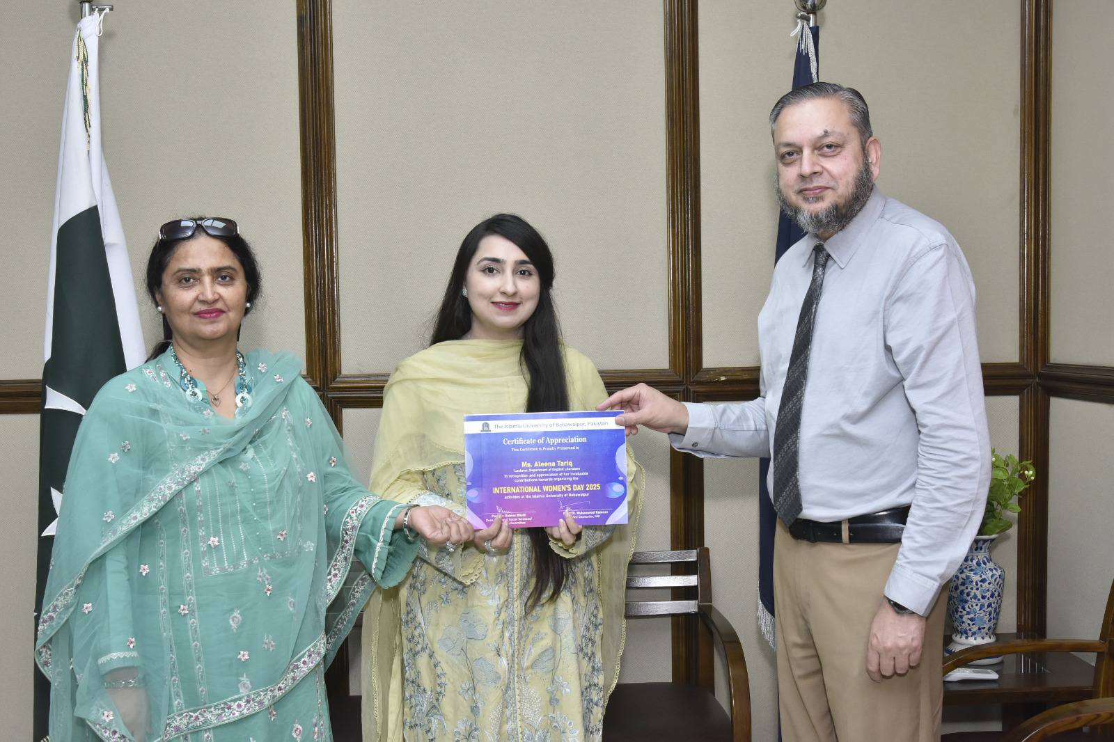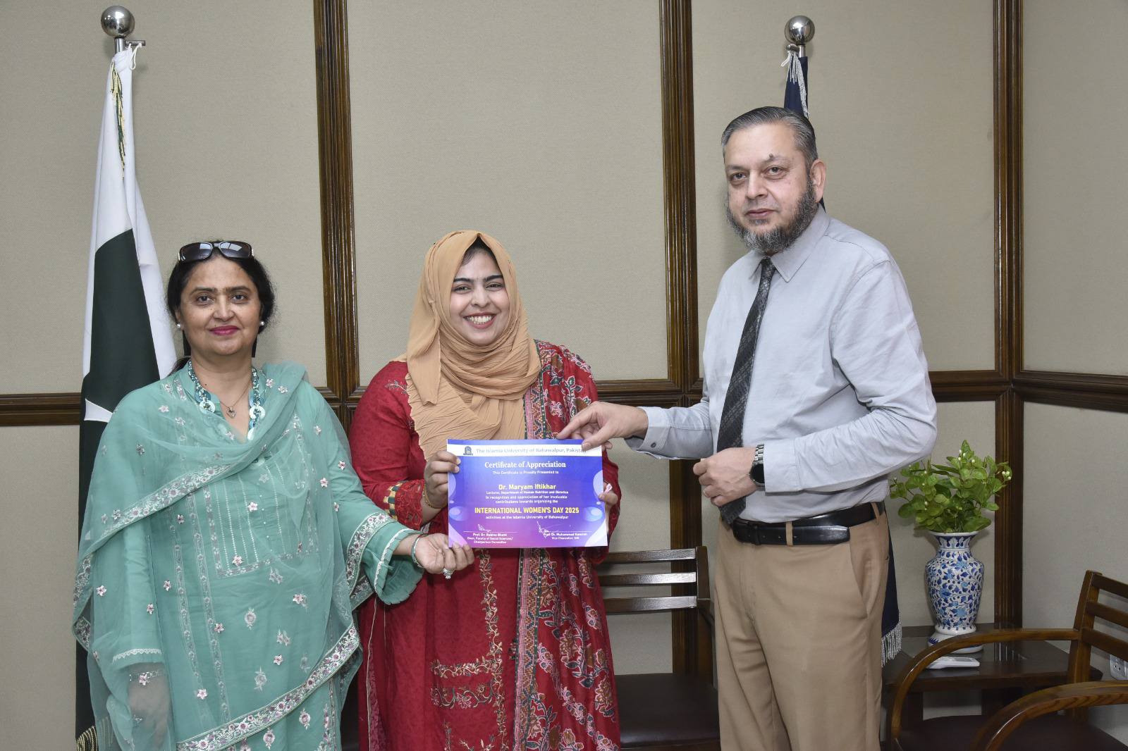 03 June 2025: Prof. Dr. Muhammad Kamran, Worthy Vice Chancellor of the Islamia University of Bahawalpur (IUB), awarded appreciation certificates to the organizing committee of International Women’s Day 2025 in a special ceremony held at the university.