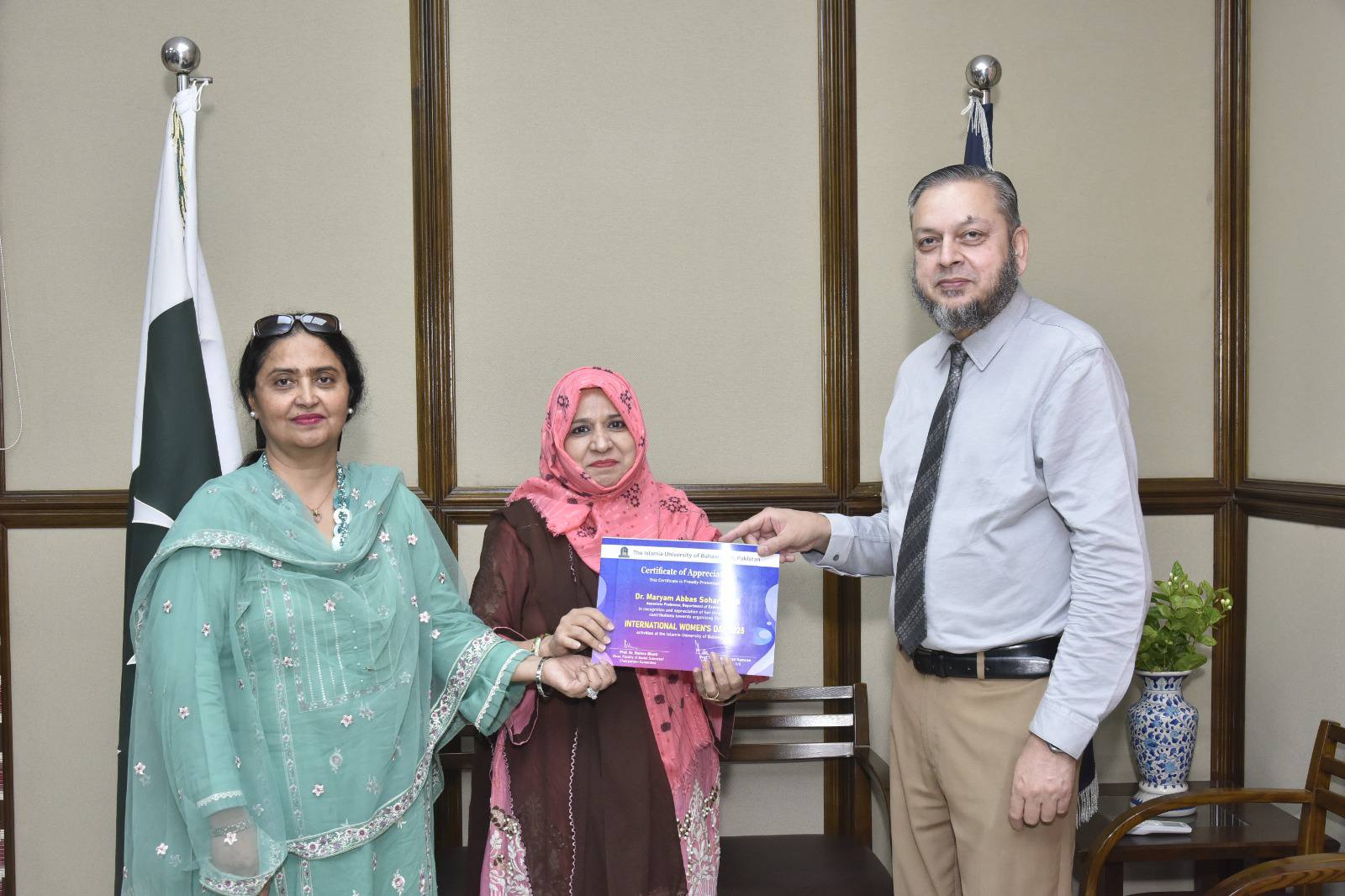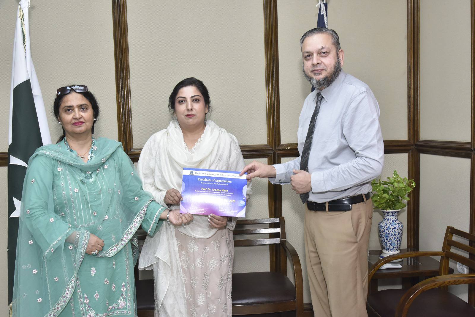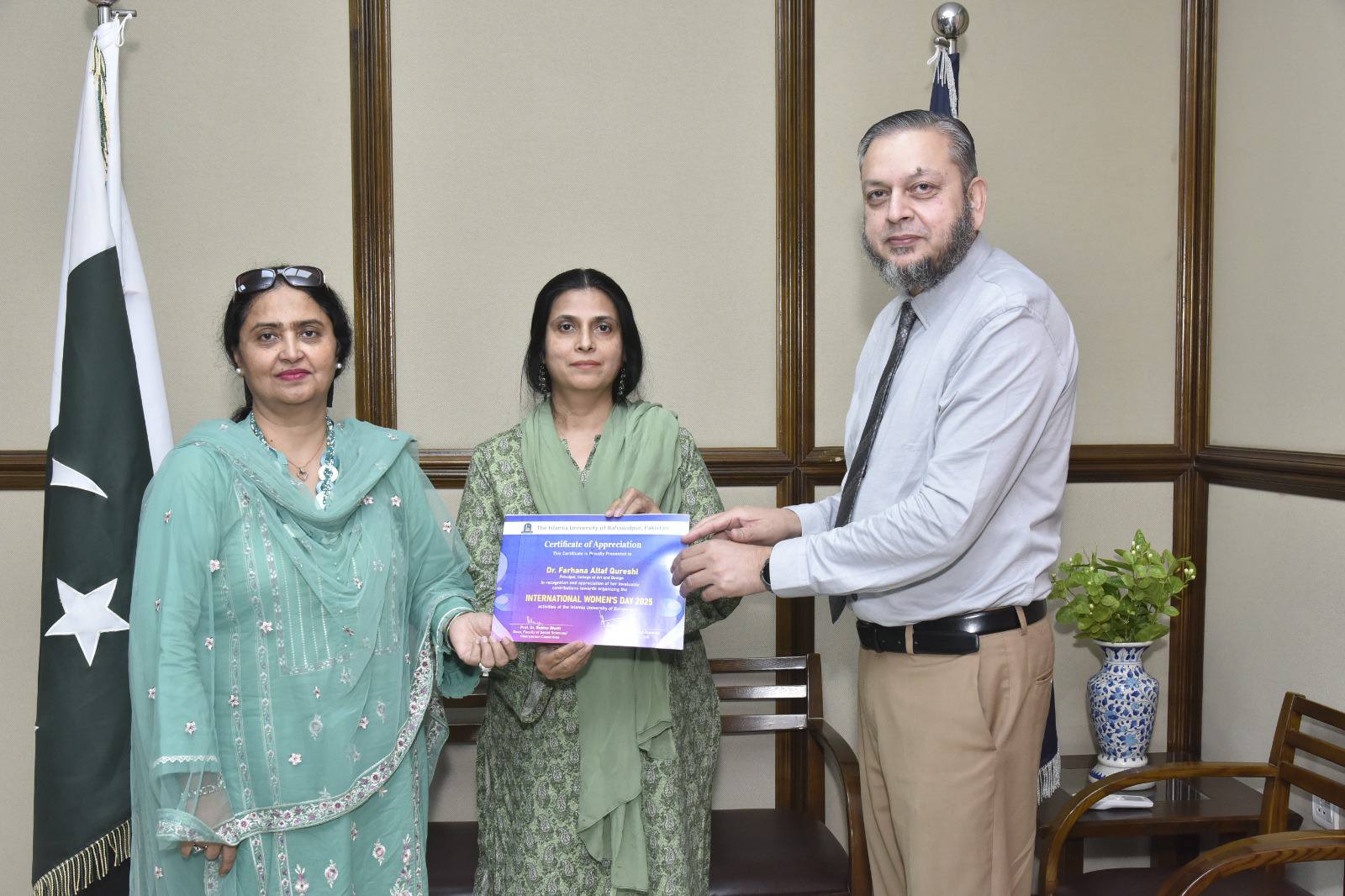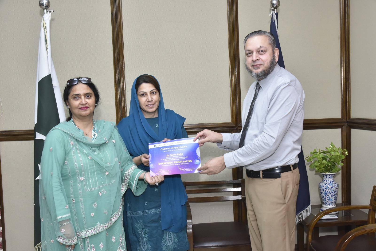 03 June 2025: Prof. Dr. Muhammad Kamran, Worthy Vice Chancellor of the Islamia University of Bahawalpur (IUB), awarded appreciation certificates to the organizing committee of International Women’s Day 2025 in a special ceremony held at the university.