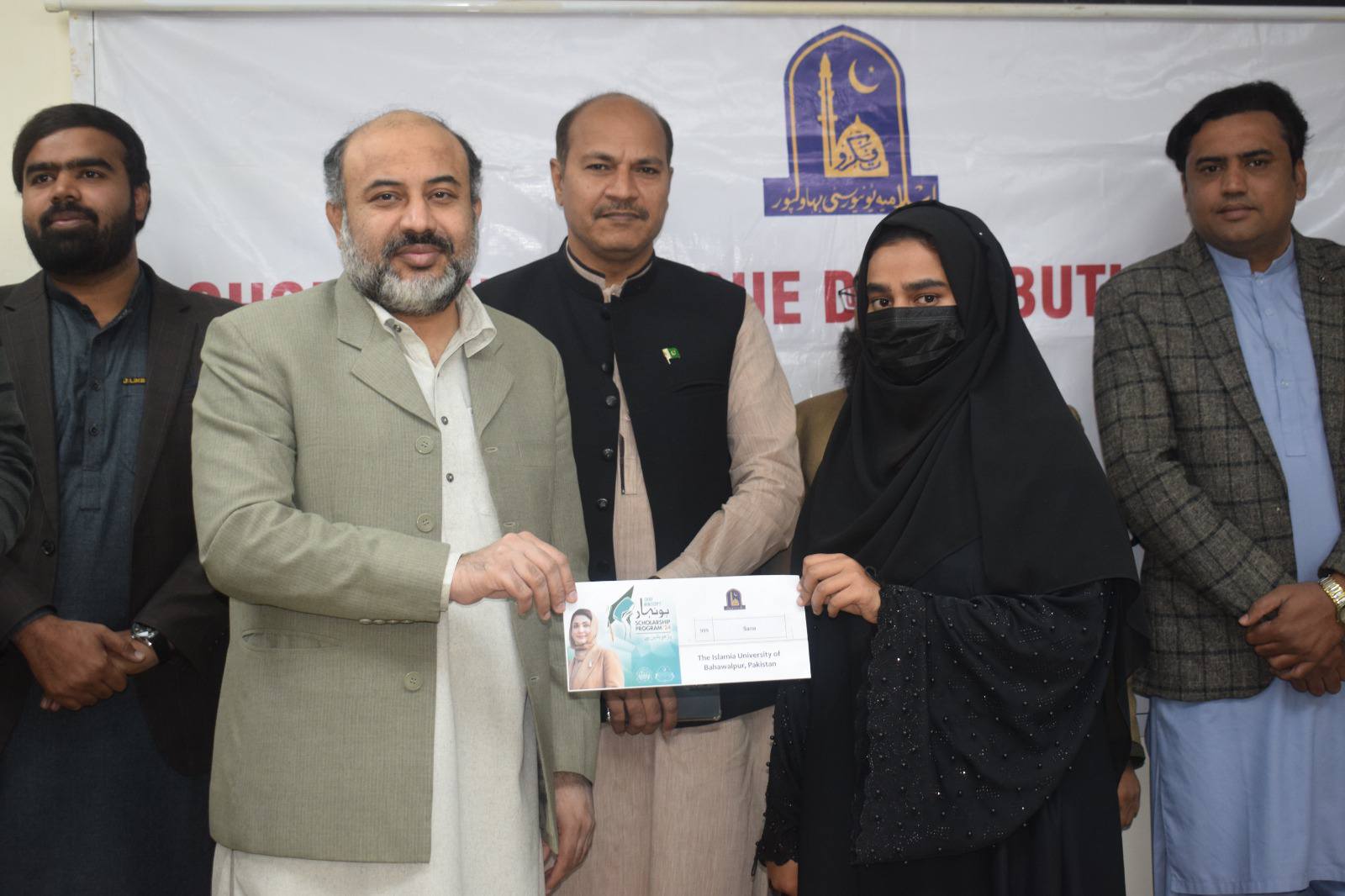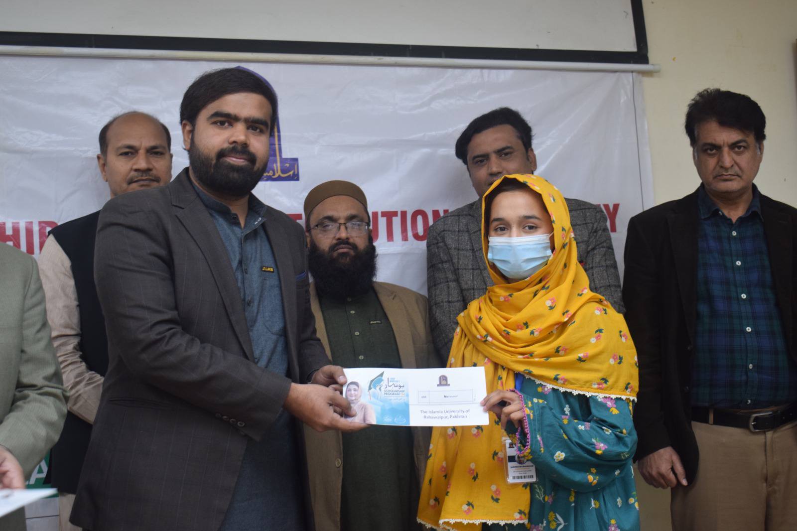 A cheque distribution ceremony for the “Honhaar Undergraduate Scholarships (Fall 2024)” was held on 28.01.2025 at the Islamia University of Bahawalpur, Bahawalnagar Campus. The ceremony was organized under the leadership of Dr. Rafaquat Ali, Director Campus.