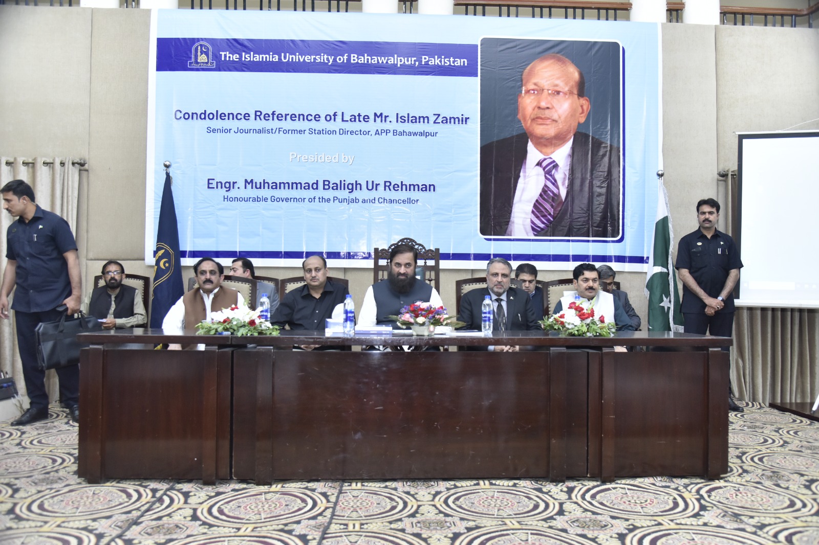 Governor Punjab Engr. Muhammad Baligh ur Rahman attended the condolence reference of late journalist Islam Zamir at Abbasia Campus and paid tribute to his journalistic services.
