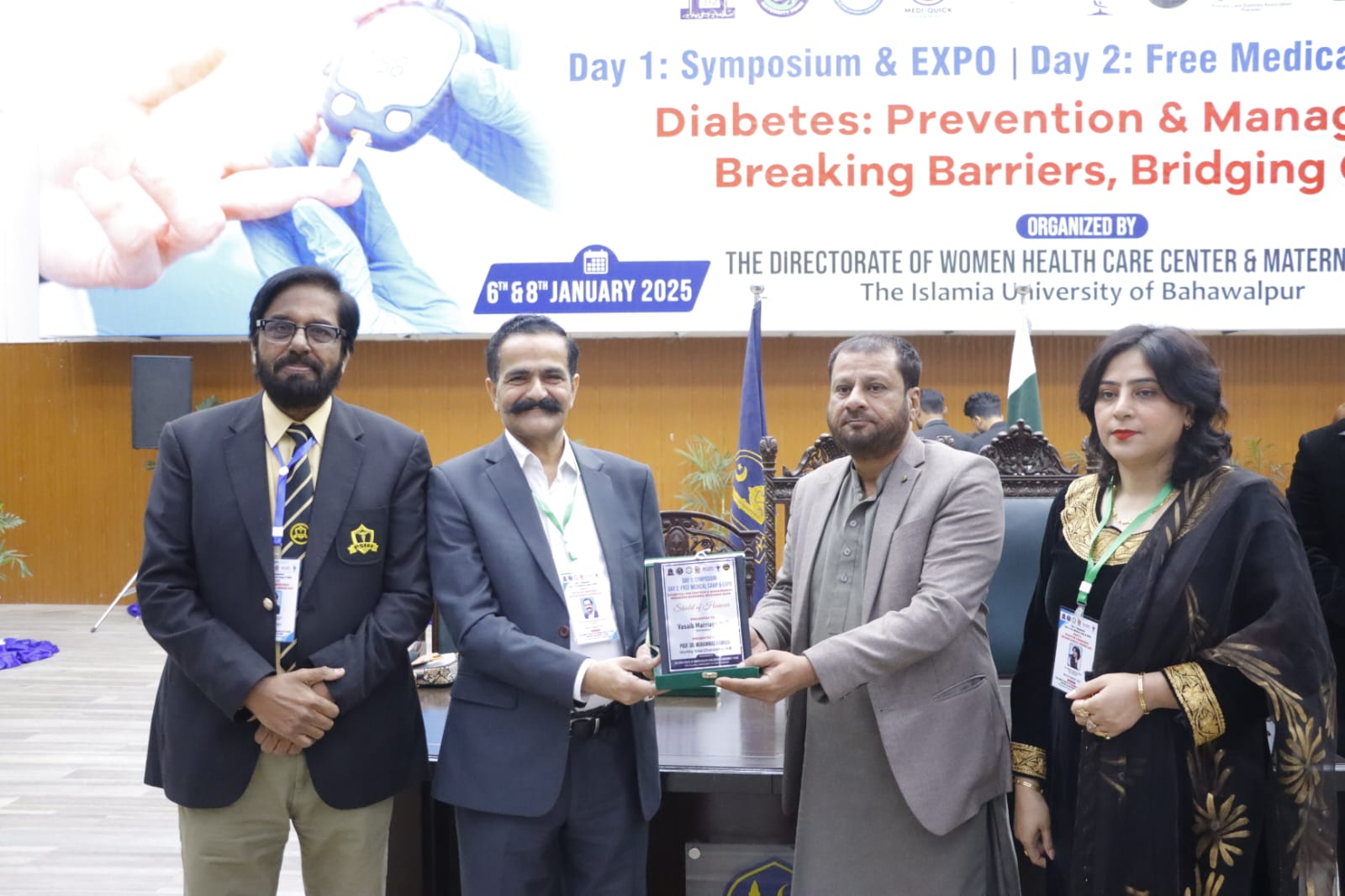 The Islamia University of Bahawalpur's Directorate of Women Health Care Centre & Maternity Home (WHCC&MH) is organizing two-day diabetes prevention events. A symposium was held on the first day, January 6, 2025, in the KGF Auditorium, Baghdad ul Jadeed Campus.