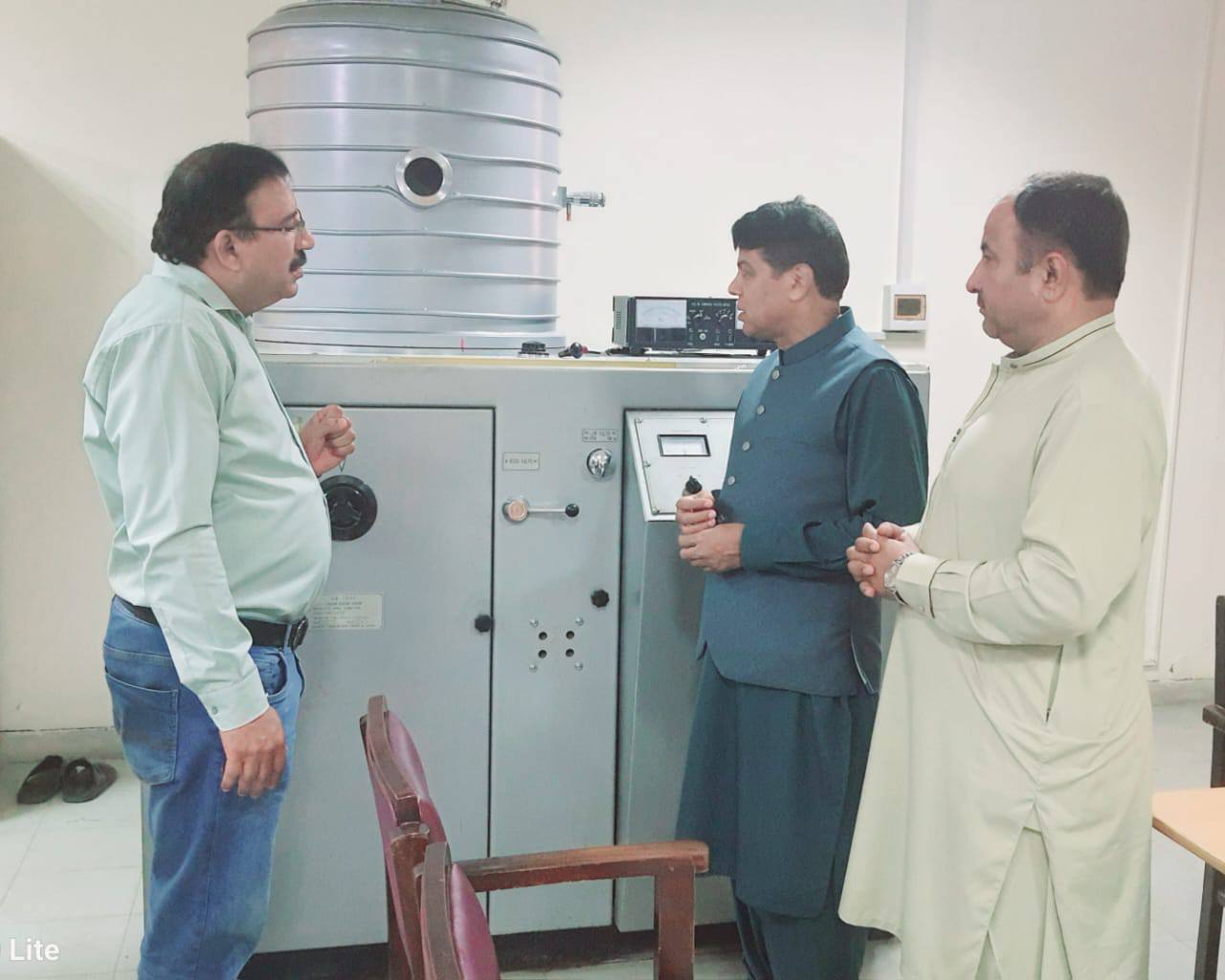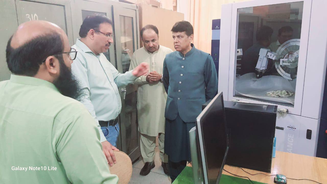 Bahawalpur, March 24, 2025: Prof. Dr. Ghulam Mustafa, Dean of the Faculty of Physical and Mathematical Sciences at IUB, made a visit to the Centralized Instruments Laboratory. During the visit, Dr. Faisal Iqbal, the laboratory In-Charge, gave an in-depth briefing on the instruments in the facility. Prof. Dr. Altaf Hussain, Director Institute of Physics, and other faculty members also visit the lab