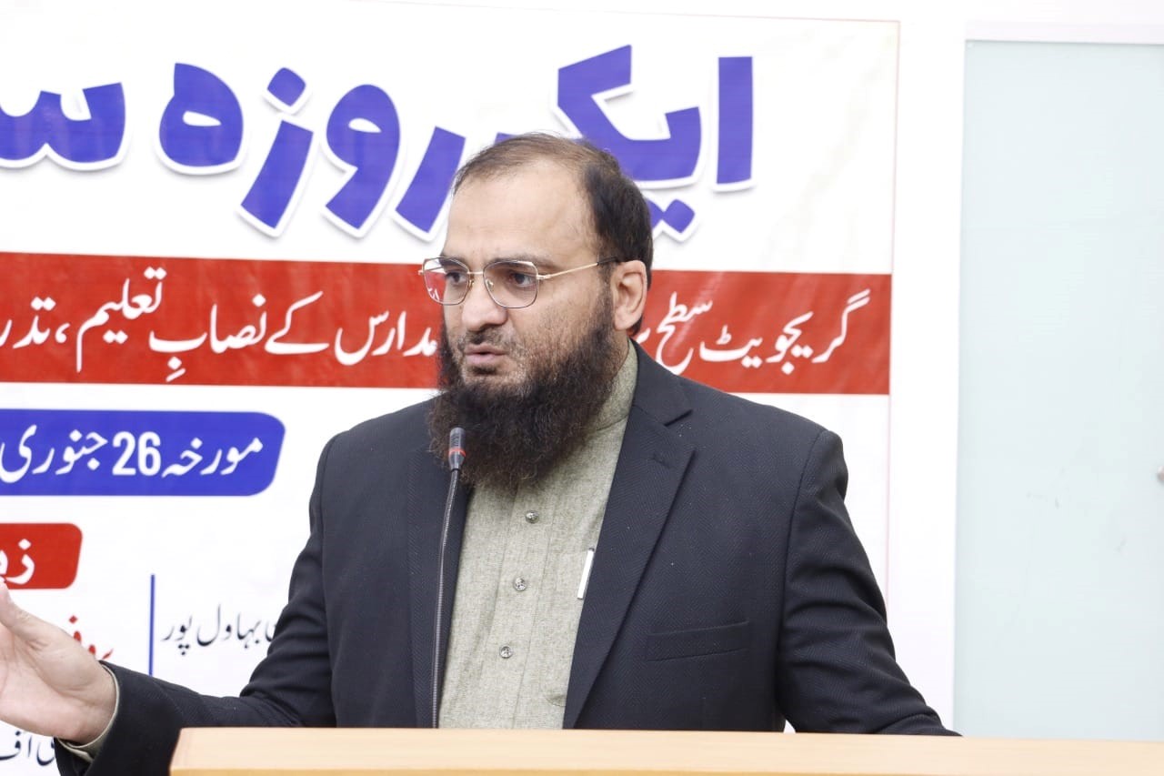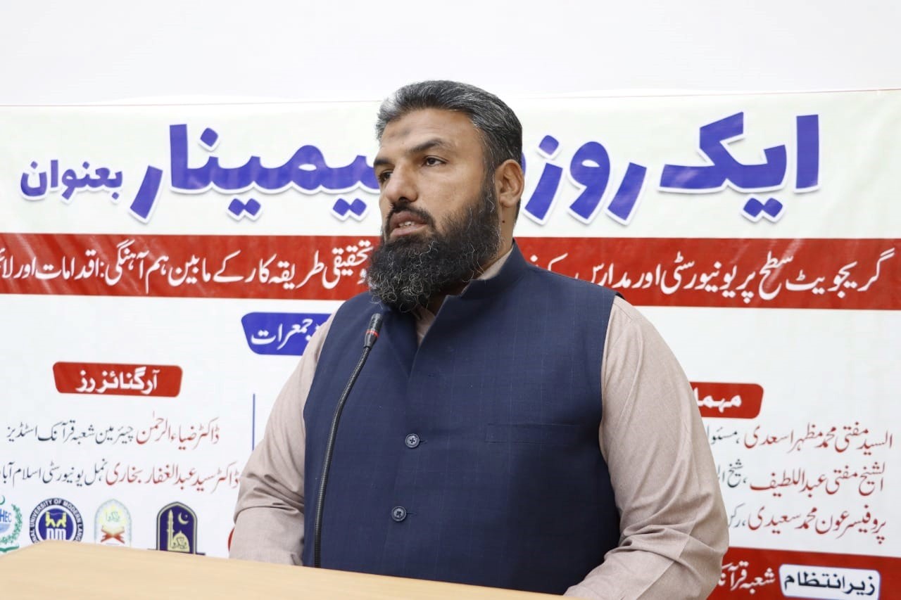 A National seminar was organized by the Department of Qur'anic Studies IUB with the collaboration of the NUML University, Islamabad on the topic of” Harmonizing the University and Madrassa Curriculum, Teaching Methodology, and at Graduate Research Approaches Level in Pakistan” held at Kamyab Jawan Markaz, Baghdad-ul-Jadeed Campus, IUB.