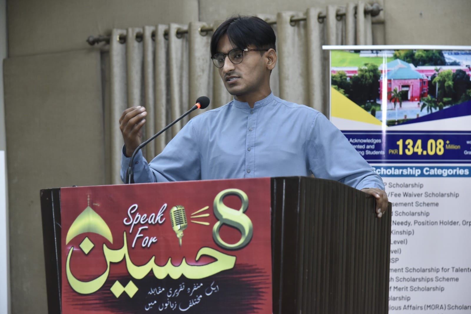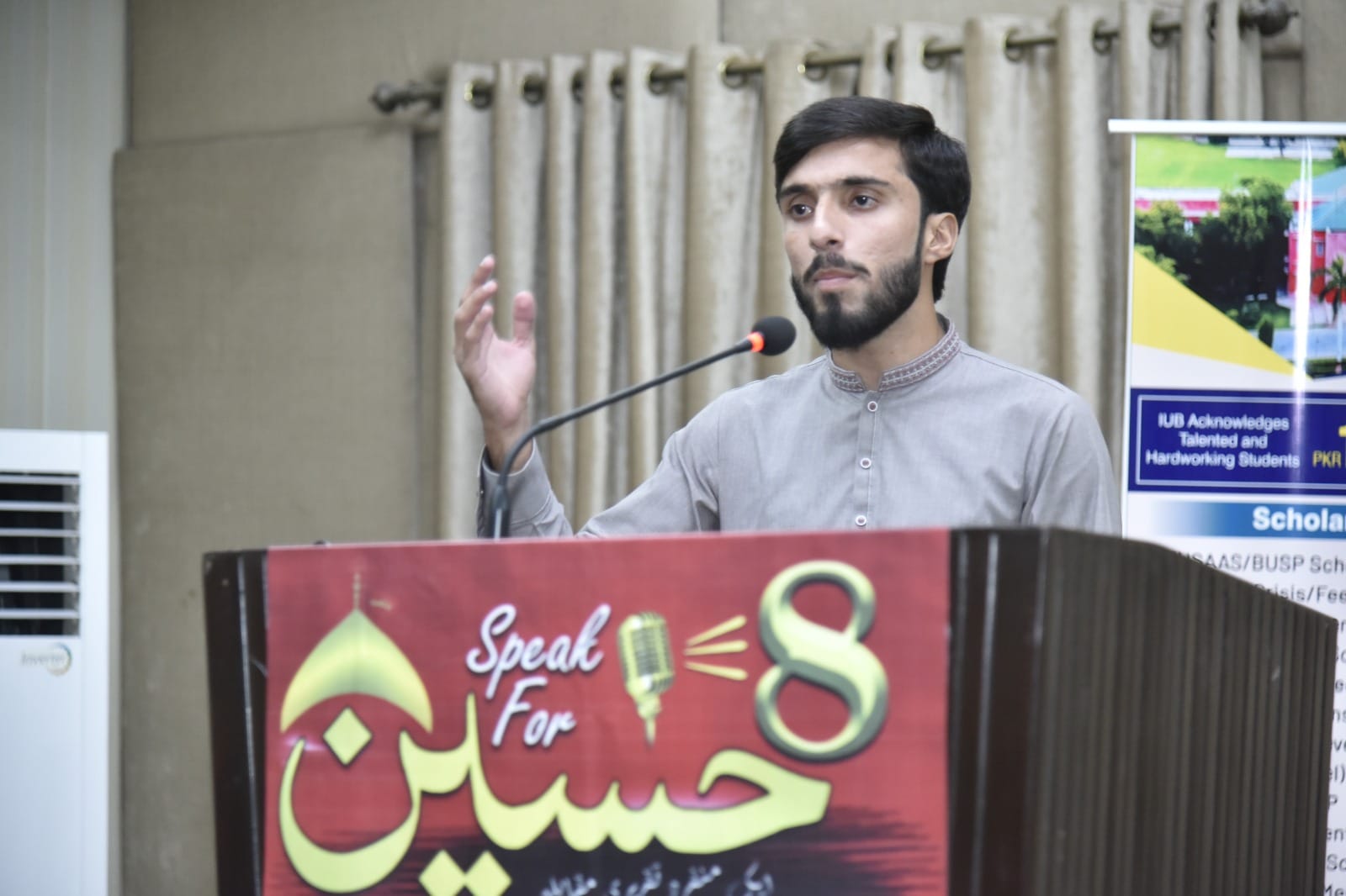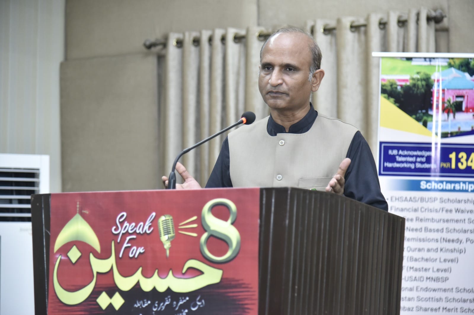 Discussion on the topic of "Hazart Imam Hussain's Philosophy and Thoughts" was held at Abassia Campus, IUB. The chief guest of this event was Dr. Shehzad Ahmed Khalid, Director Media and Public Relations, Islamia University Bahawalpur, and the guests of honor included Dr. Muhammad Adnan Bukhari, Additional Director Students Affairs