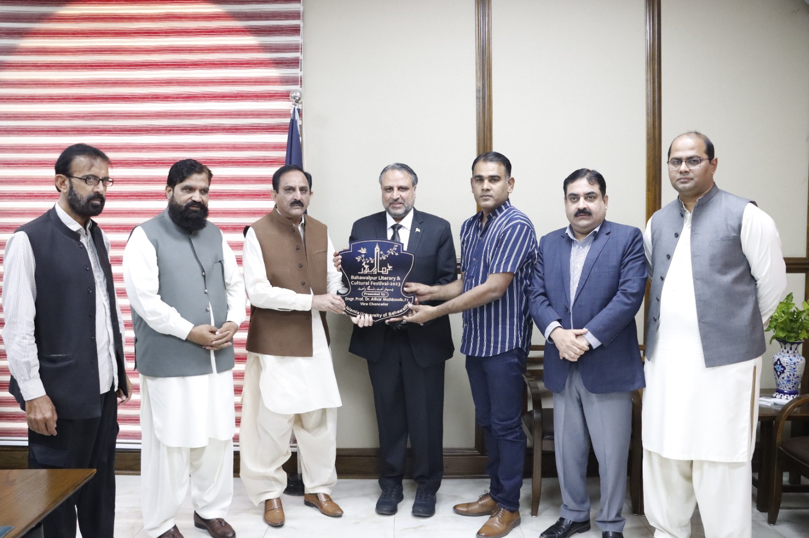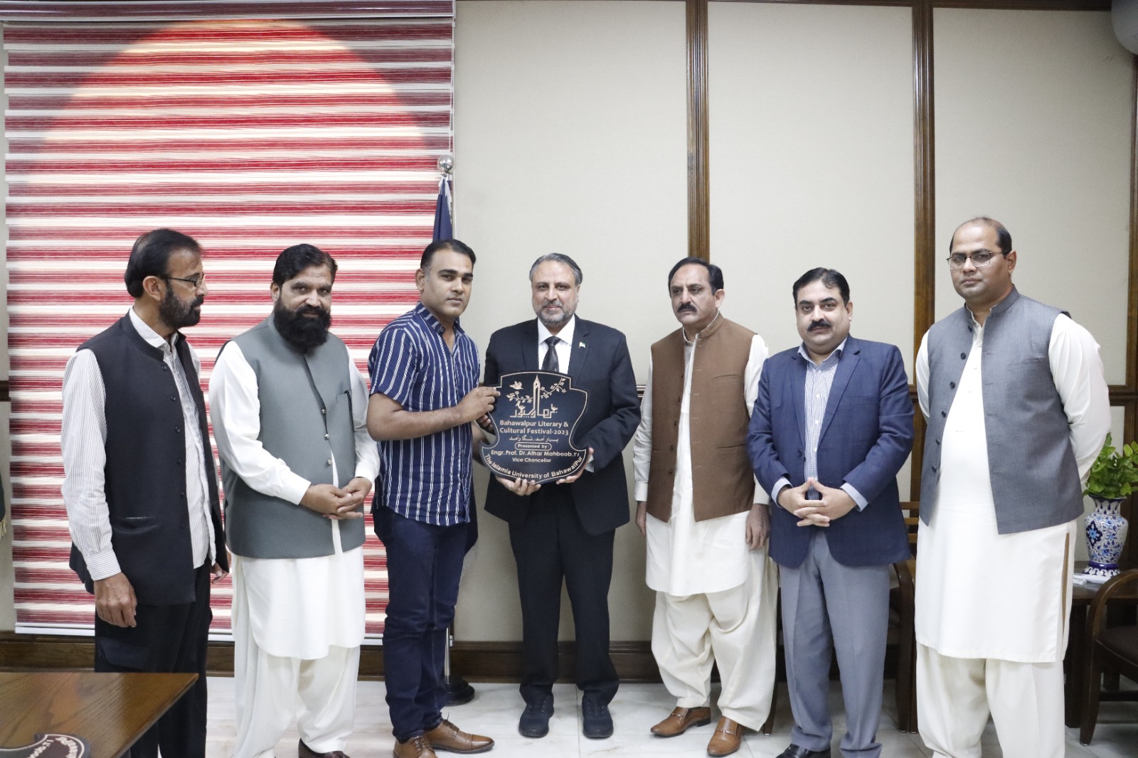 Honorable Vice Chancellor Islamia University Bahawalpur Engr. Professor Dr. Athar Mahboob presented the shields to the journalists for their remarkable contribution of media coverage and organizing of Bahawalpur Literary and Cultural Festival 2023.
