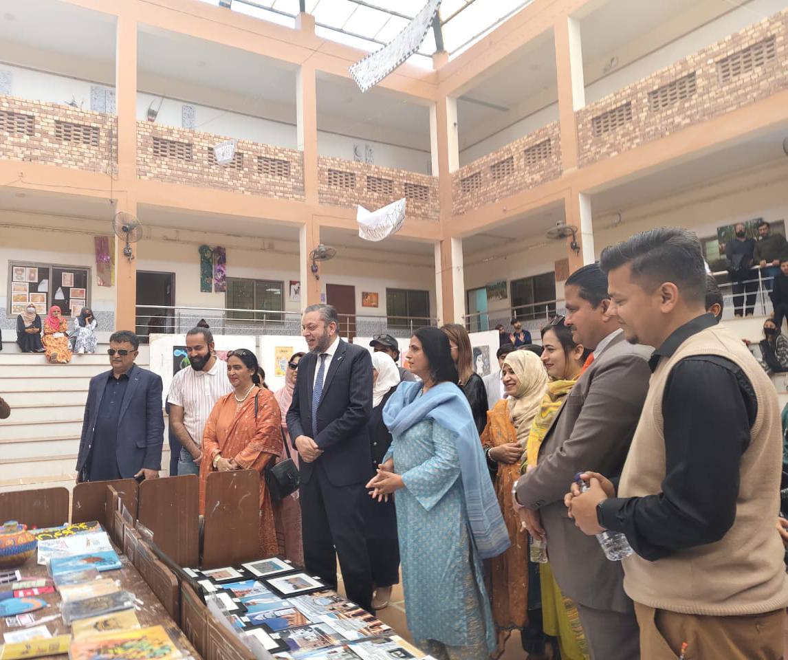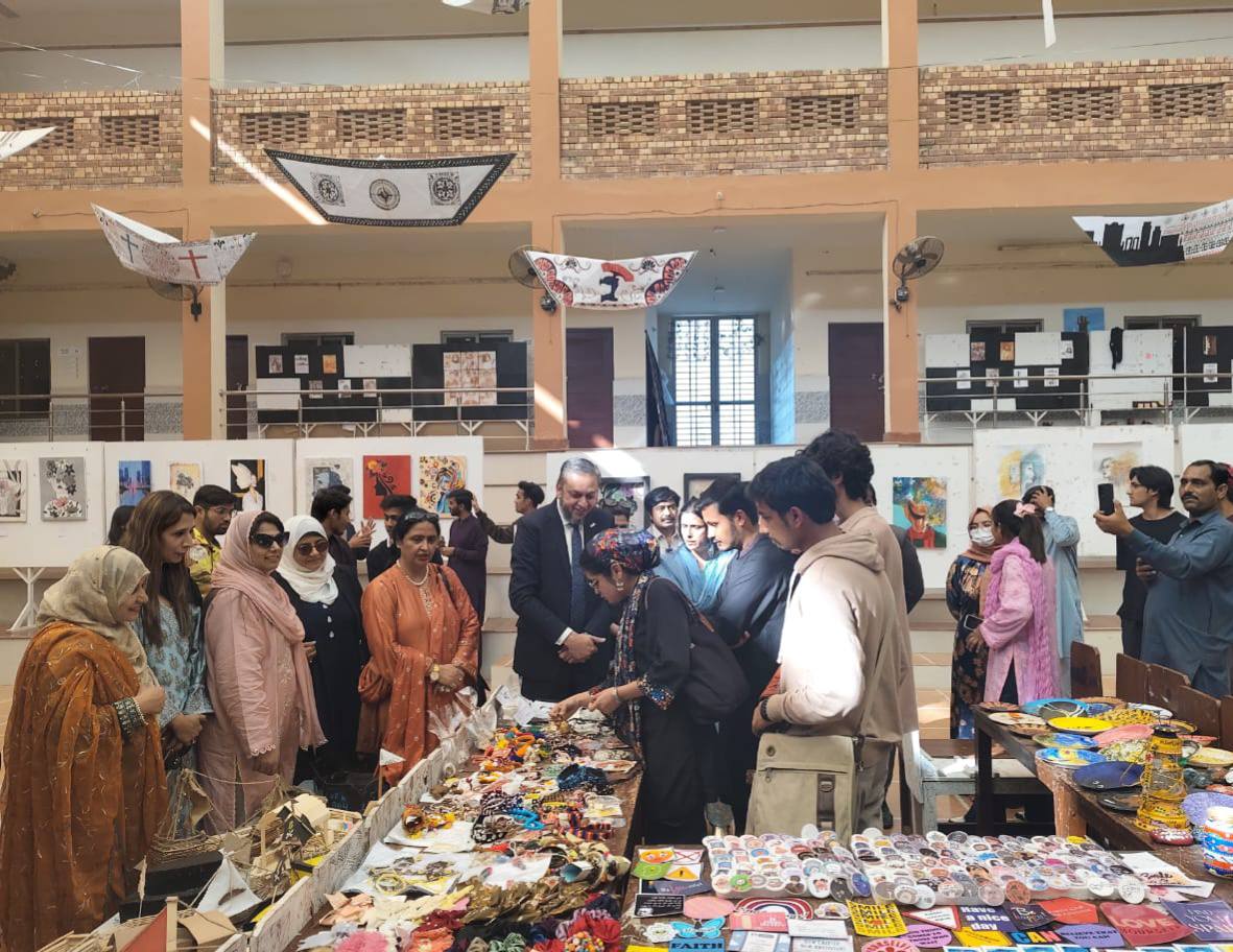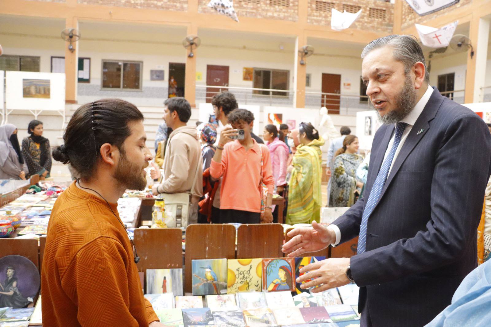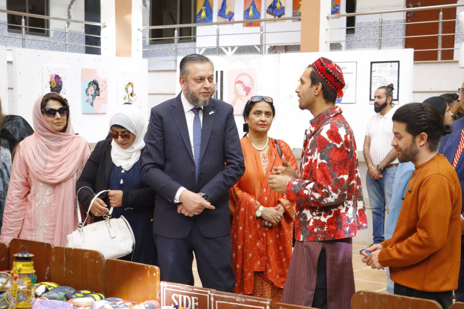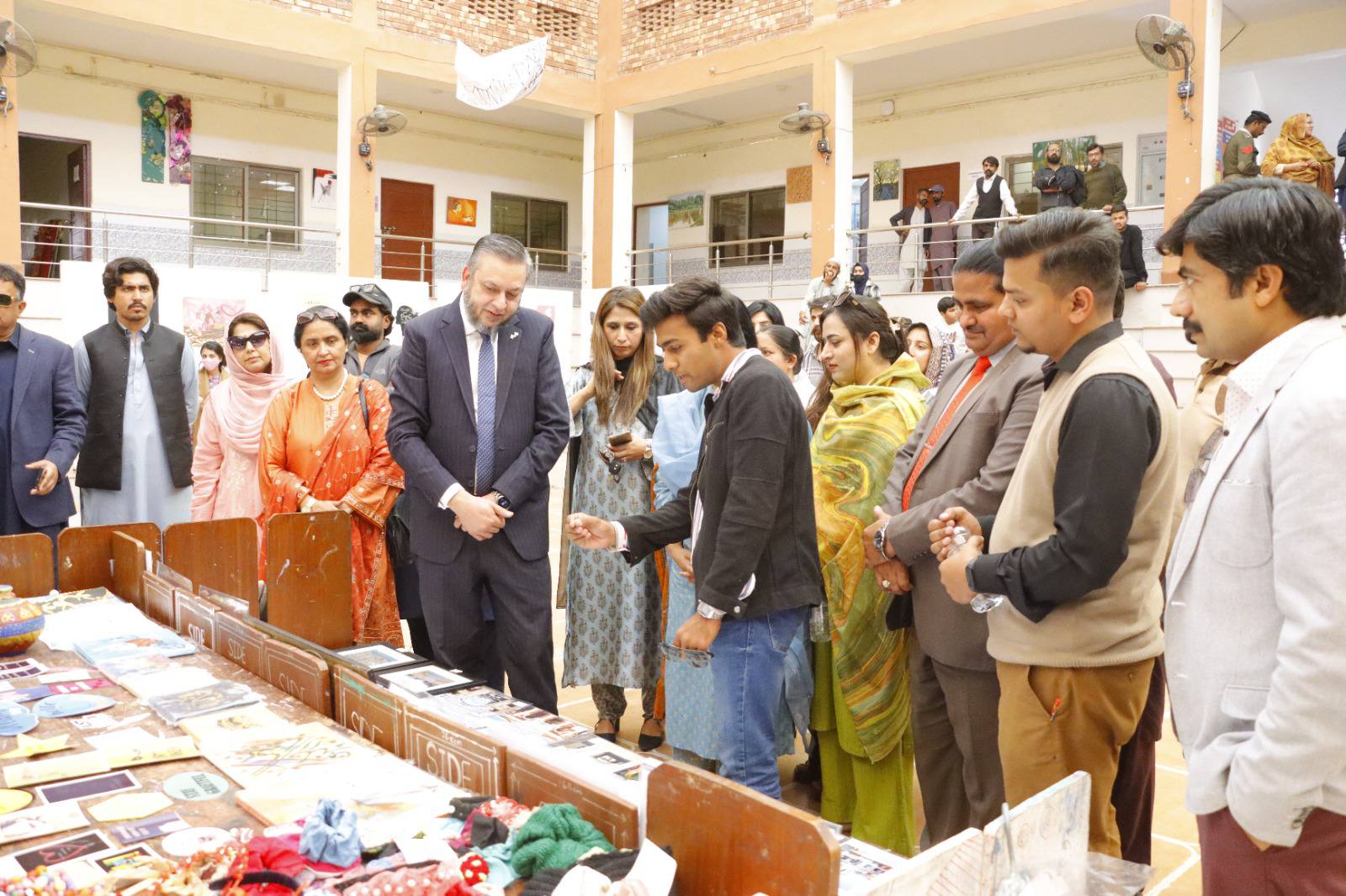28 Feb 2025: An exhibition of artworks created by faculty and students was held at the University College of Art and Design. Vice Chancellor Prof. Dr. Muhammad Kamran was the chief guest on this occasion. Faculty and students from nine different educational institutions of Bahawalpur participated in the exhibition of artworks created on the theme of International Women's Day 2025.