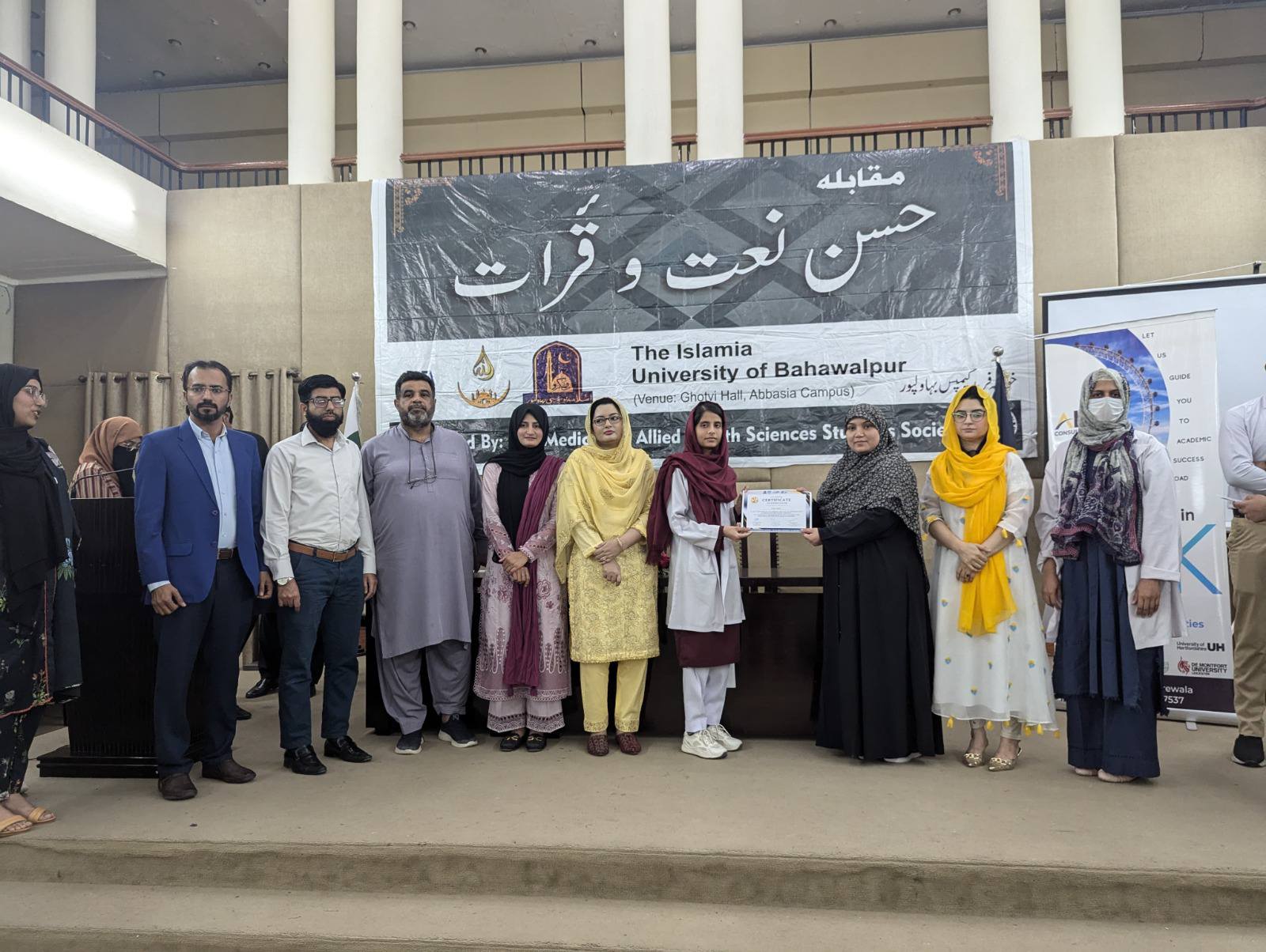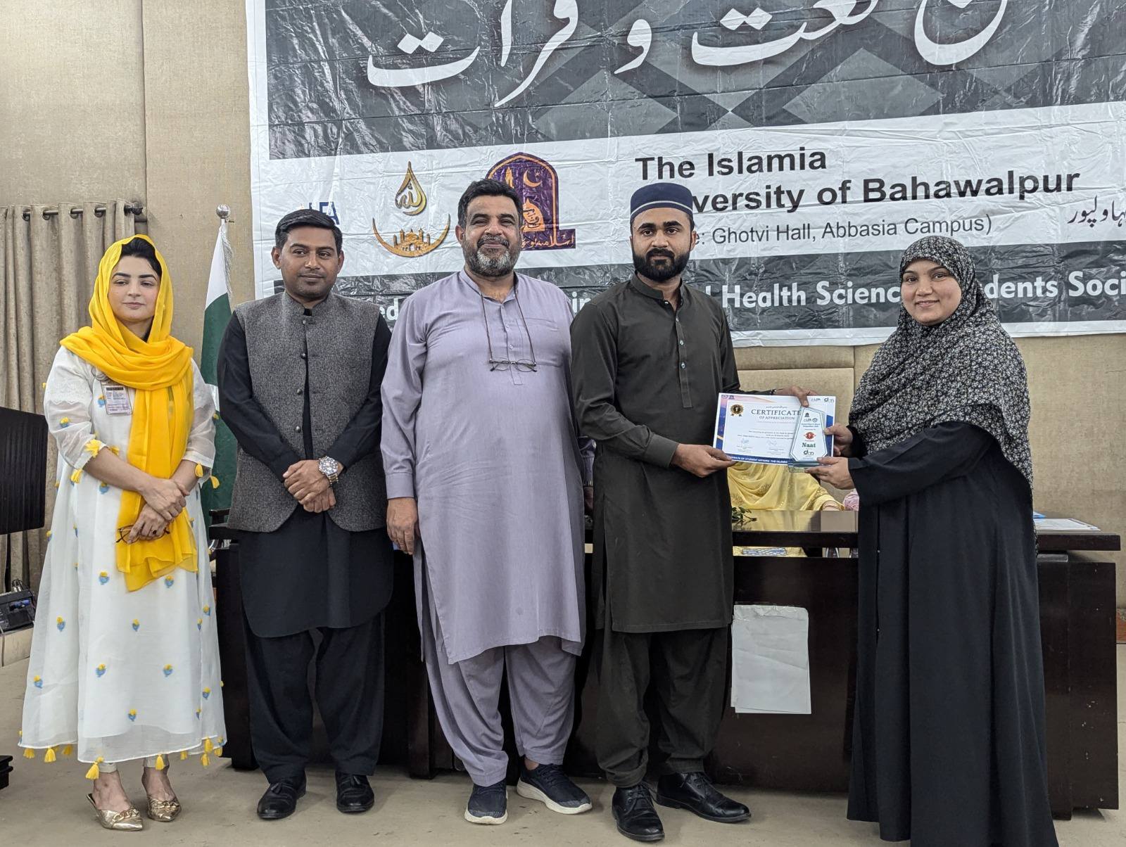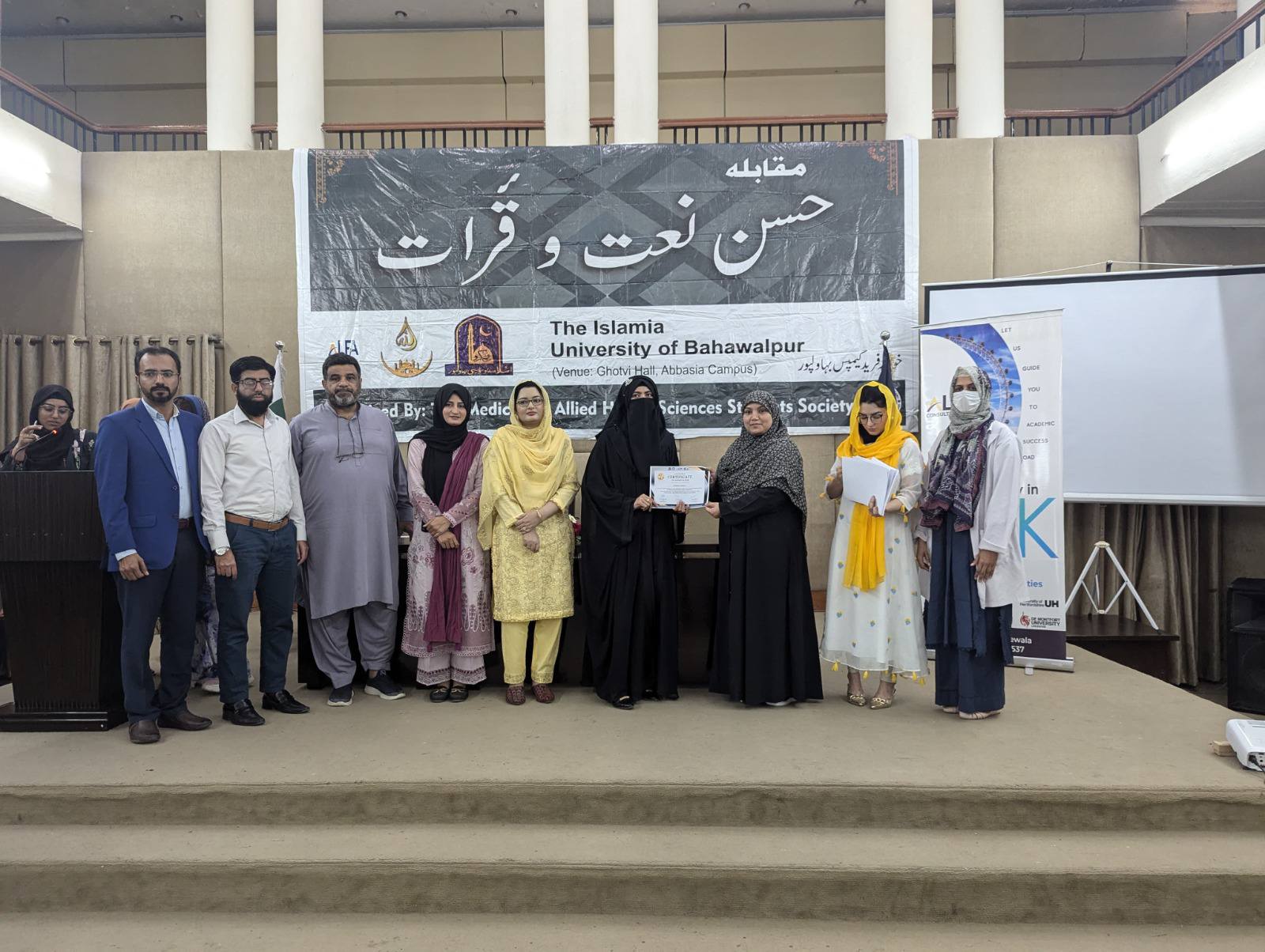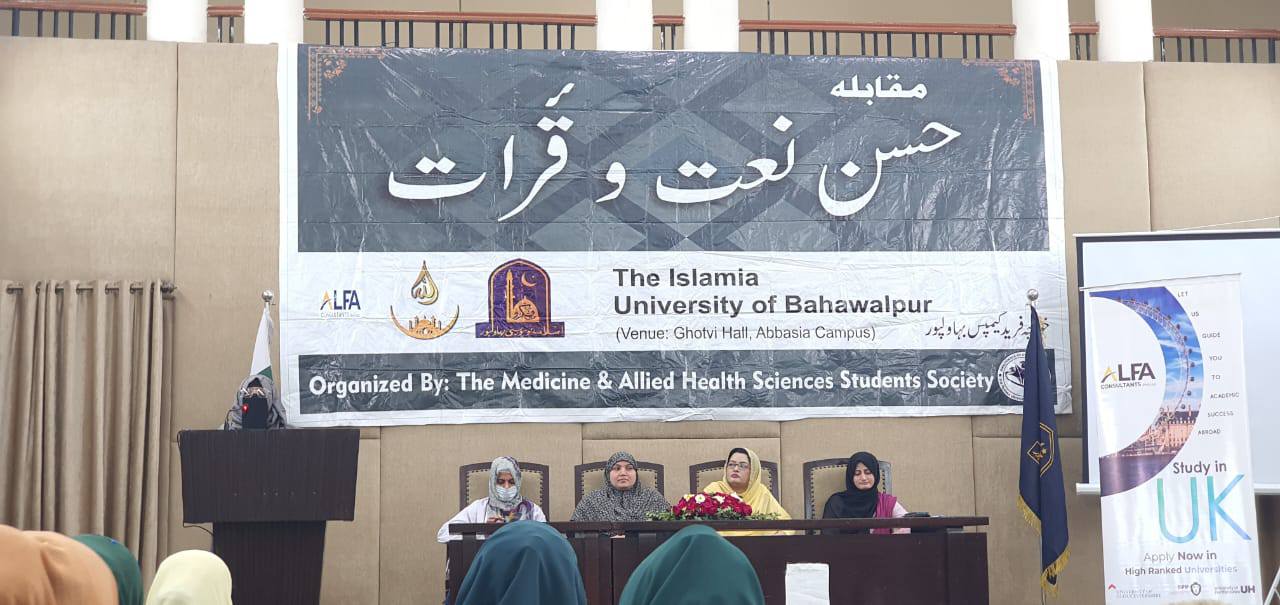 The Medicine and Allied Health Sciences Students Society (MAHSSS) proudly organized the Annual Inter-Departmental Qirat and Naat Competition 2025, titled "حسن نعت اورقرآت," on March 18, 2025 , at the prestigious Ghotvi Hall, Abbasia Campus, The Islamia University of Bahawalpur.