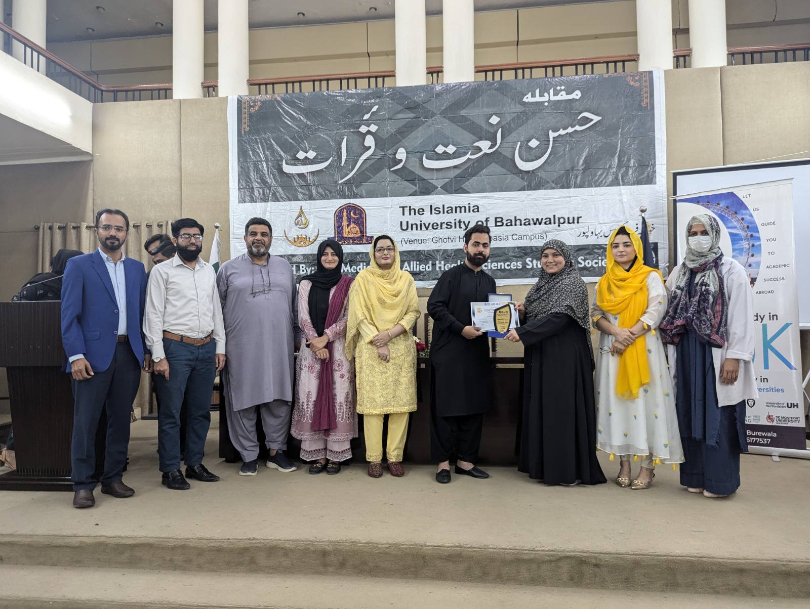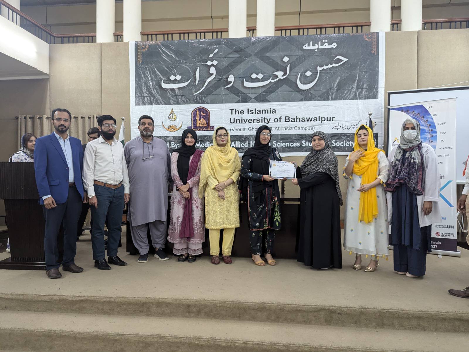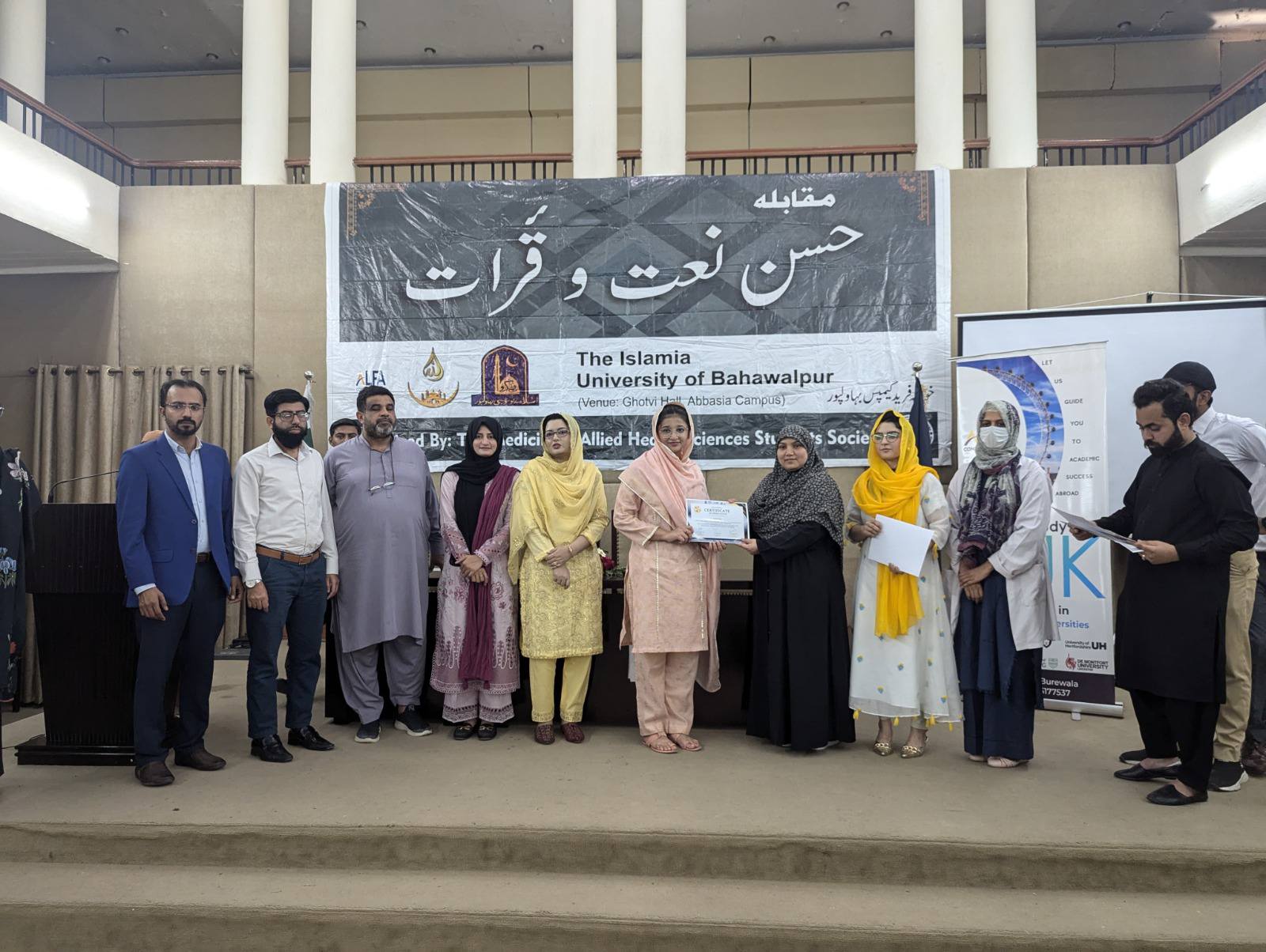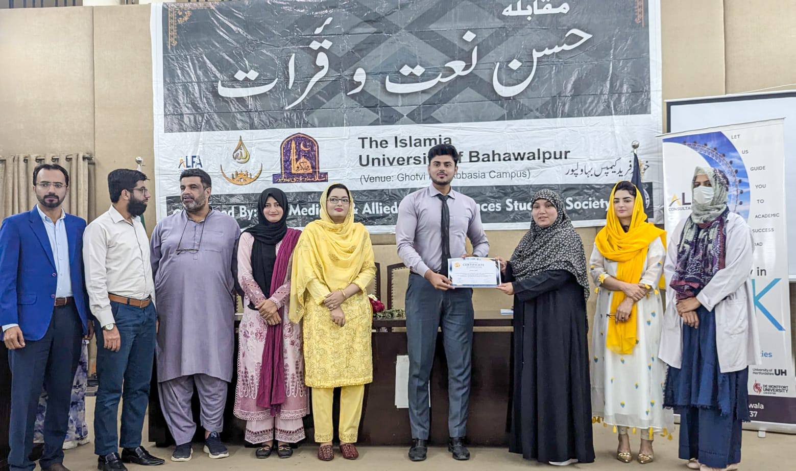 The Medicine and Allied Health Sciences Students Society (MAHSSS) proudly organized the Annual Inter-Departmental Qirat and Naat Competition 2025, titled "حسن نعت اورقرآت," on March 18, 2025 , at the prestigious Ghotvi Hall, Abbasia Campus, The Islamia University of Bahawalpur.