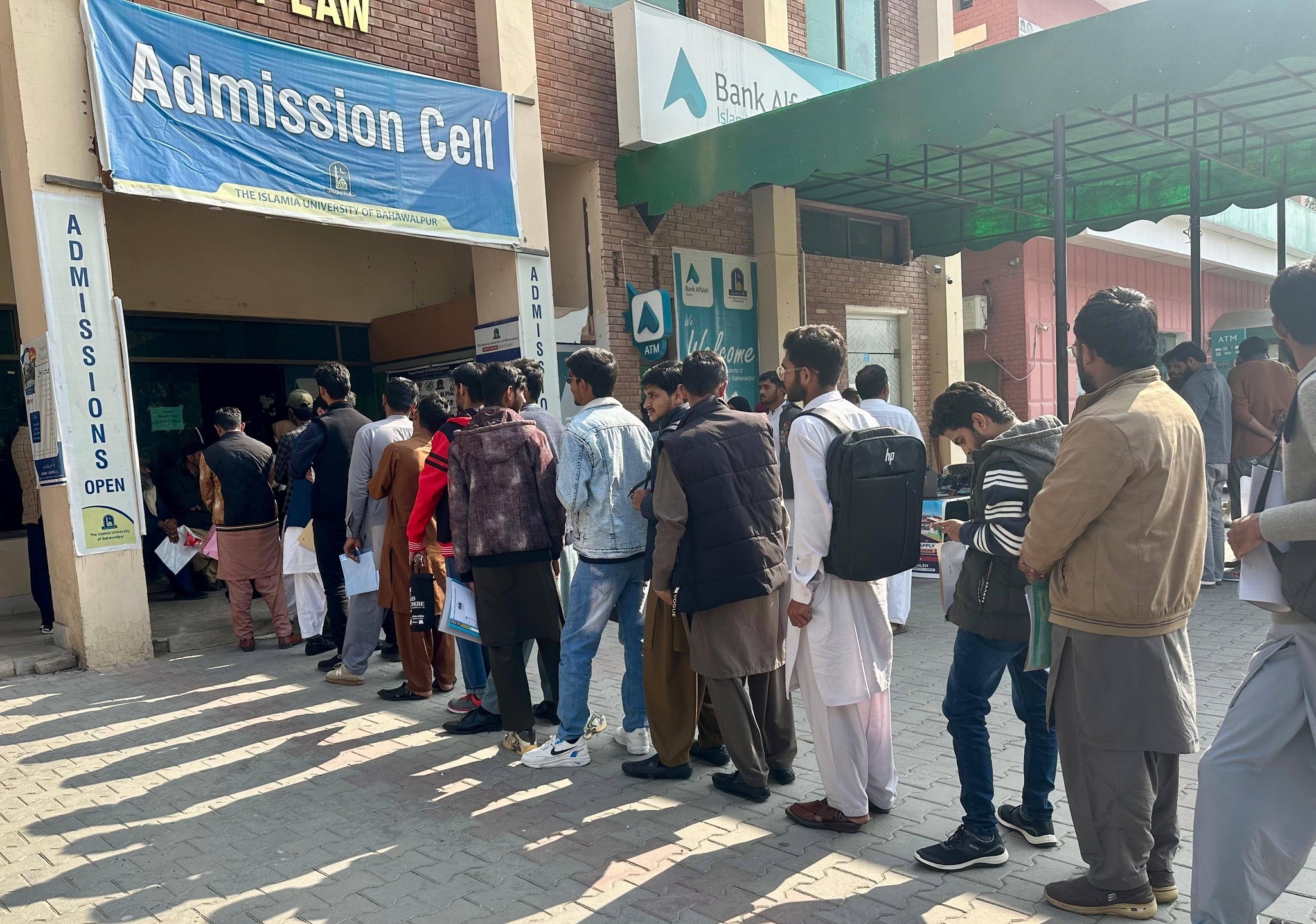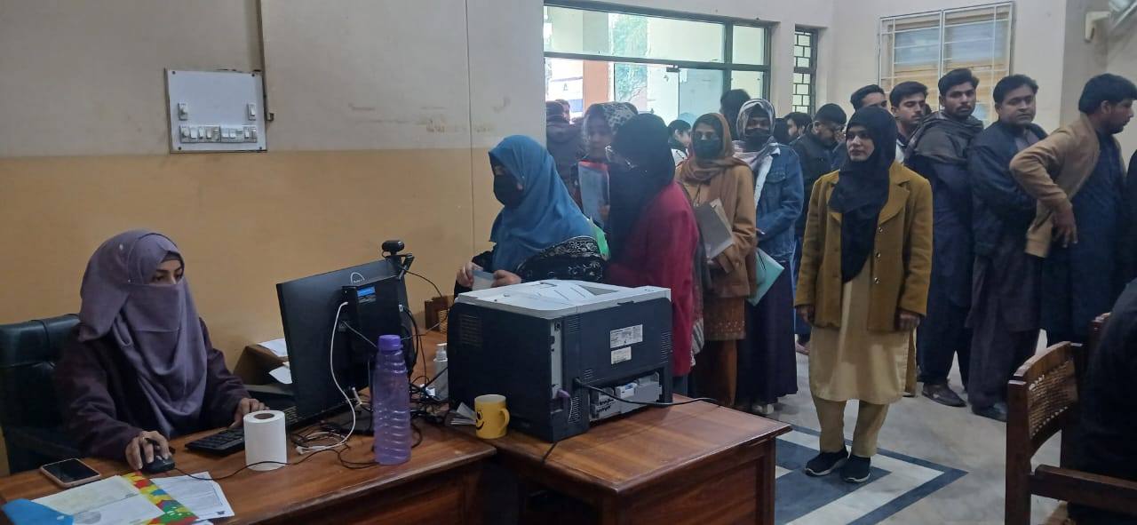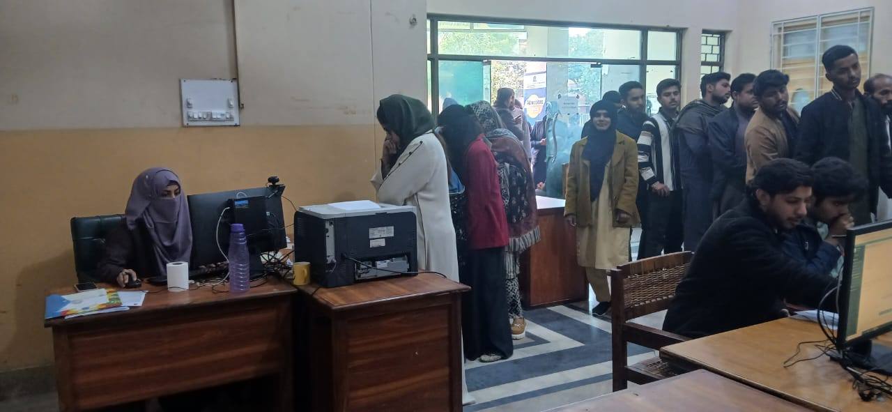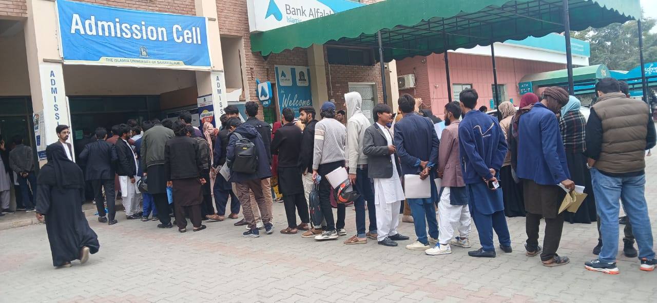 Glimpses of students arriving at the Admission Cell, Abbasia Campus, to apply for Spring 2026 admissions.