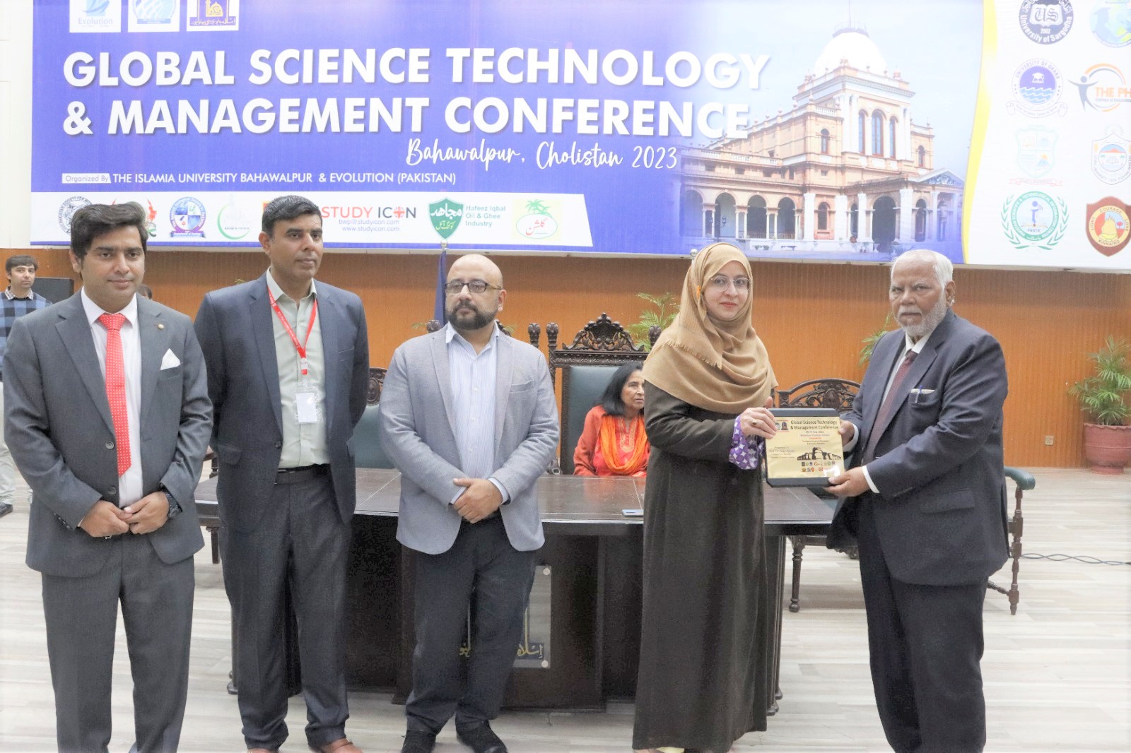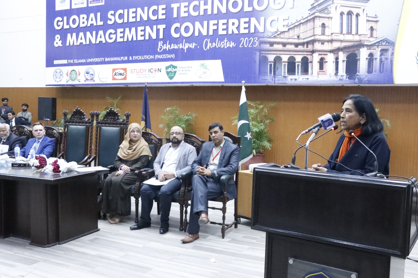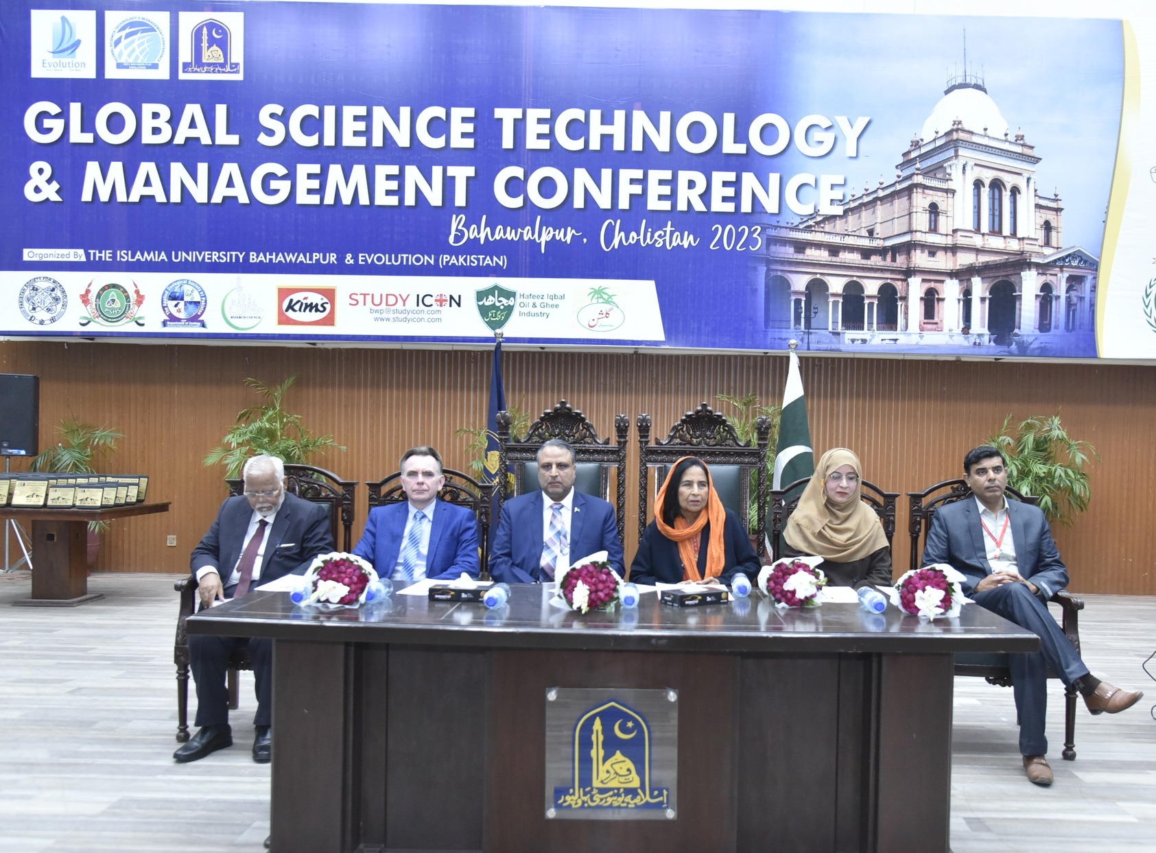 Global Science Technology & Management Science Conference held today at Khawaja Ghulam Farid Auditorium, Baghdad-ul-Jadeed Campus, The Islamia University of Bahawalpur Pakistan. This event is organized by IUB and Evolution Pakistan. The date was February 9, 2023.