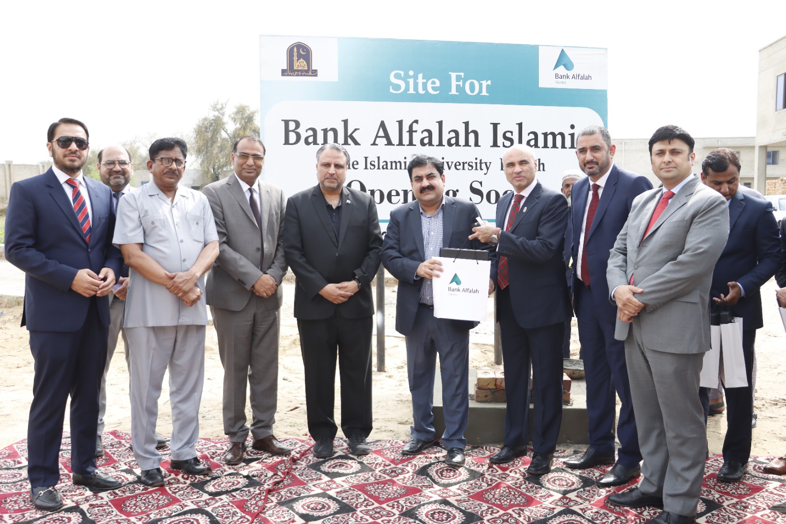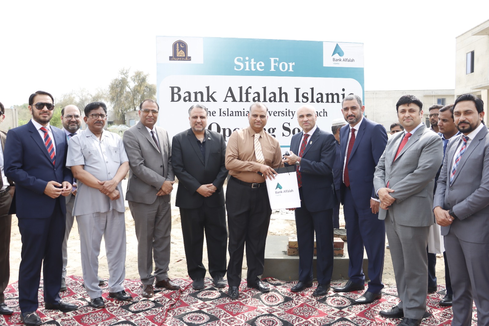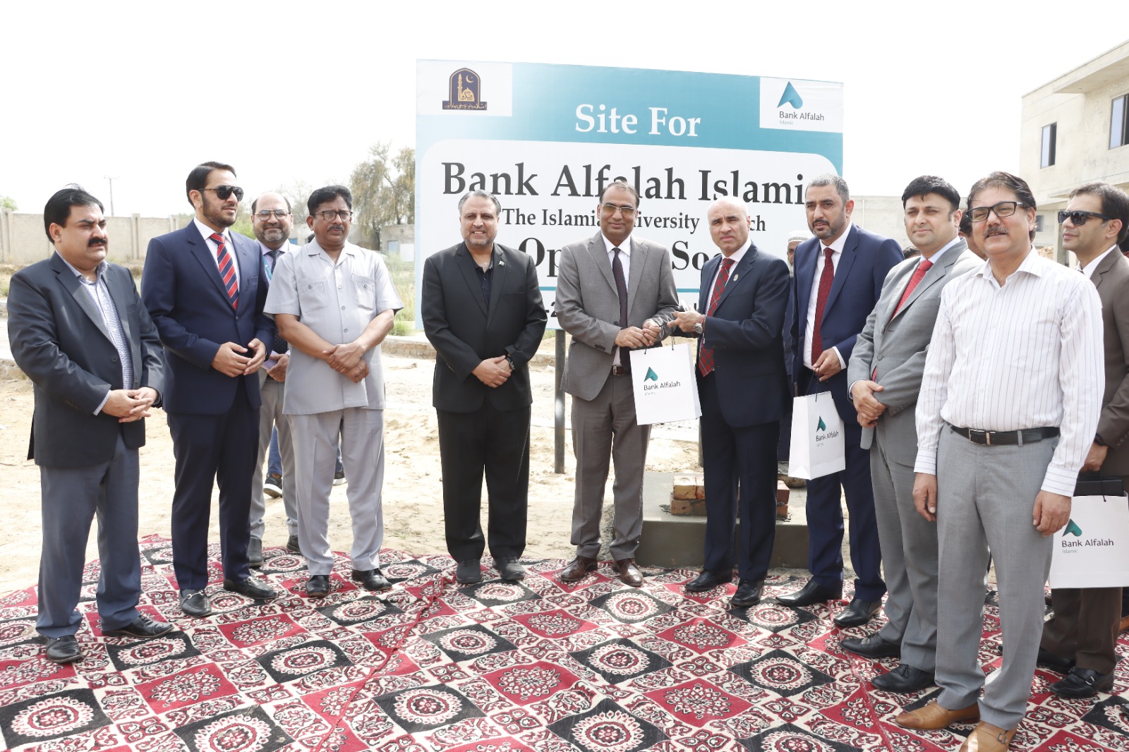 Ground Breaking ceremony of Bank Alfalah Islamic Branch at Baghdad Ul-Jadeed Campus, IUB. Mr. Talal Ali Raza, Head Branch Banking, Islamic Banking Group, Mr. Muhammad Ramadan, Regional Business Head and other officers of Bank Alfalah were present on this occasion. WVC Engineer Prof. Athar Mahboob and members of Islamia University welcomed them.