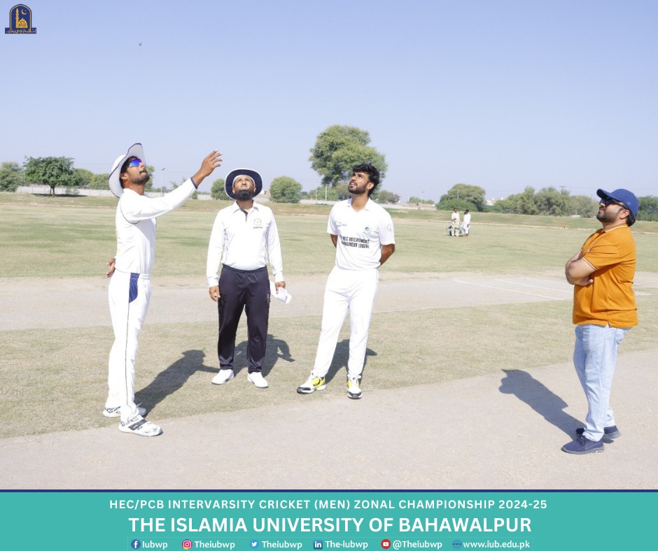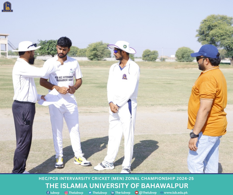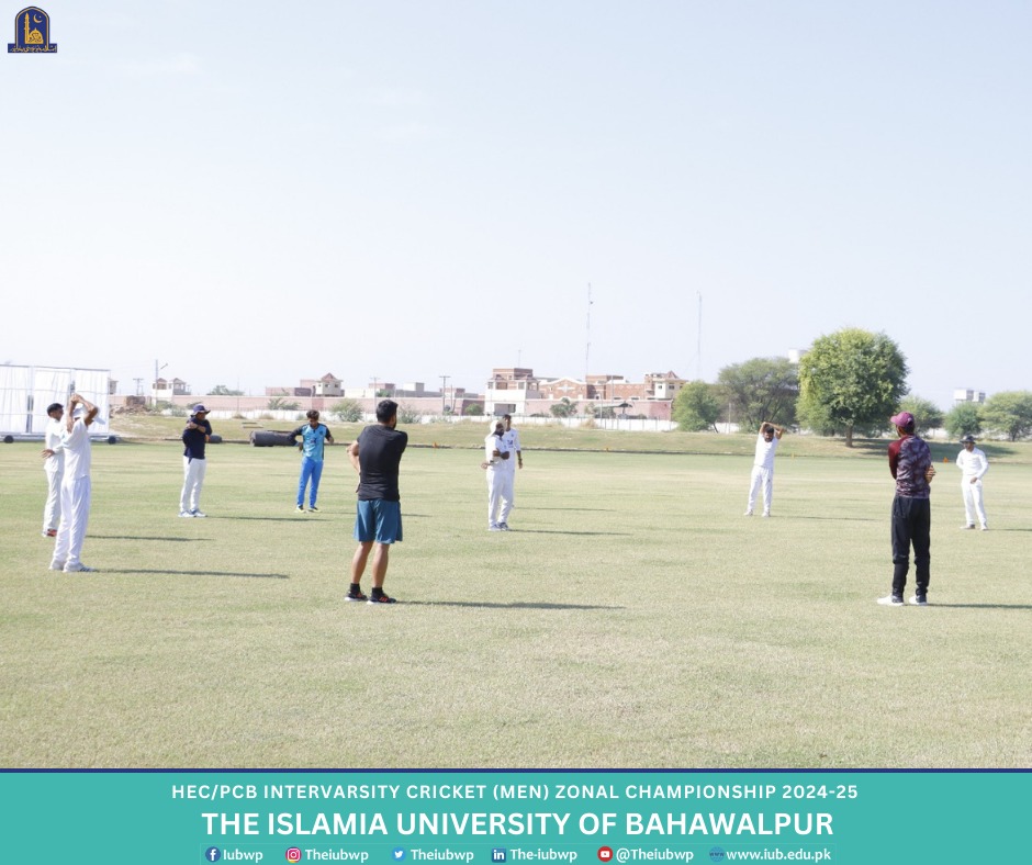 Higher Education Commission, Pakistan (HEC)/Pakistan Cricket Board (PCB) Intervarsity (Men) Championship 2024-25 started at Islamia University of Bahawalpur. The Intervarsity Championship is being organized by IUB and HEC. The opening match was played between IUB and Khawaja Farid University of Engineering and Information Technology, RYK and IUB won their first match by 333 runs.