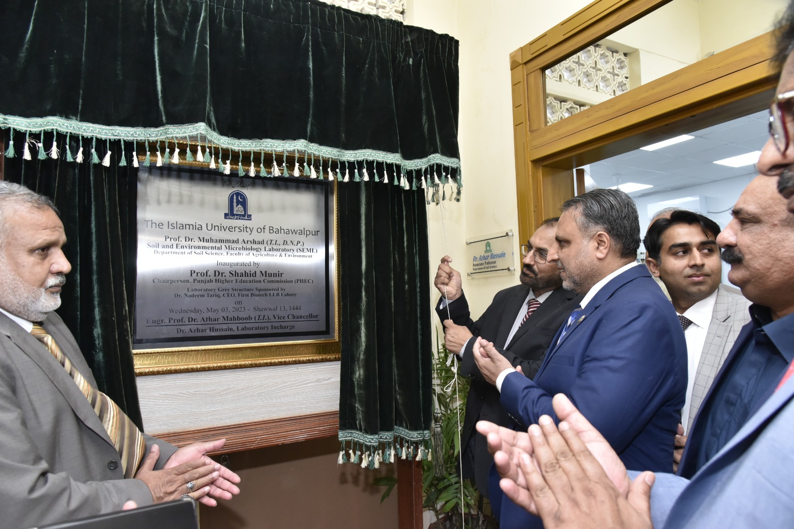 Honorable Chairman Punjab Higher Education Commission-PHEC Prof. Dr. Shahid Munir visited the Islamia University of Bahawalpur. He visited different sectors of IUB. He also inaugurated a newly established laboratory title as Prof. Dr. Muhammad Arshad (T.I., D.N.P.) Soil and Environmental Microbiology Laboratory (SEML) which is located at Department of Soil Science.