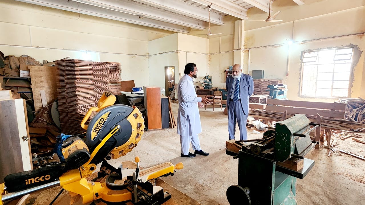 Honorable Vice-Chancellor Prof. Dr. Naveed Akhtar visited IUB Furniture Manufacturing Unit, Director Mr. Bilal Lodhi apprised about the potential of in-house furniture to facilitate the departments of the University. The Vice-Chancellor appreciated the hard work of workers and staff for providing low-cost and quality furniture using materials available within the university.